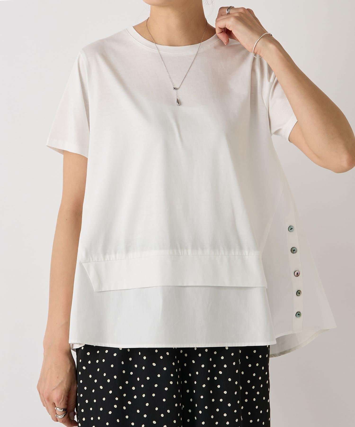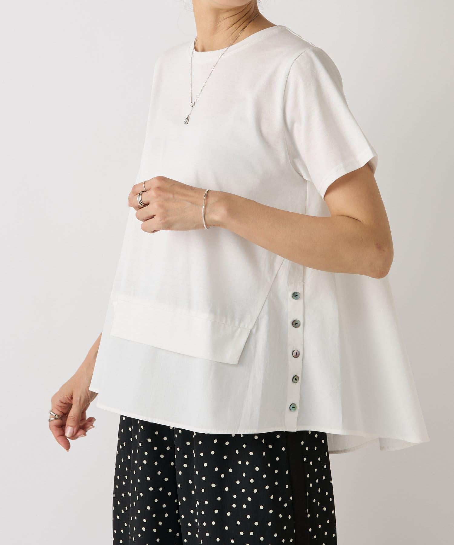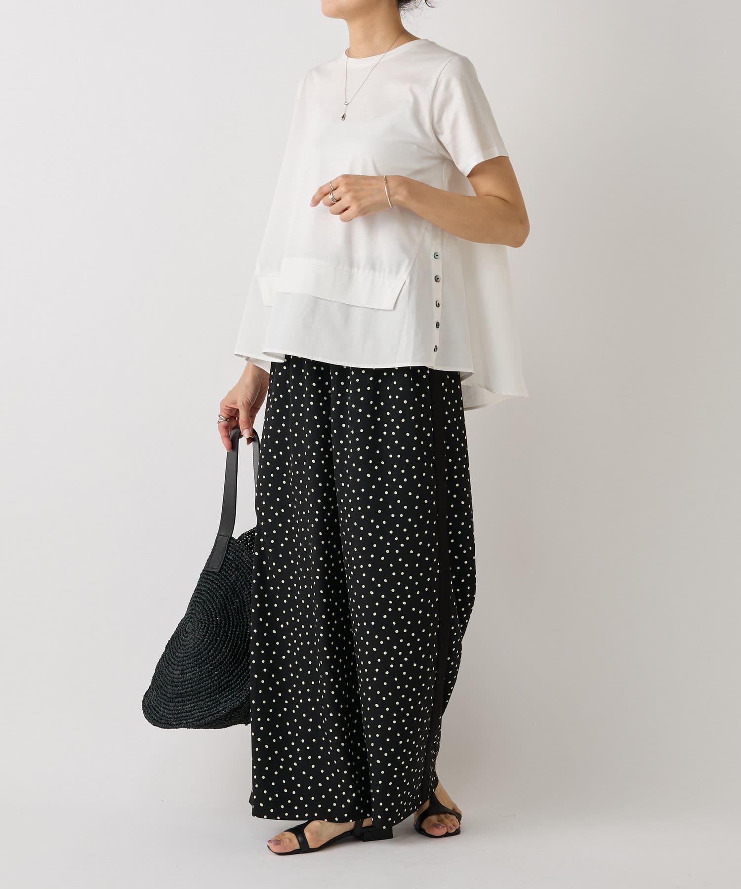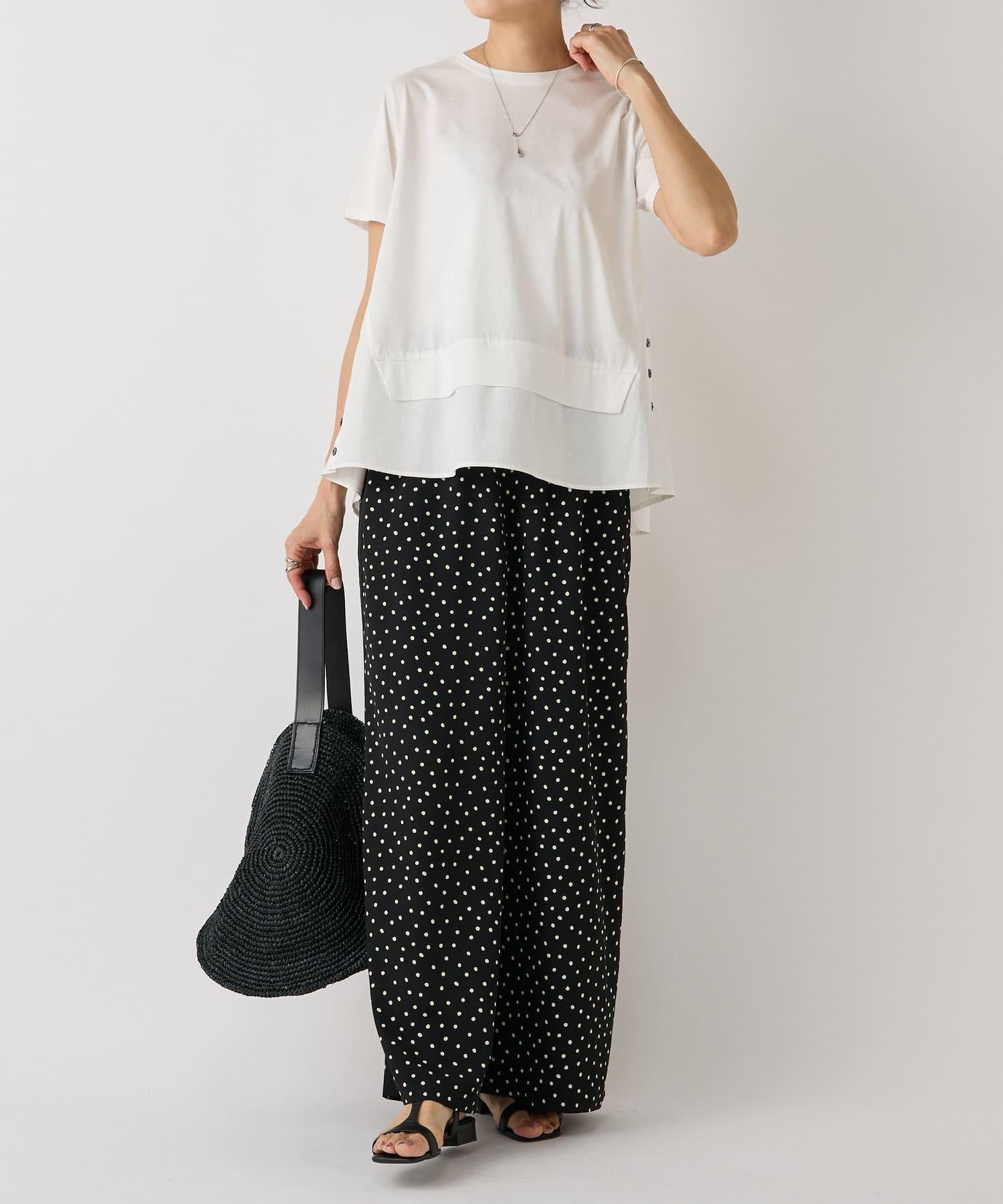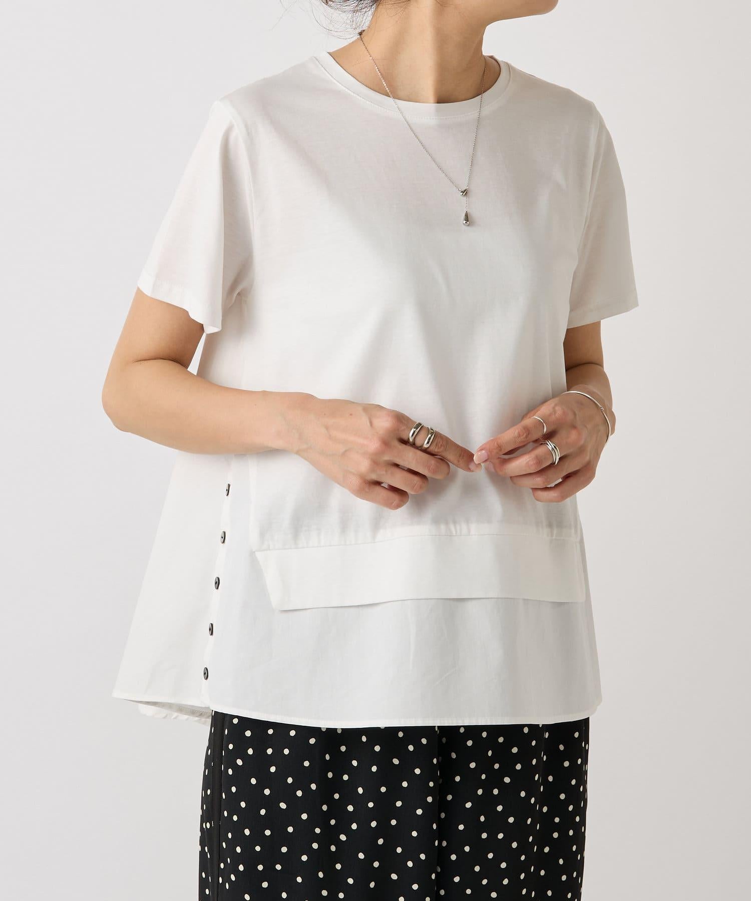 從流行的側面紐扣剪裁縫製而成的層次風格設計。