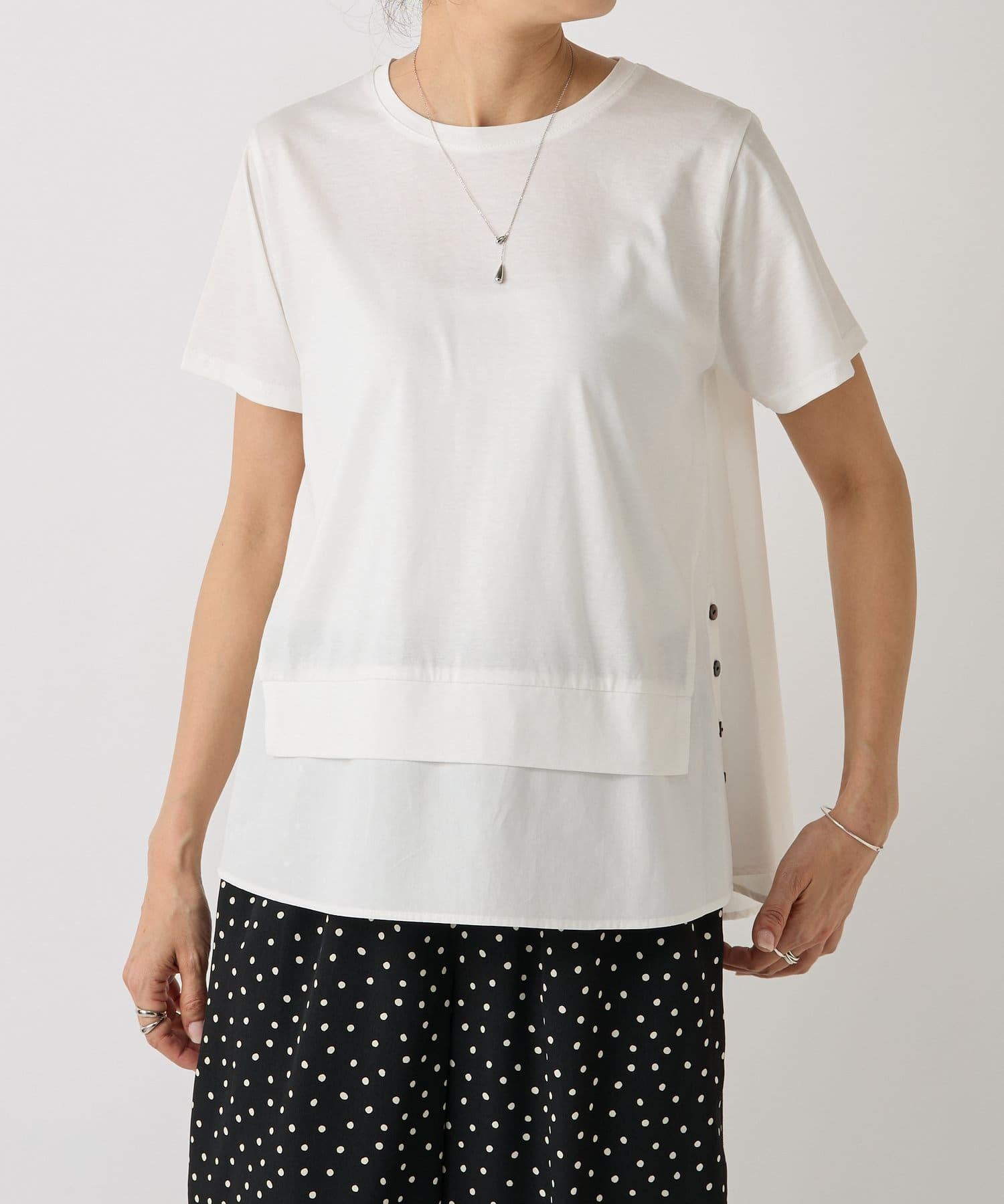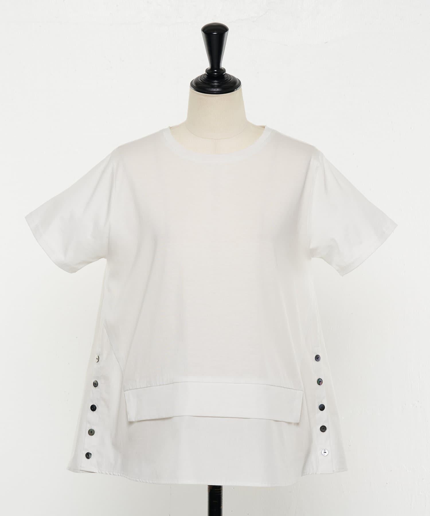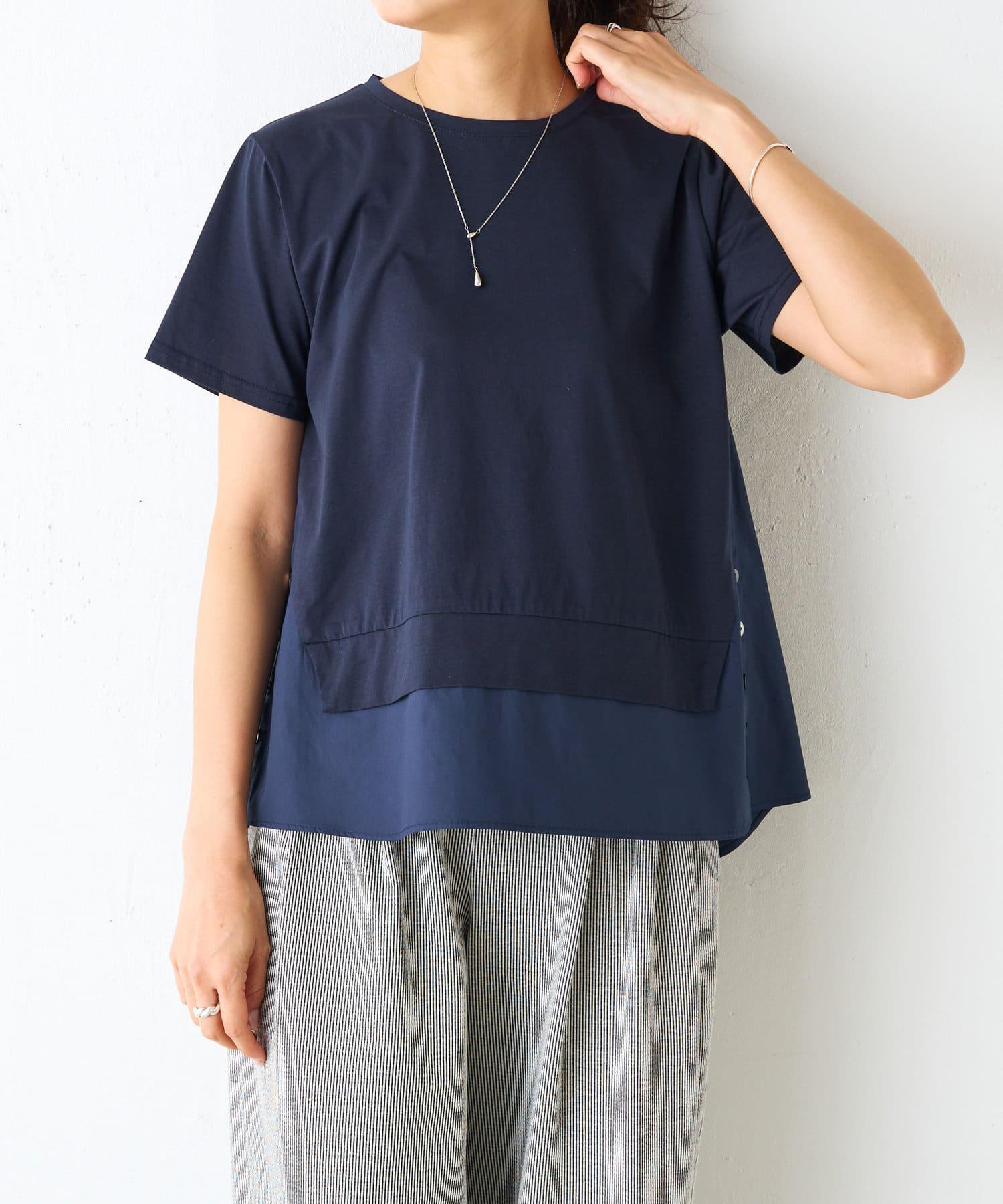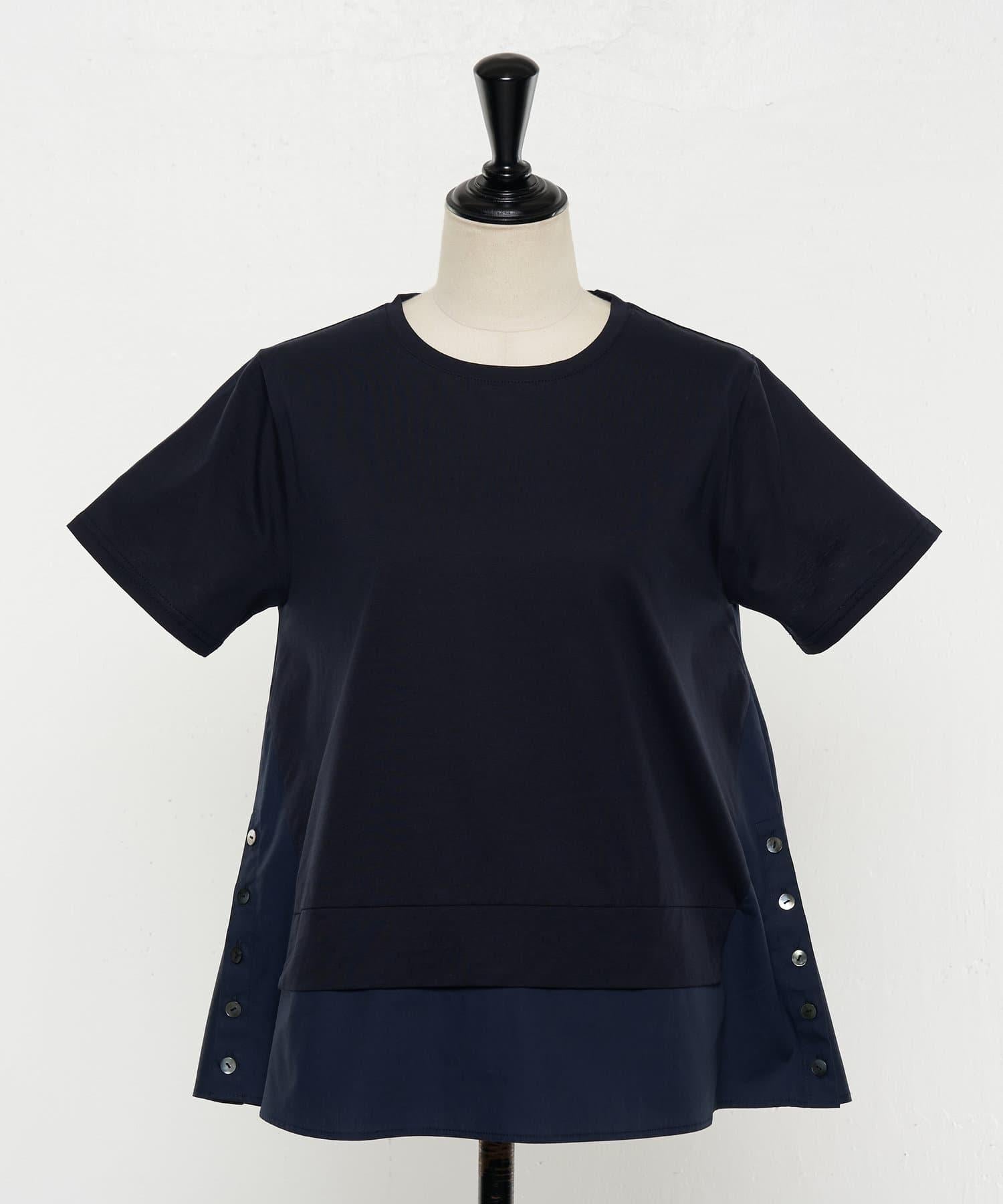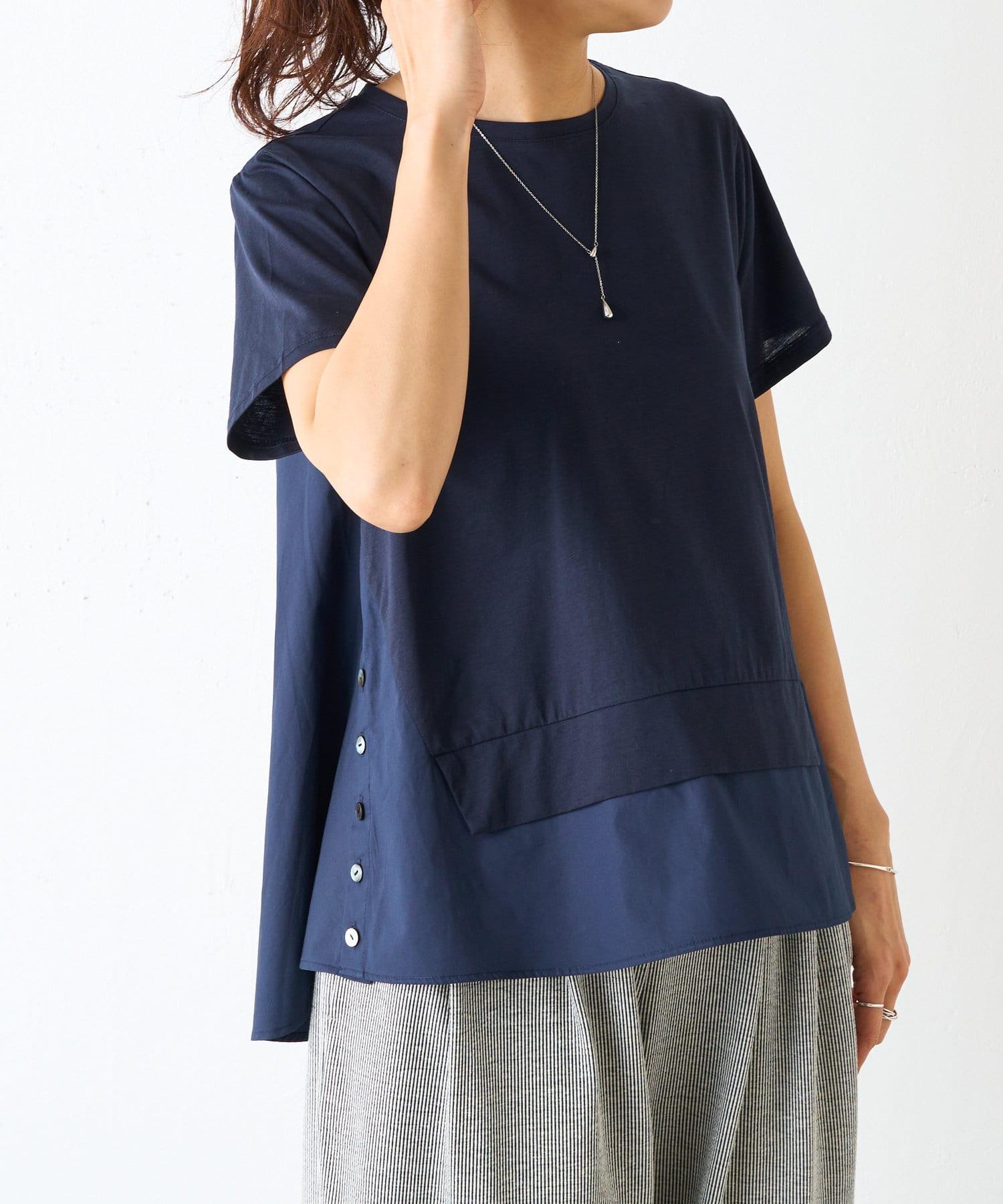 從流行的側面紐扣剪裁縫製而成的層次風格設計。