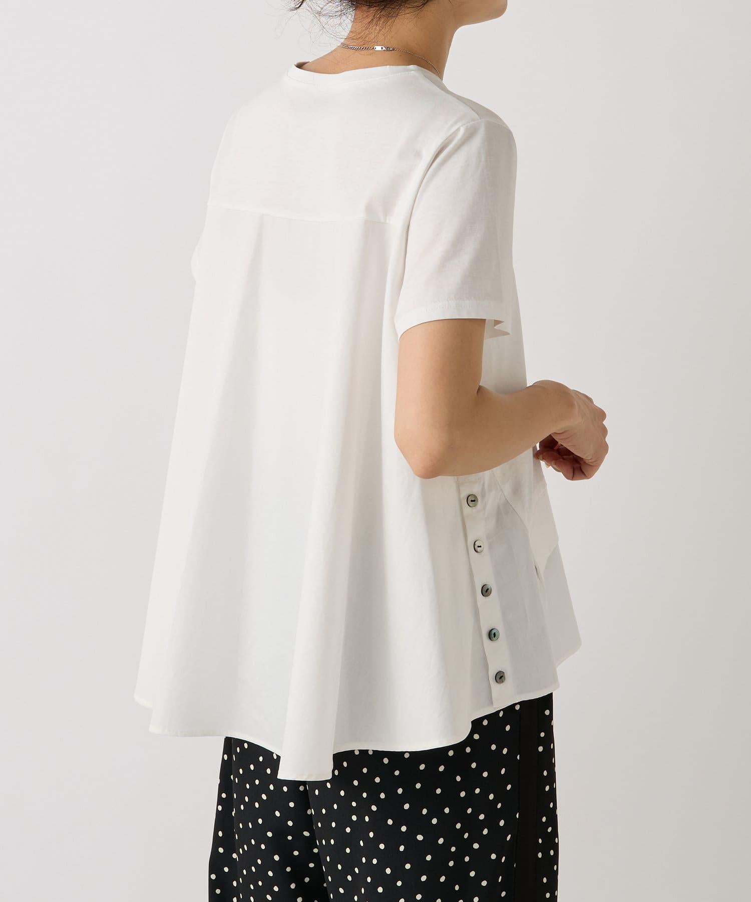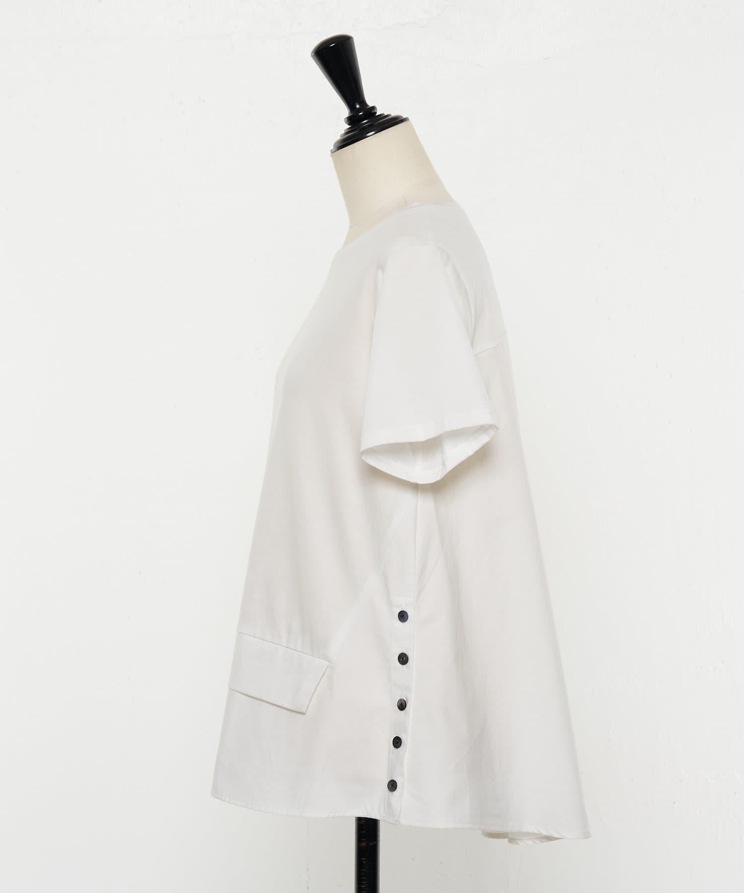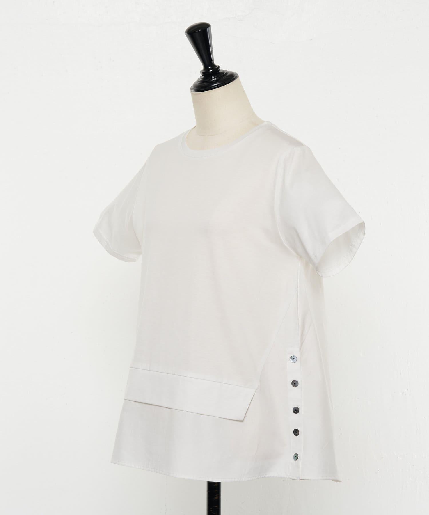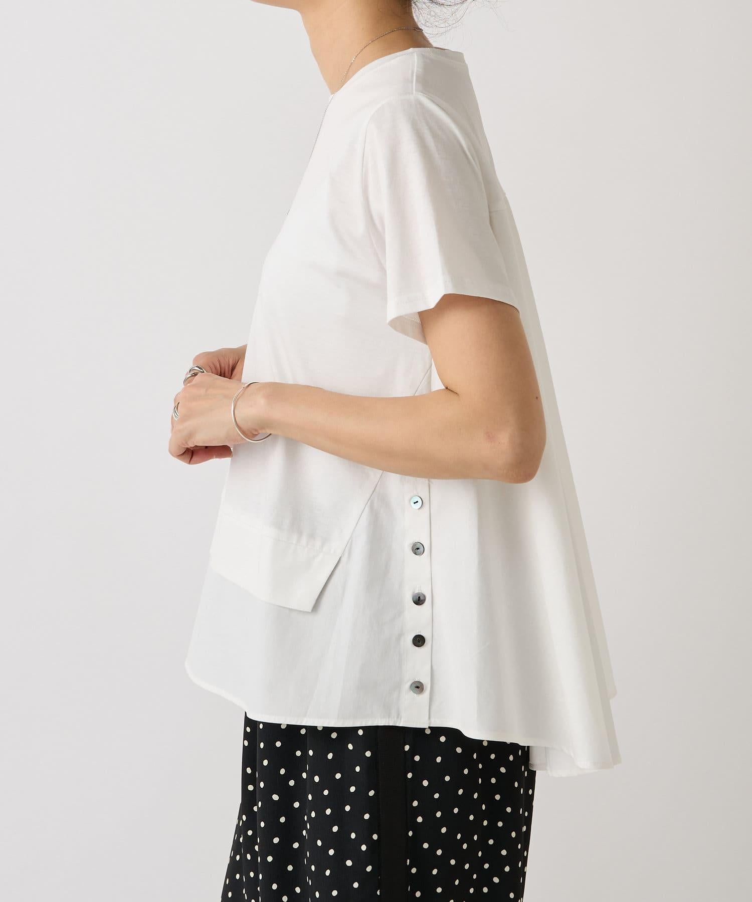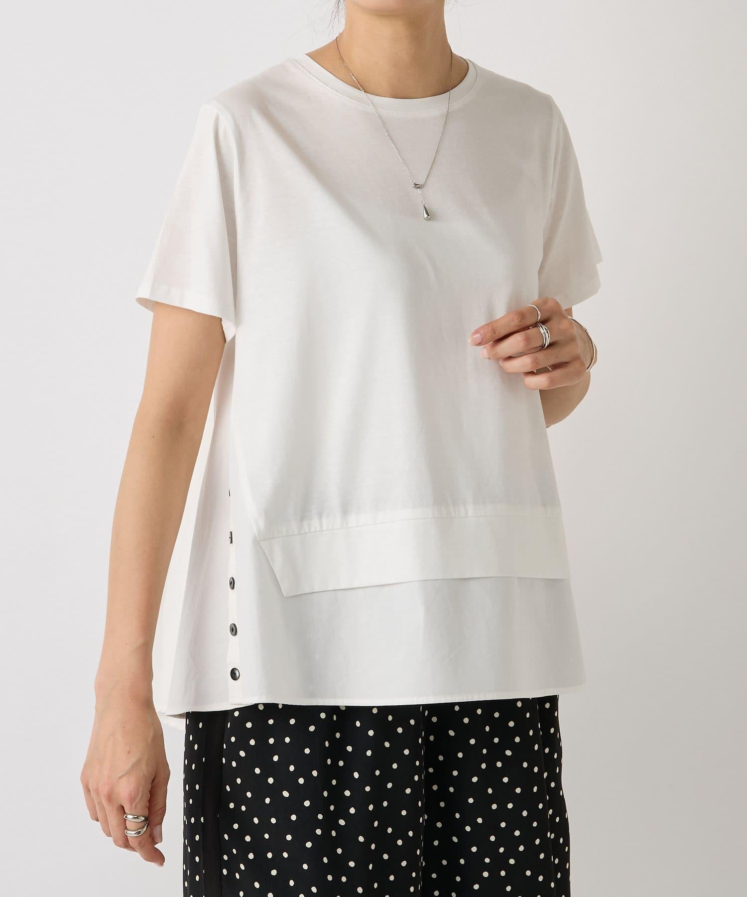 從流行的側面紐扣剪裁縫製而成的層次風格設計。