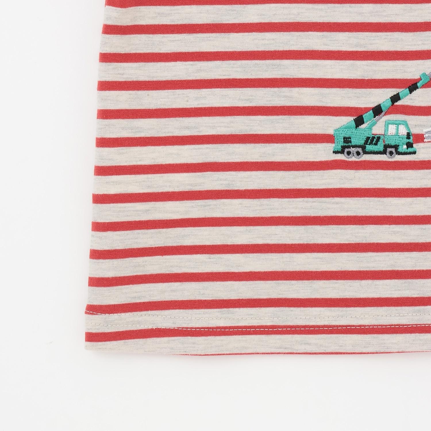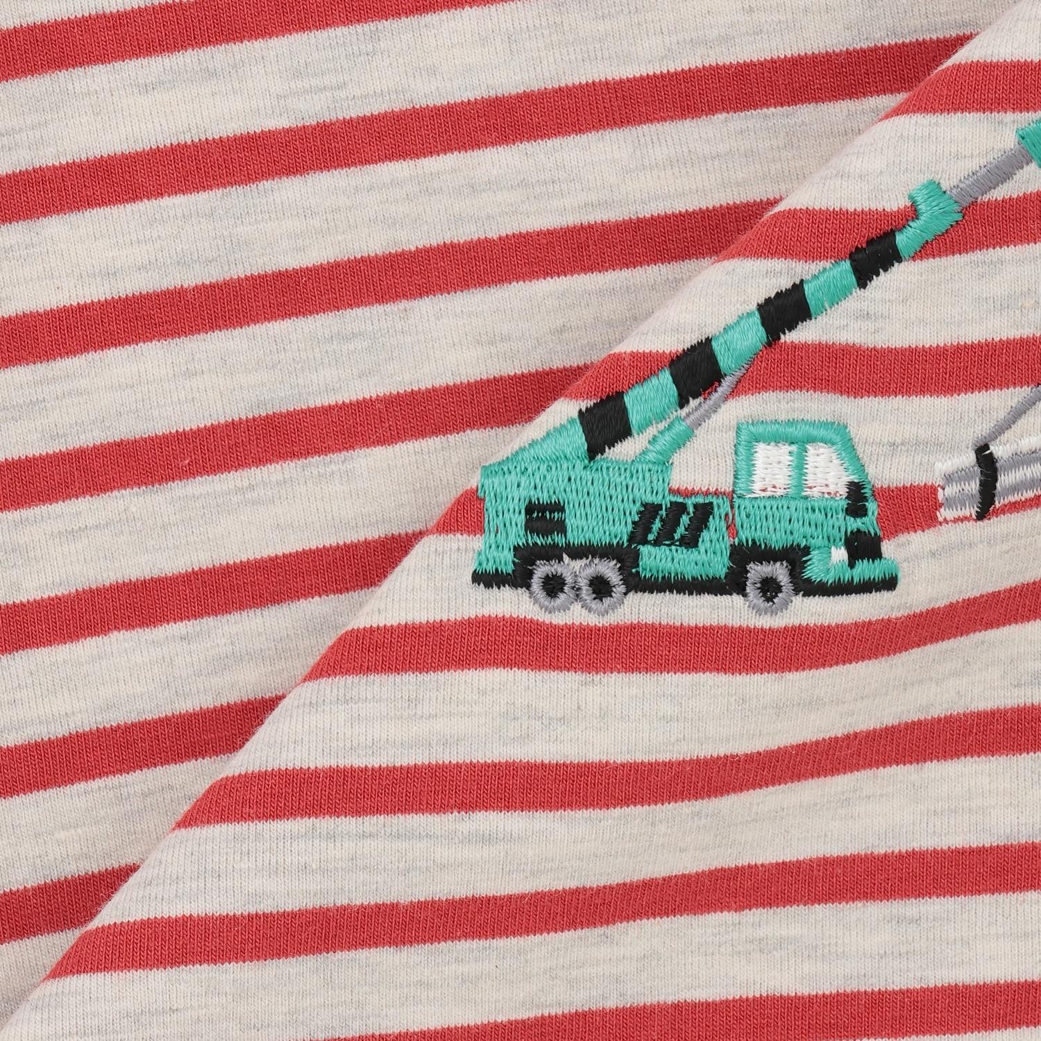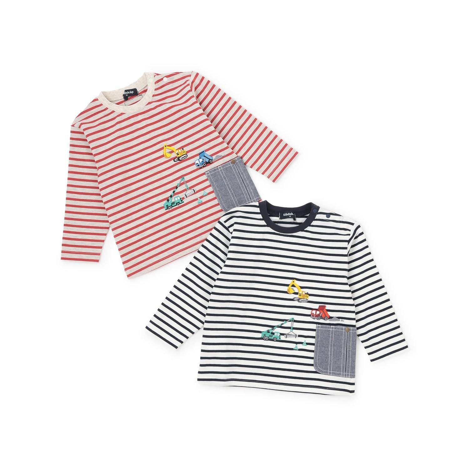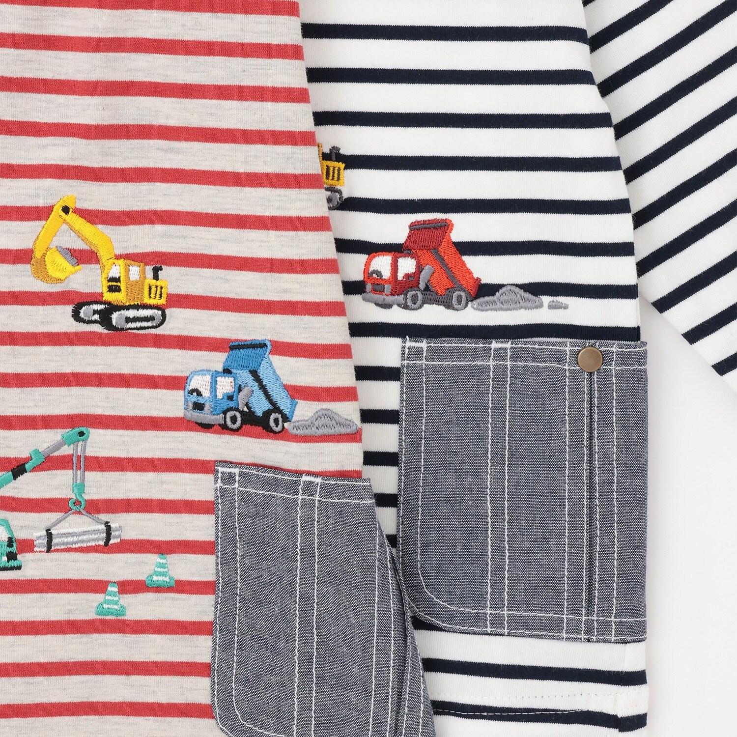 工程車口袋圖案 條紋 長袖T恤