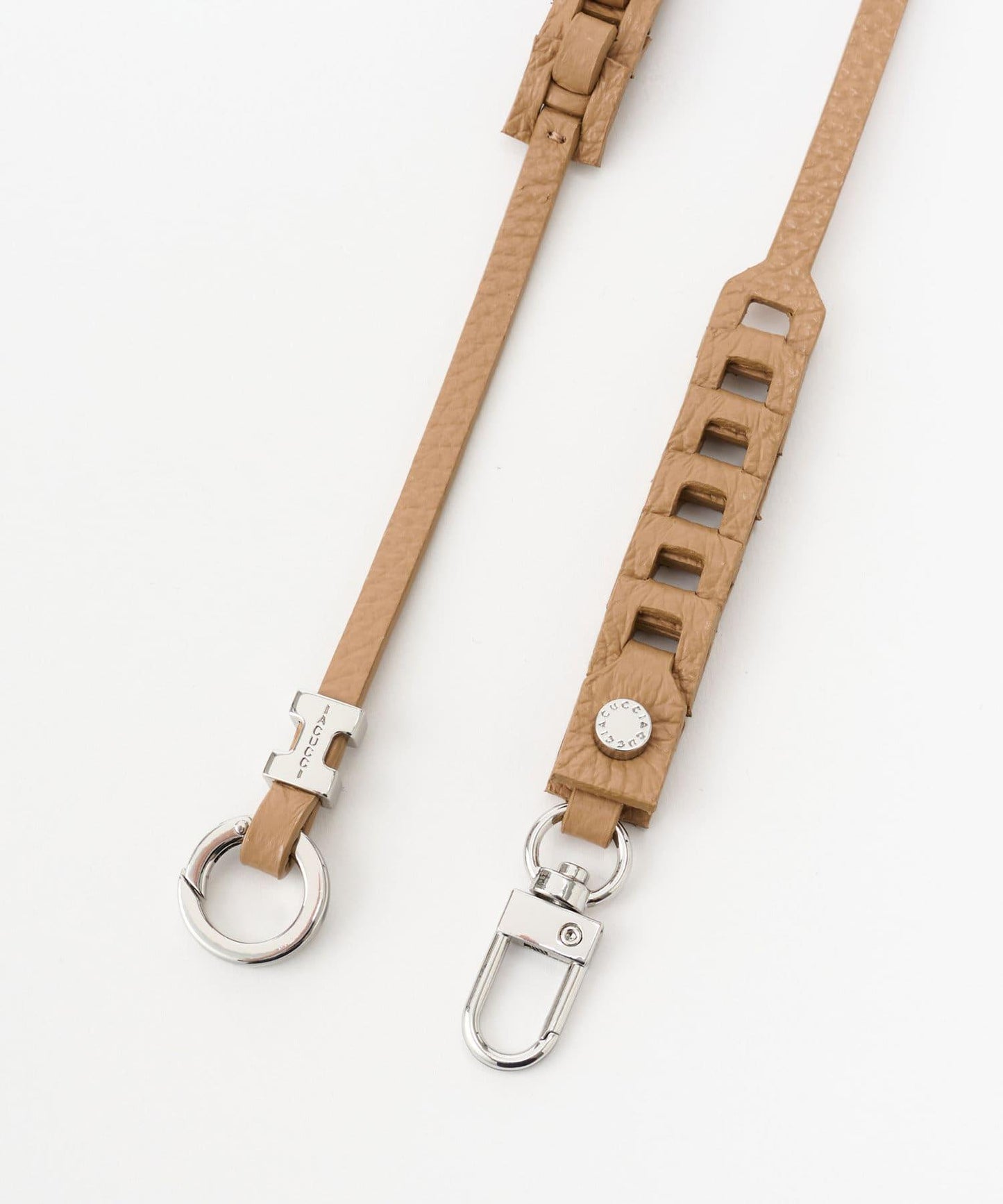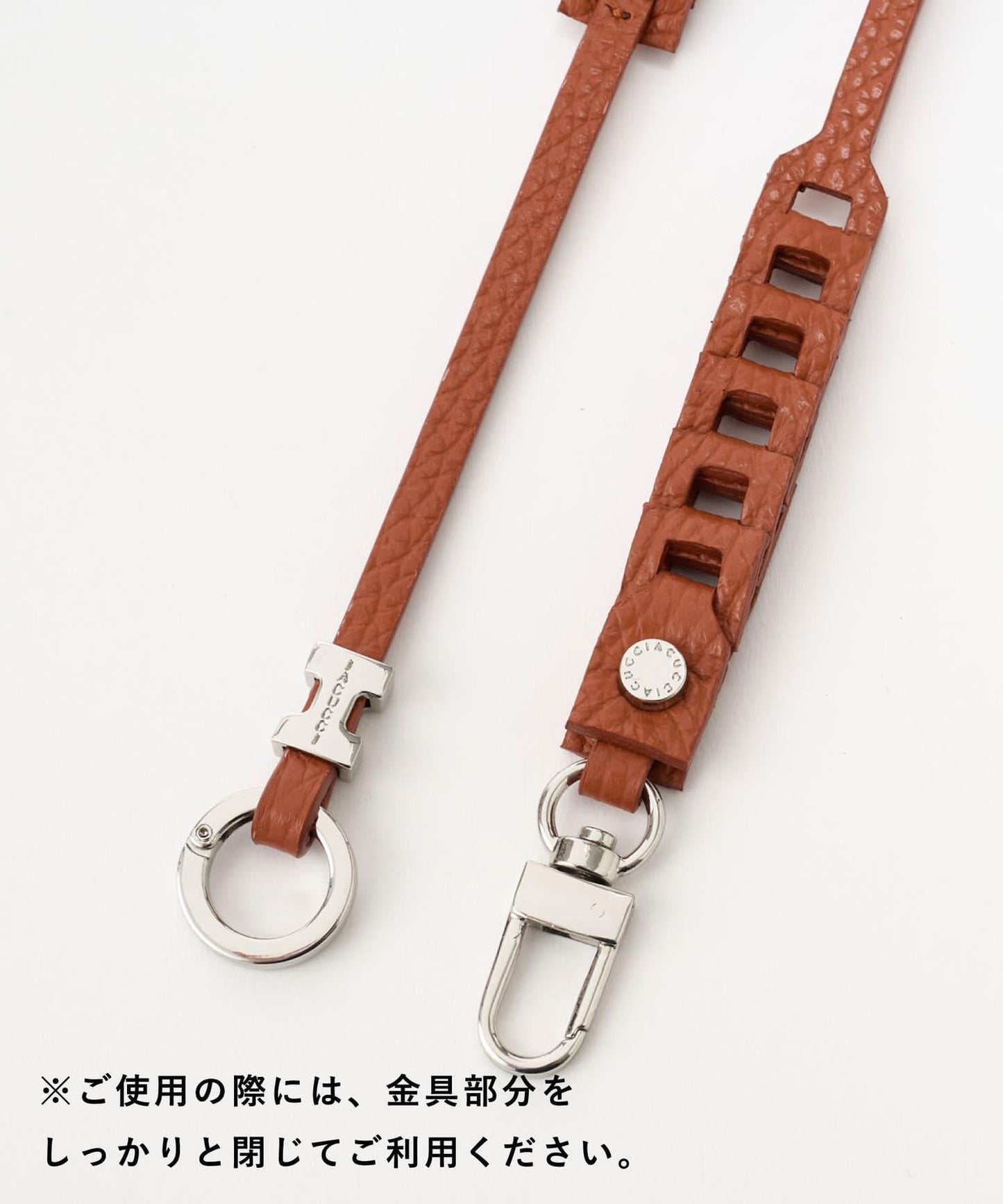 設計簡潔,風格獨立,但巧妙地運用了金屬 "I "標誌,並將柔軟的粒麵皮革與鏈條連接在一起,打造出一件藝術珍品。因此,這款獨特的產品既可作為配飾佩戴,又是 Iacucci 獨有的特色。
