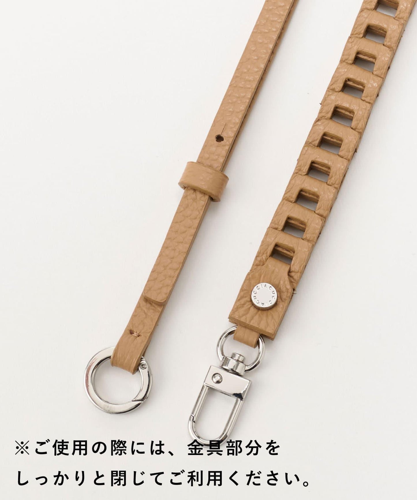 它可以通過環孔或錶帶片固定在智能手機殼上,兩端都有鉤扣,方便安裝和拆卸。長型是對角型,也可以調節長度,讓您可以張開雙手攜帶智能手機,方便外出。此外,它的長度還可以斜戴在外衣外面。