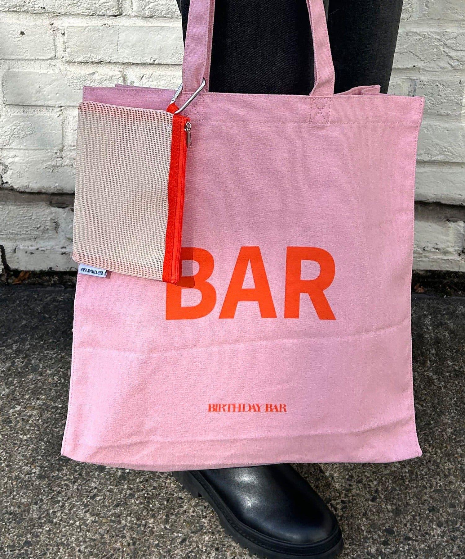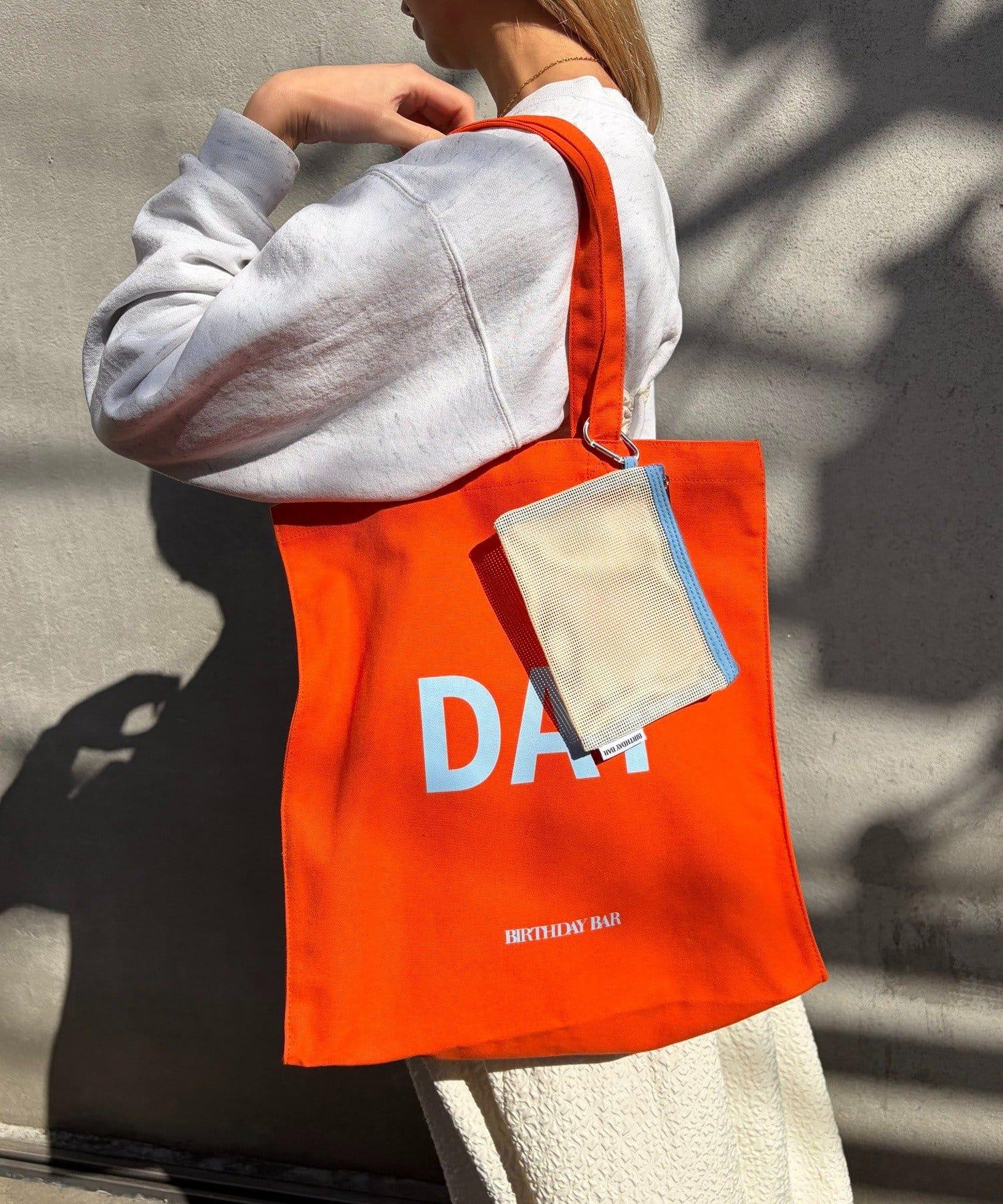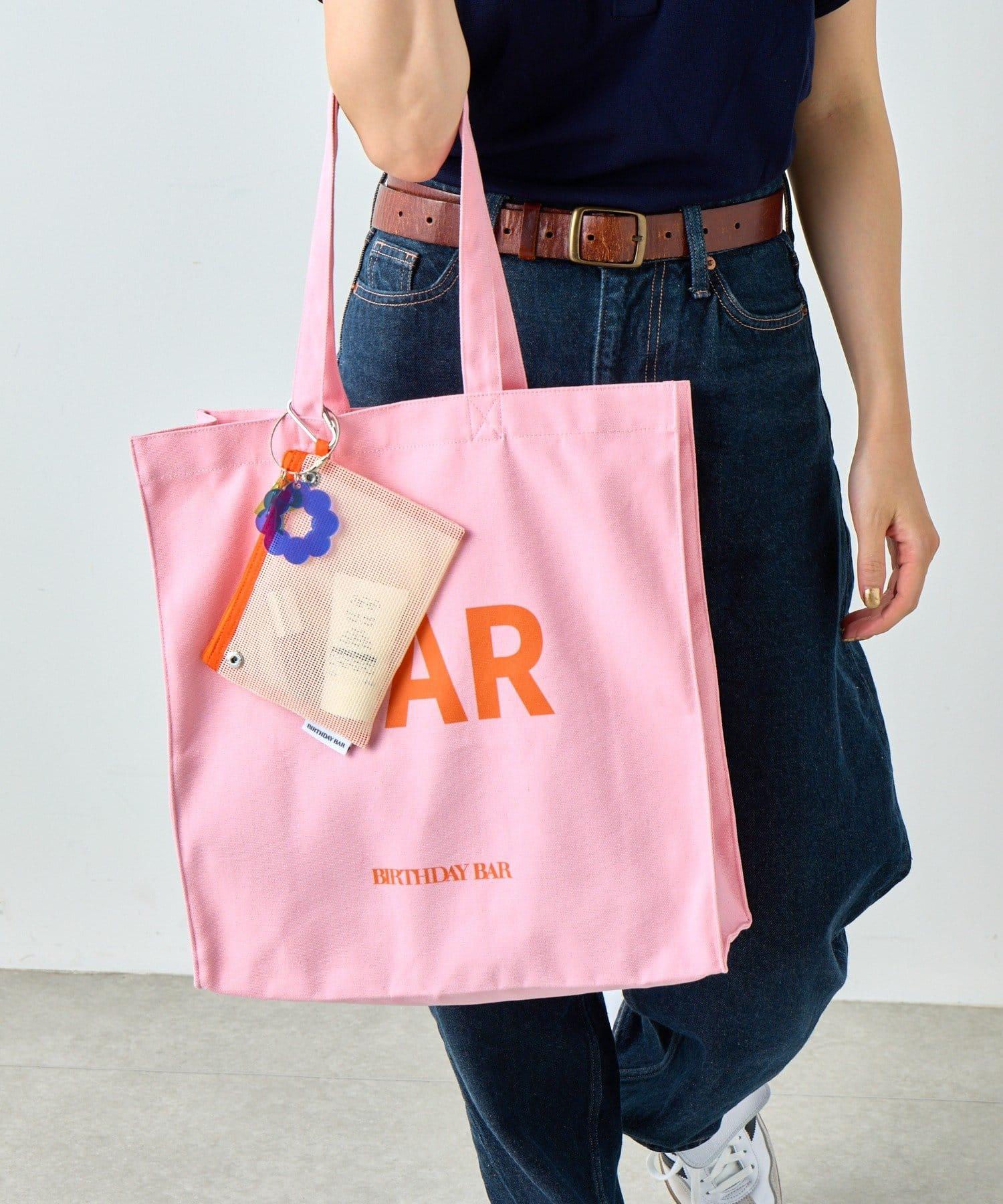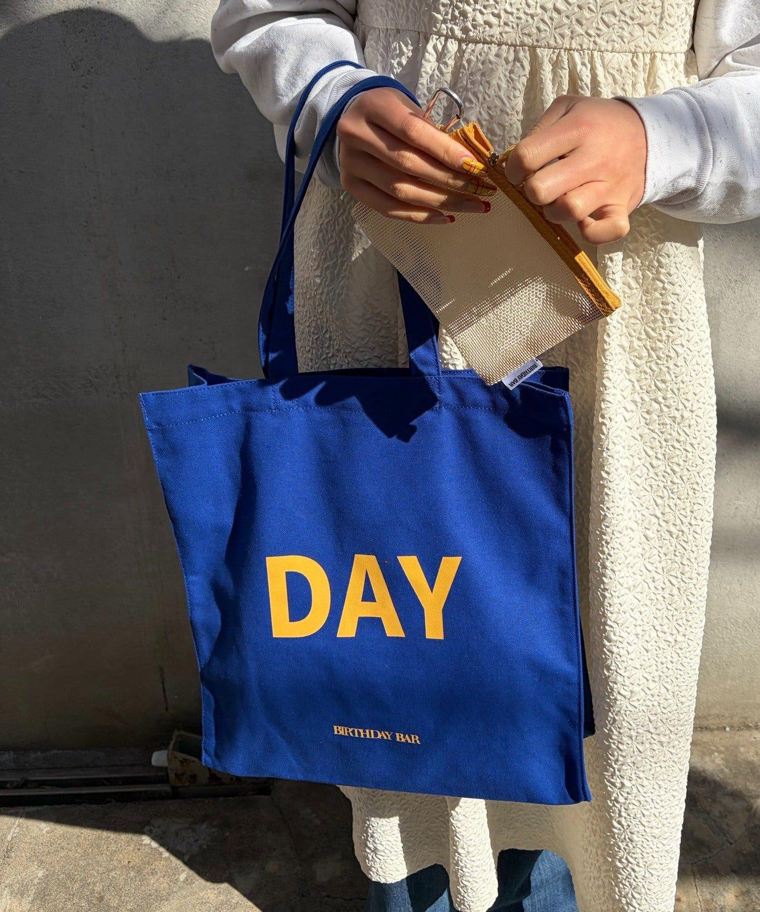 大號帆布手提袋,印有 "BIRTHDAY BAR "的 "BAR "和 "DAY "圖案。