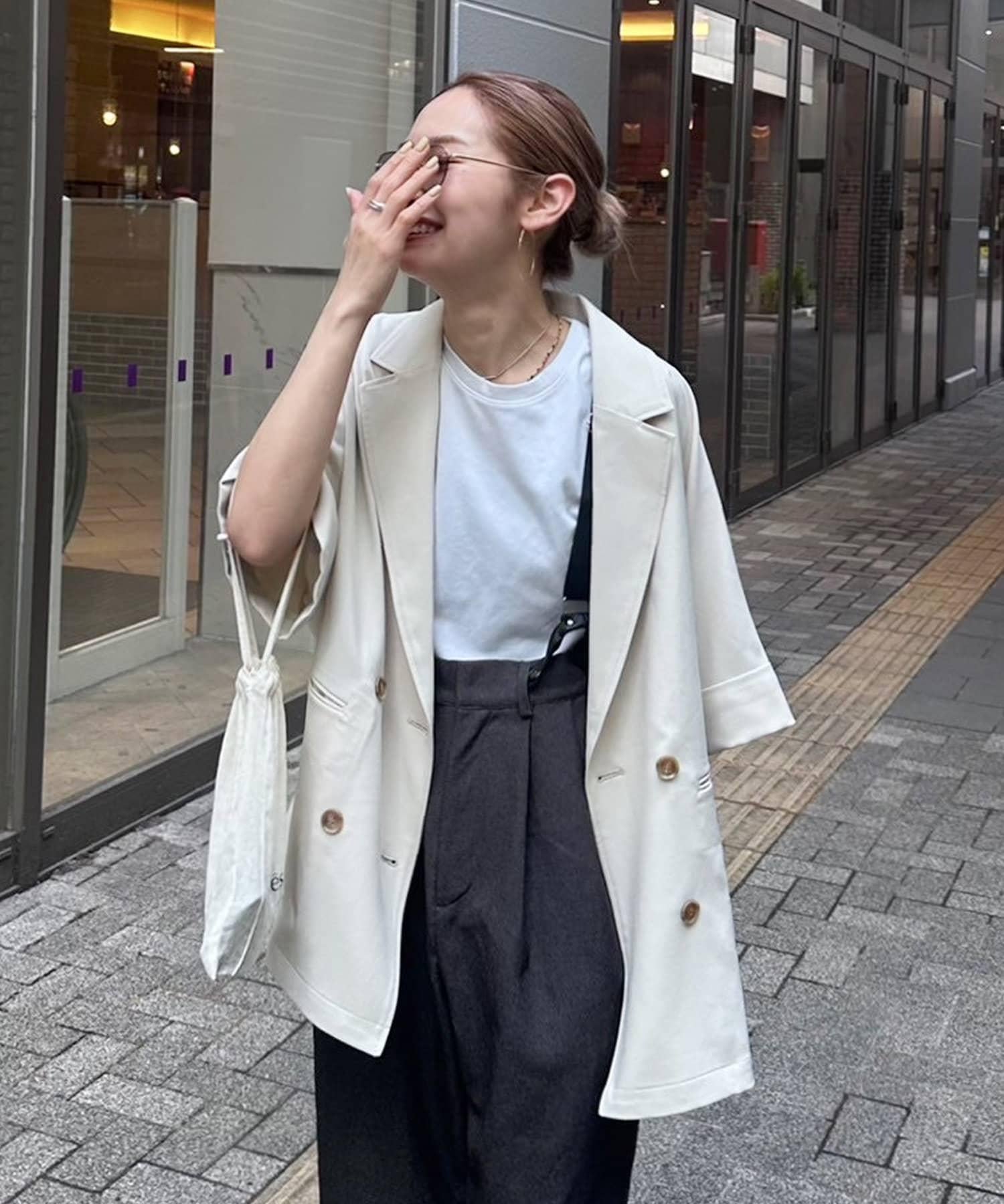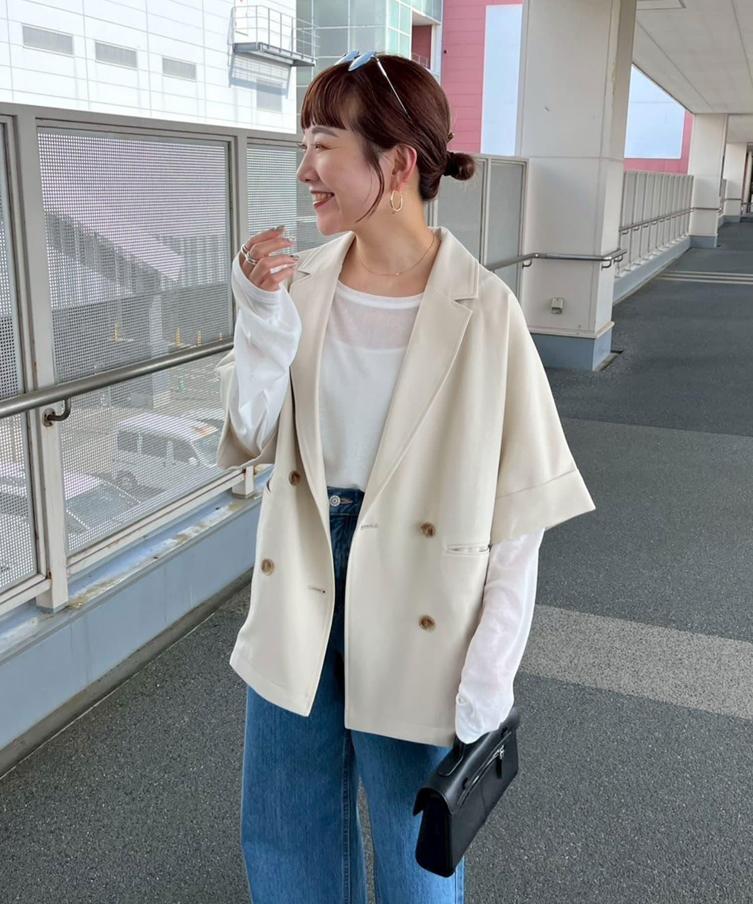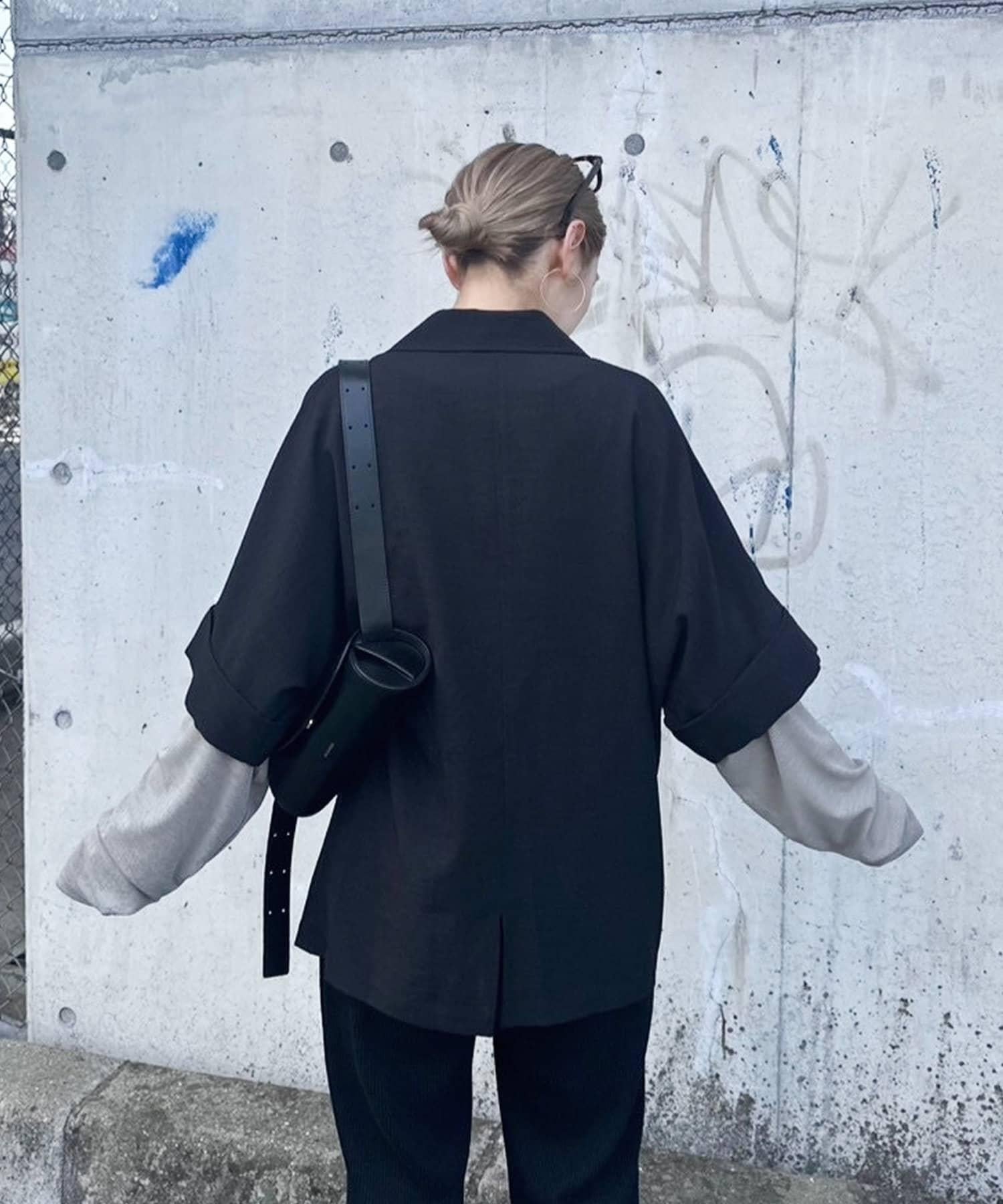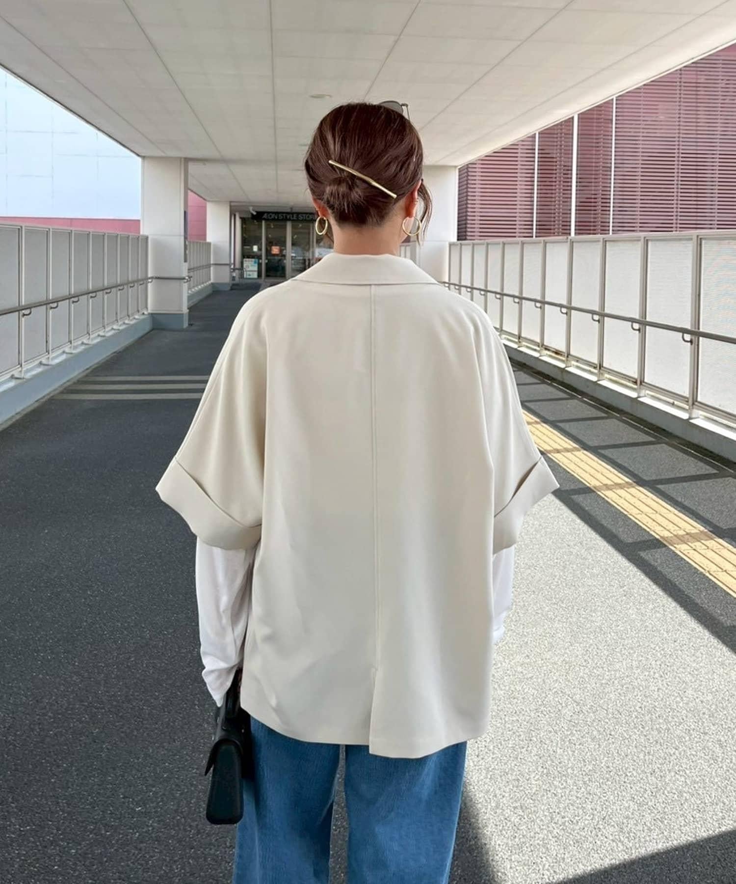 長度覆蓋腰部,寬大的袖口讓手臂看起來更纖細。