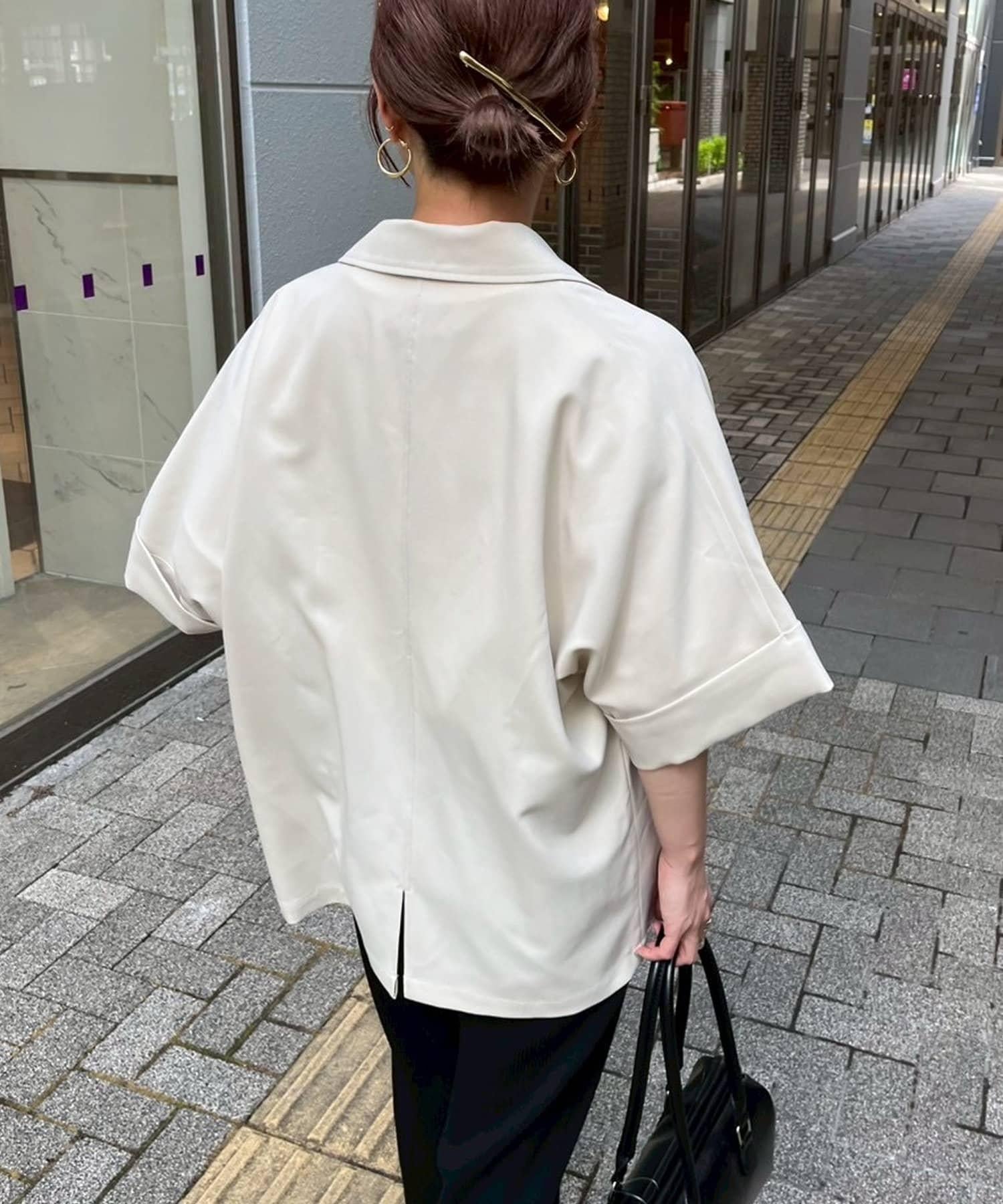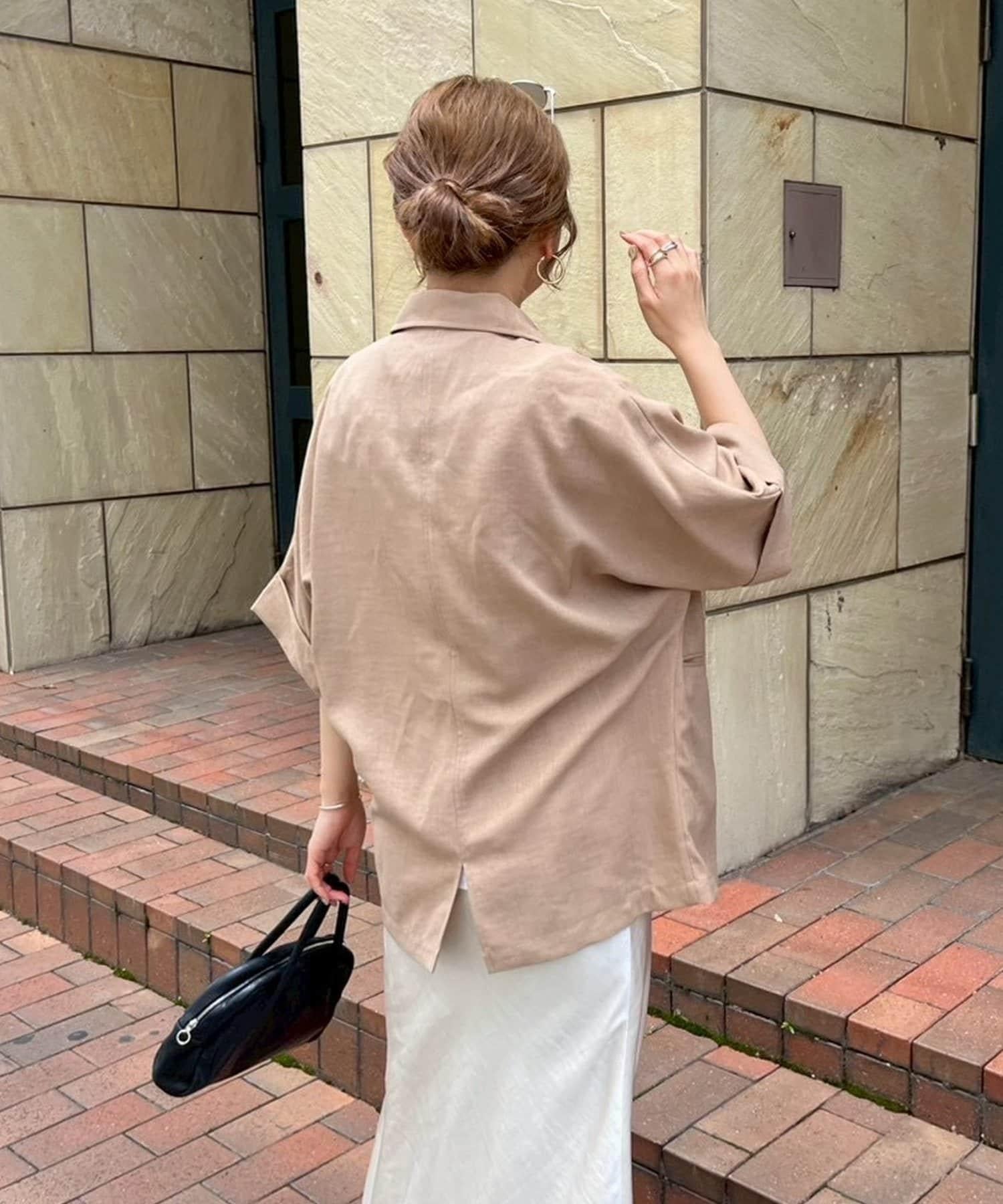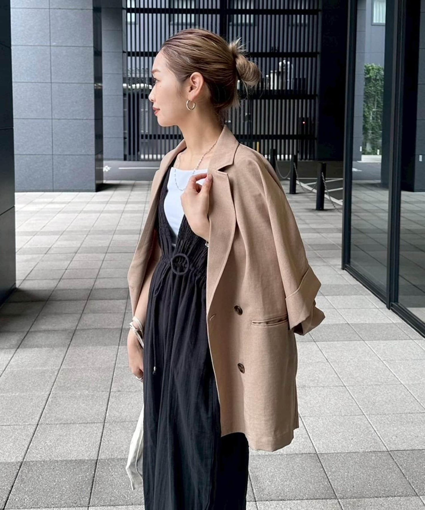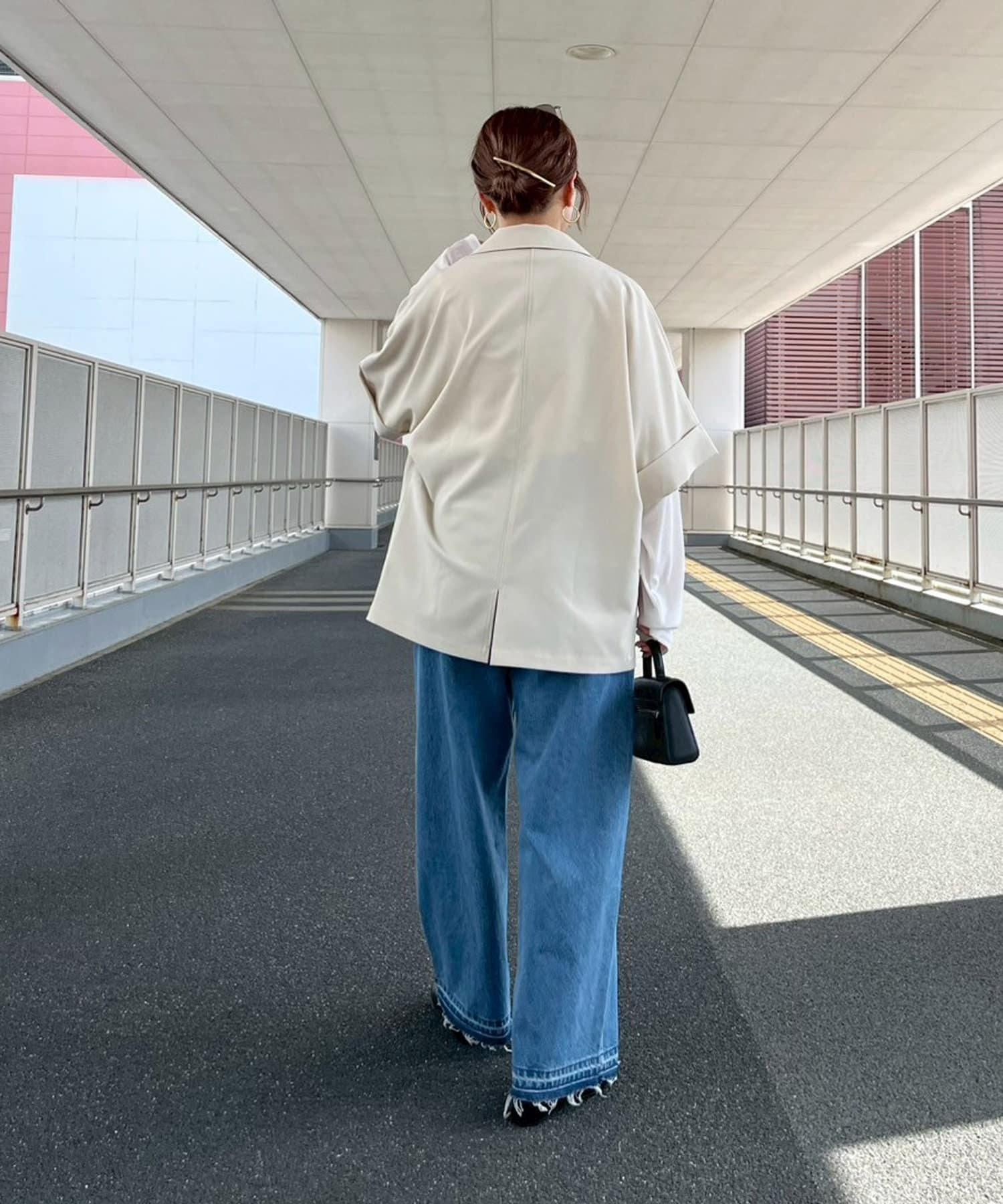 長度覆蓋腰部,寬大的袖口讓手臂看起來更纖細。