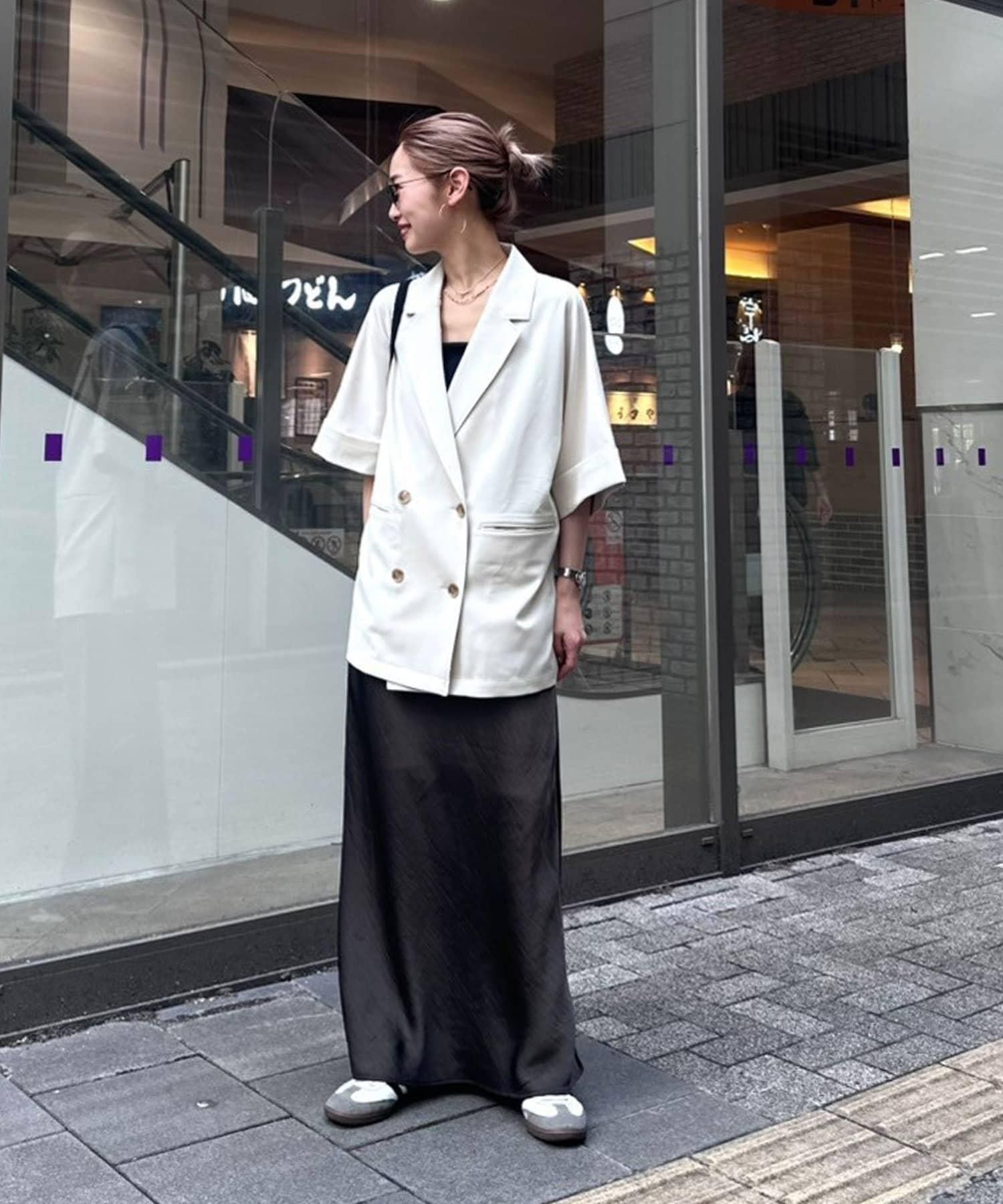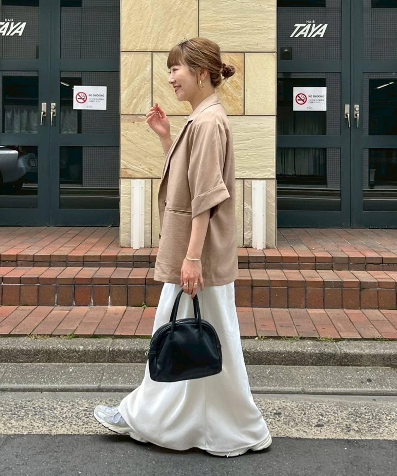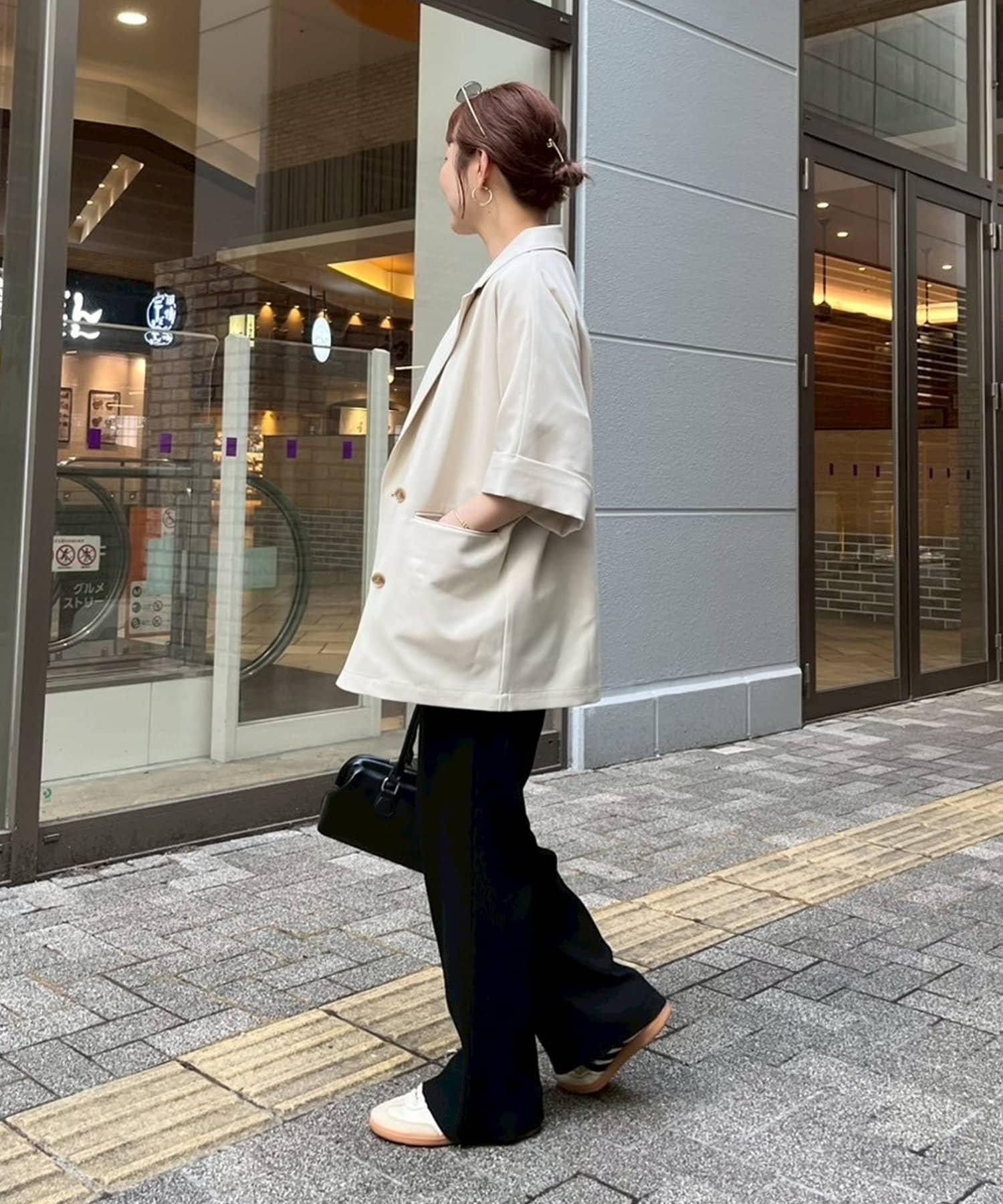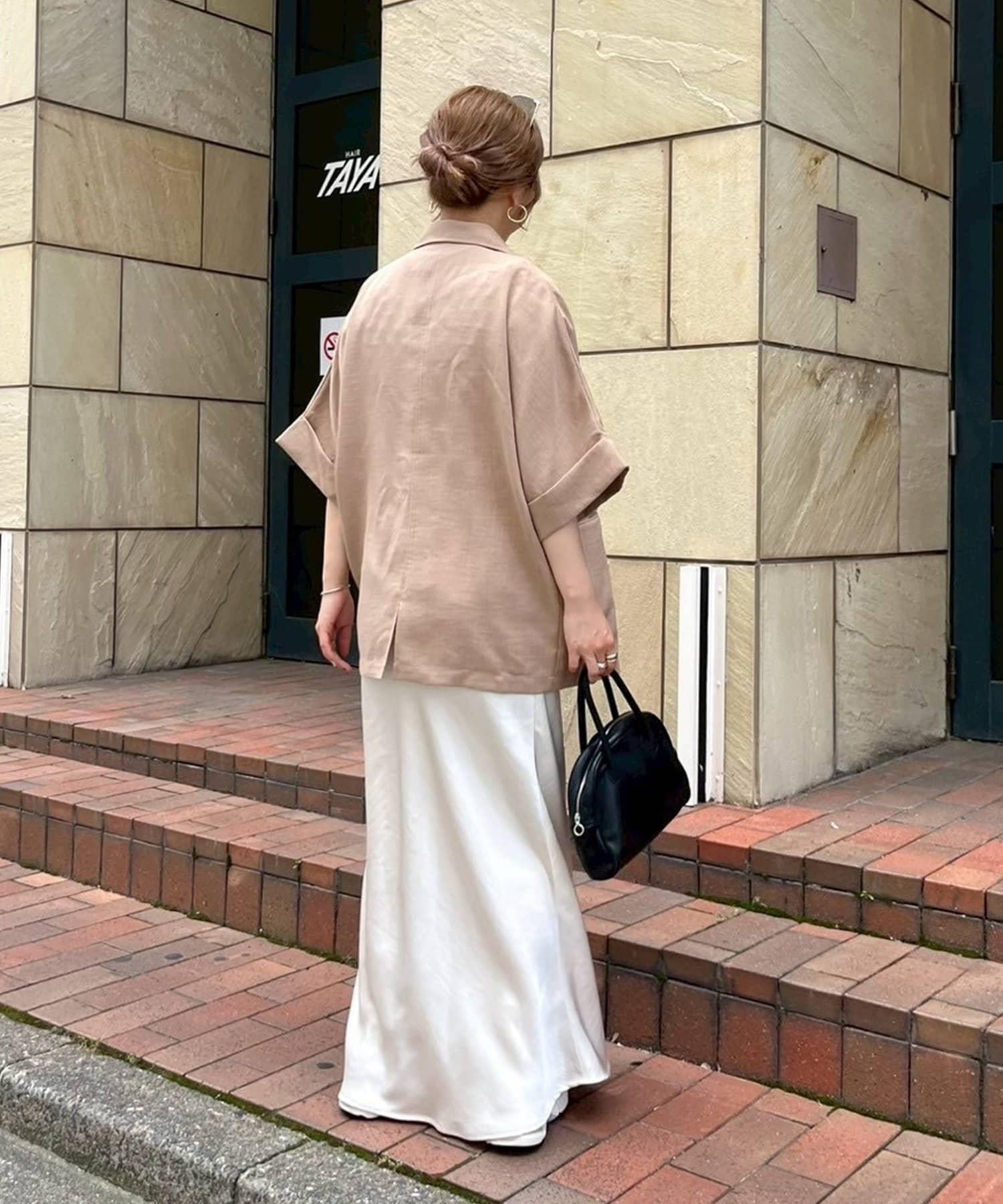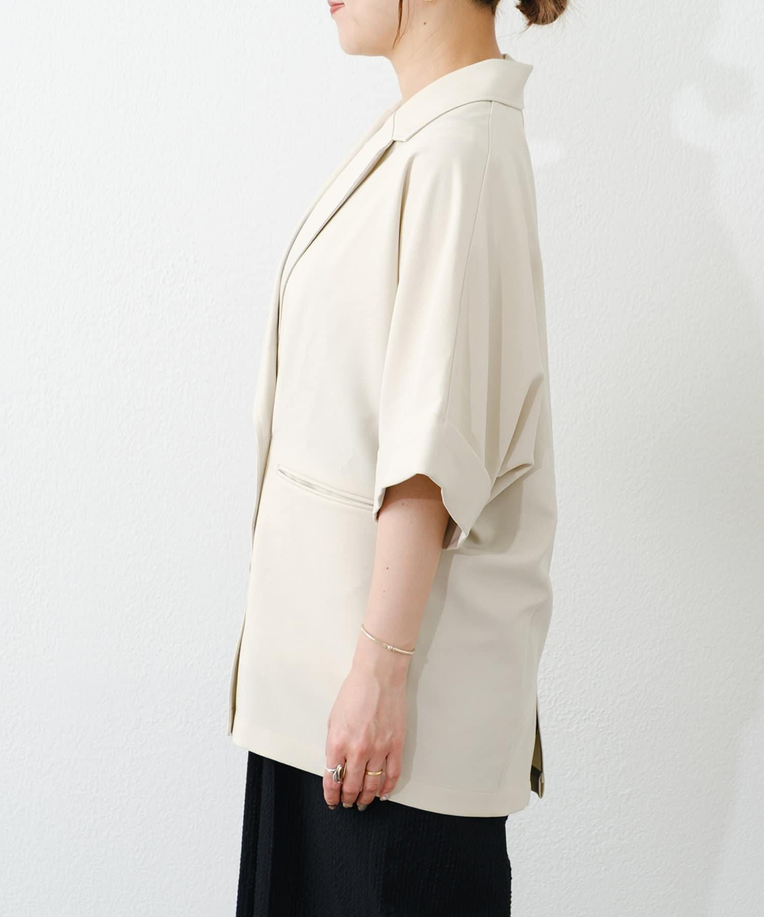 長度覆蓋腰部,寬大的袖口讓手臂看起來更纖細。
