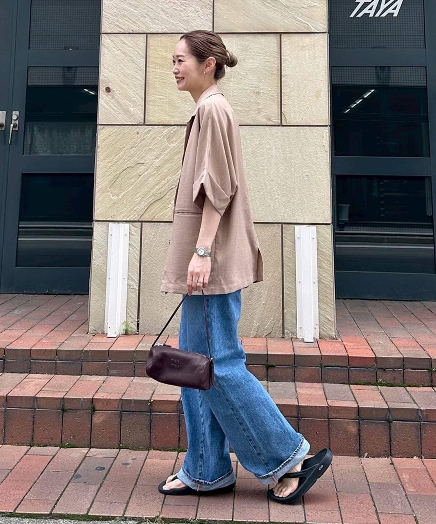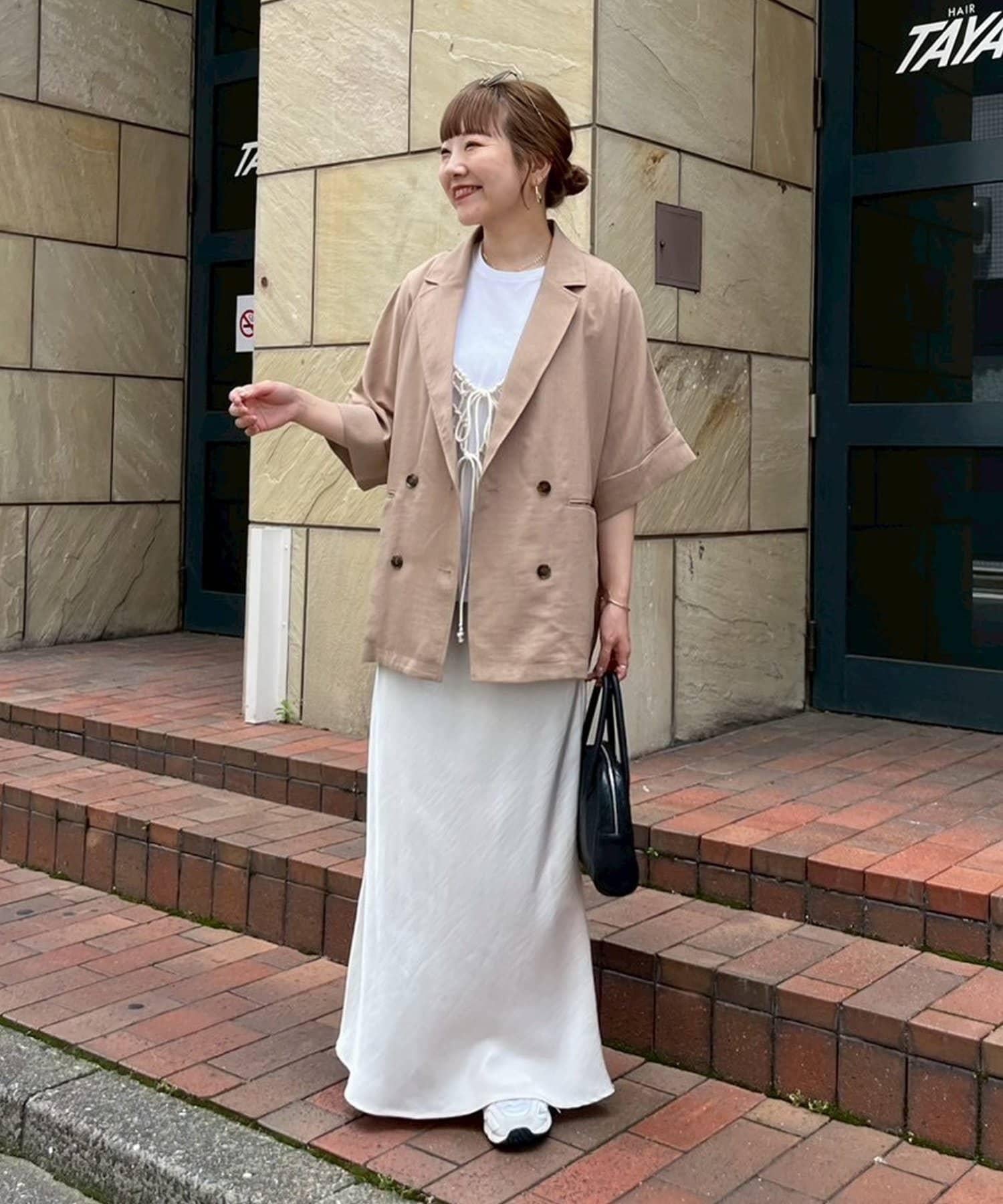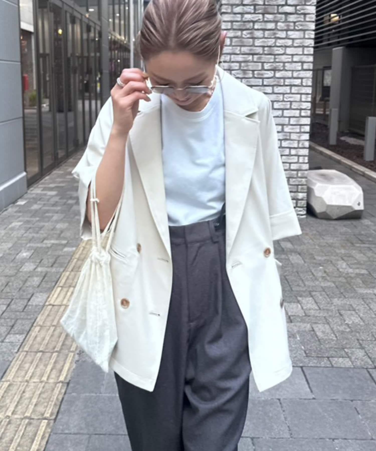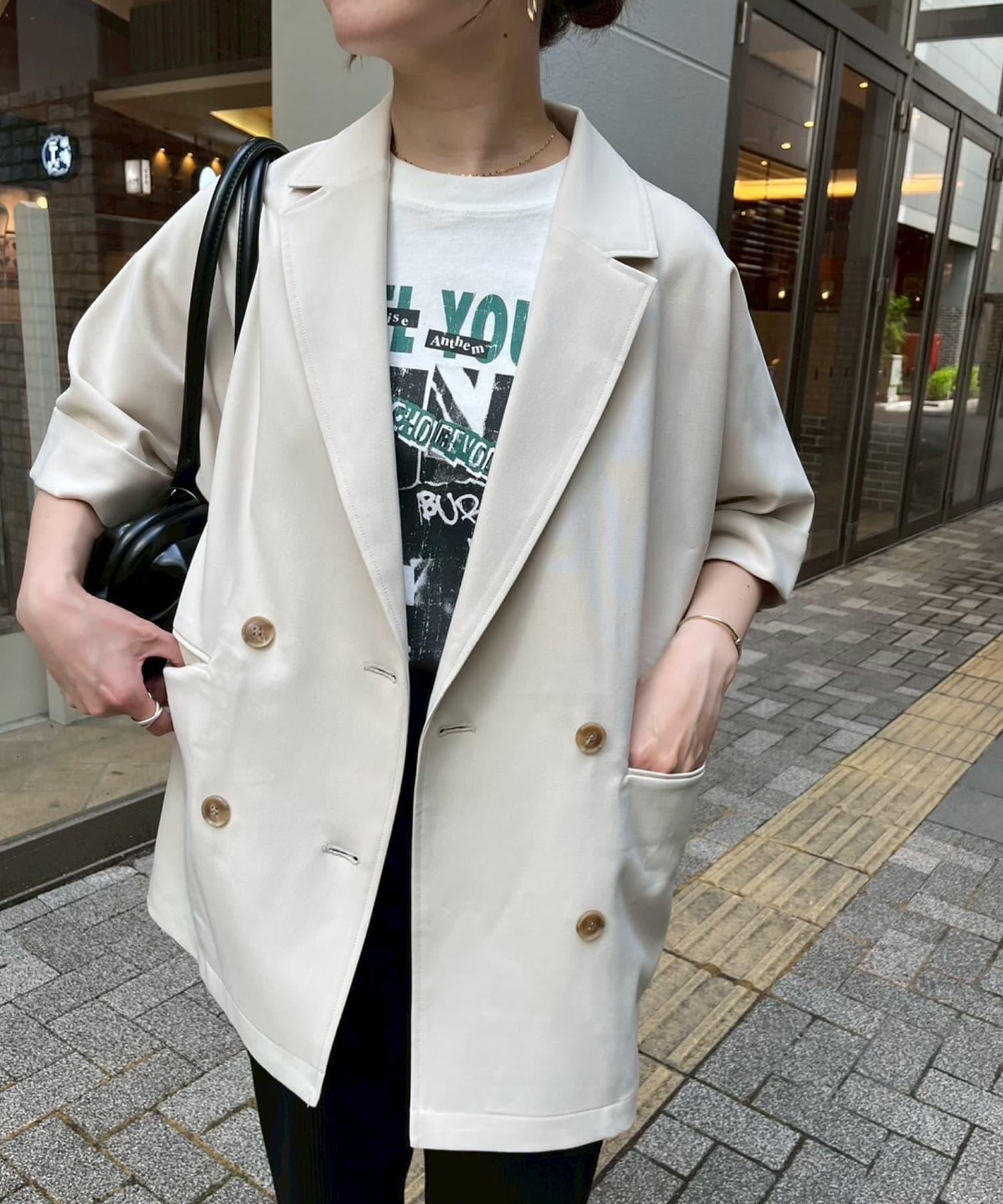 長度覆蓋腰部,寬大的袖口讓手臂看起來更纖細。