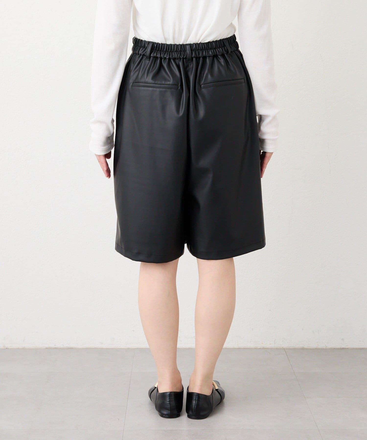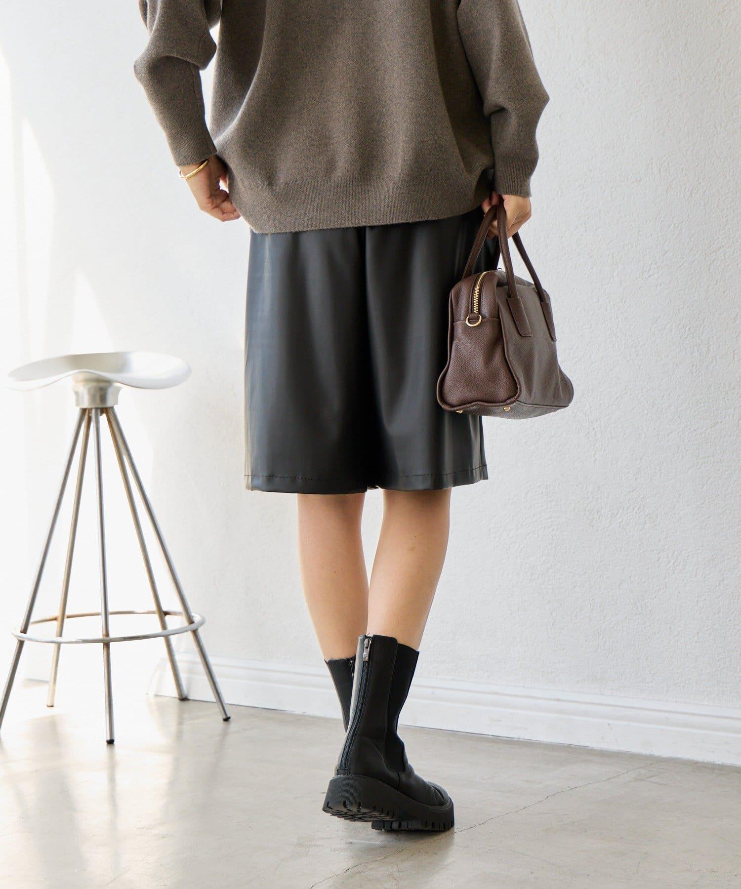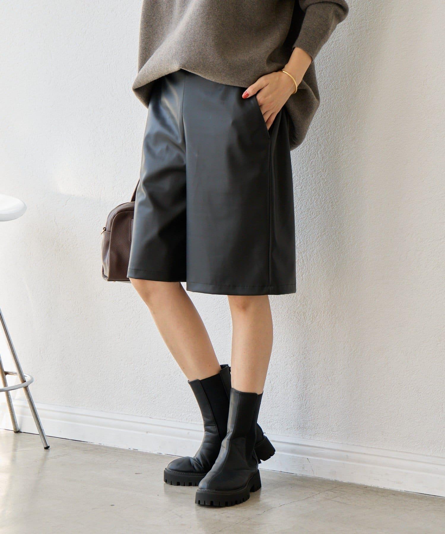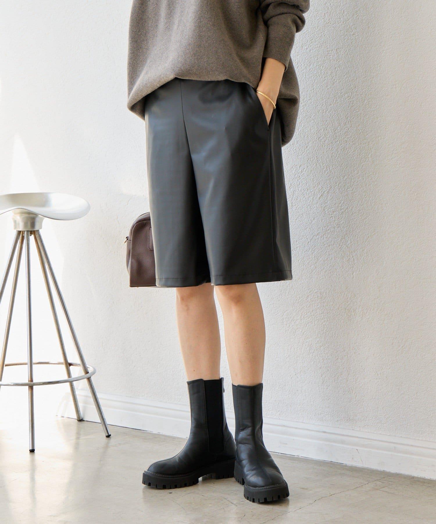 半長褲採用仿皮材料製成,具有低調的光澤。