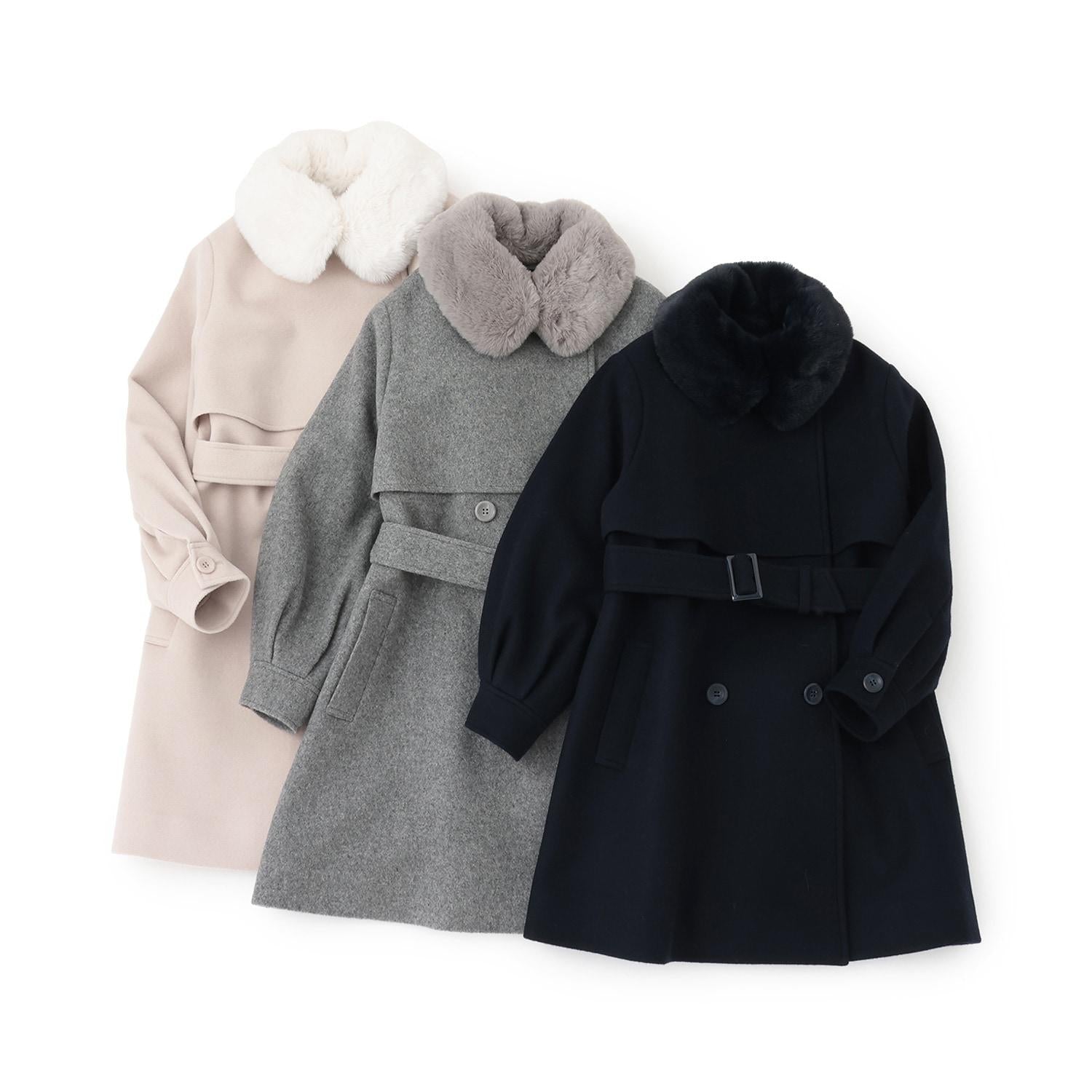 帶仿皮草領中長款大衣