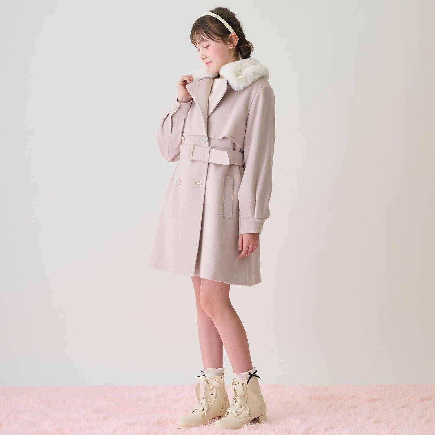 如果將紐扣扣緊,領口處的人造皮草就會溫暖地包裹住脖子。