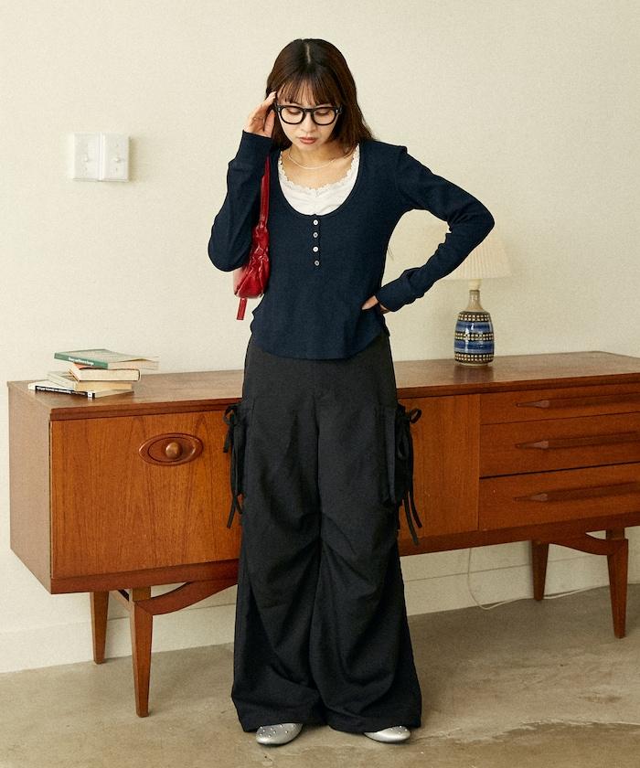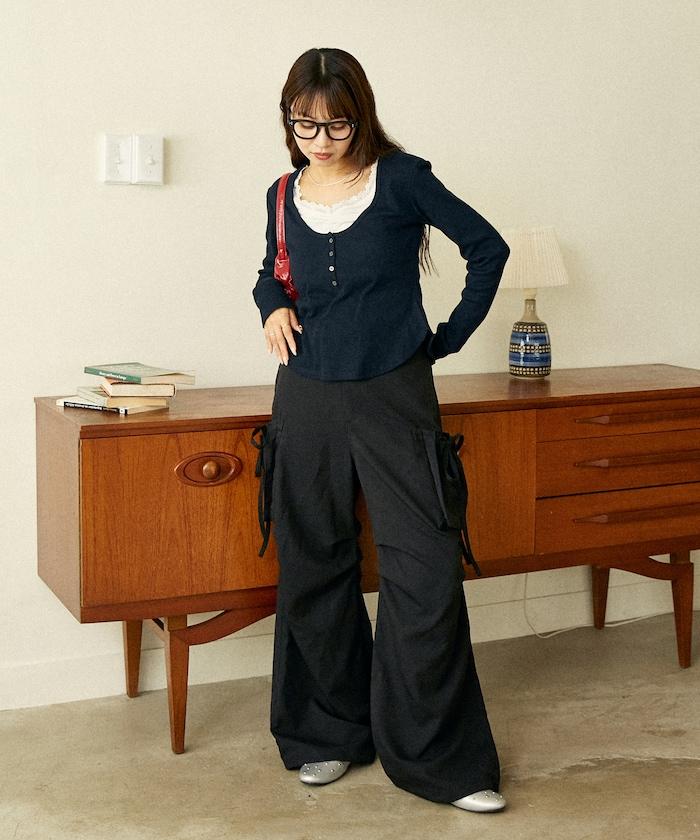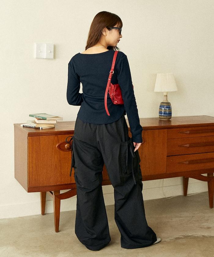 這款側袋長褲具有很強的存在感,可搭配簡單的上衣,打造時髦造型。
