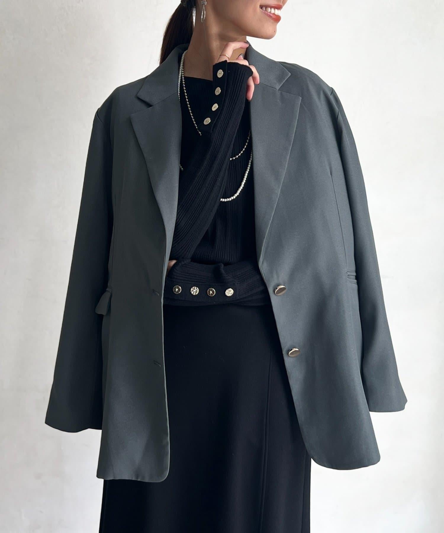 剪裁合體的夾克,金色紐扣增添女性魅力。
