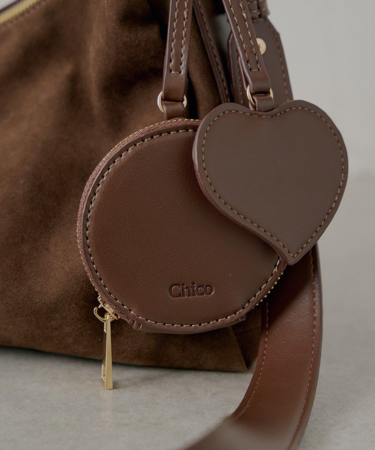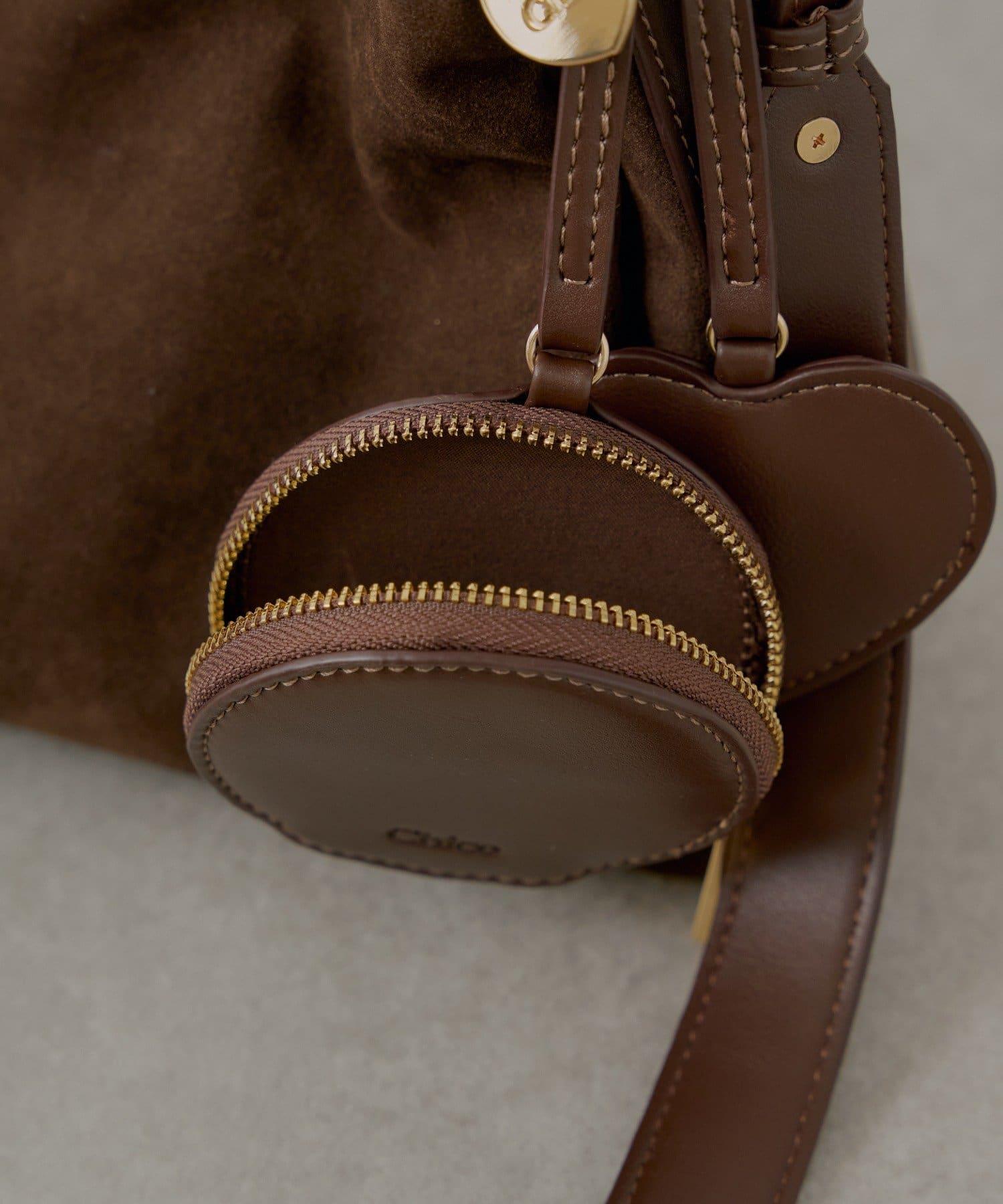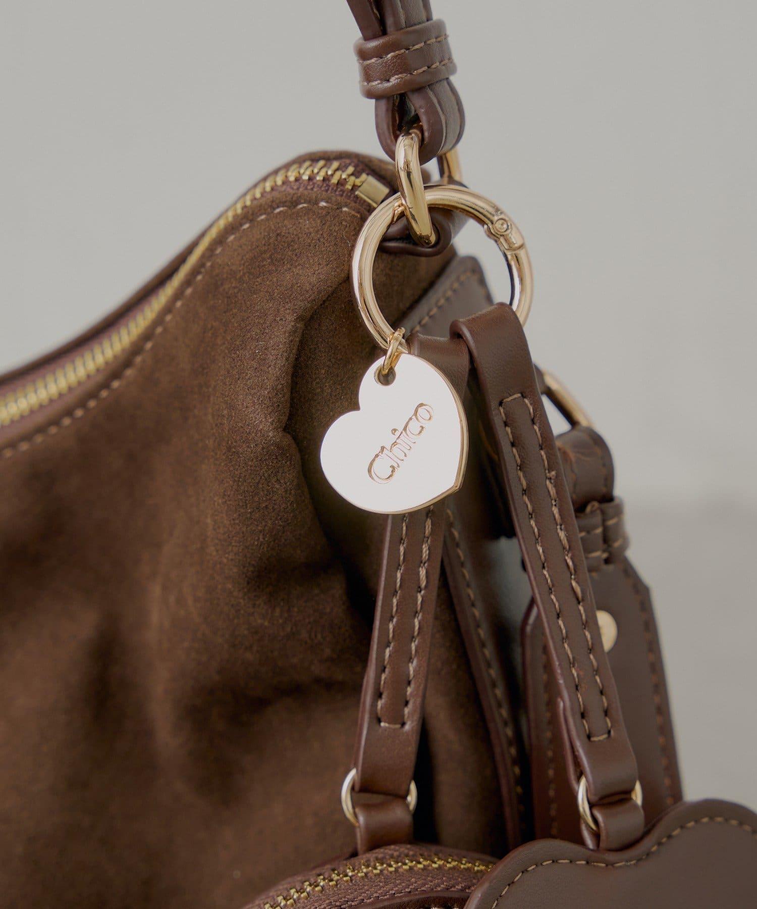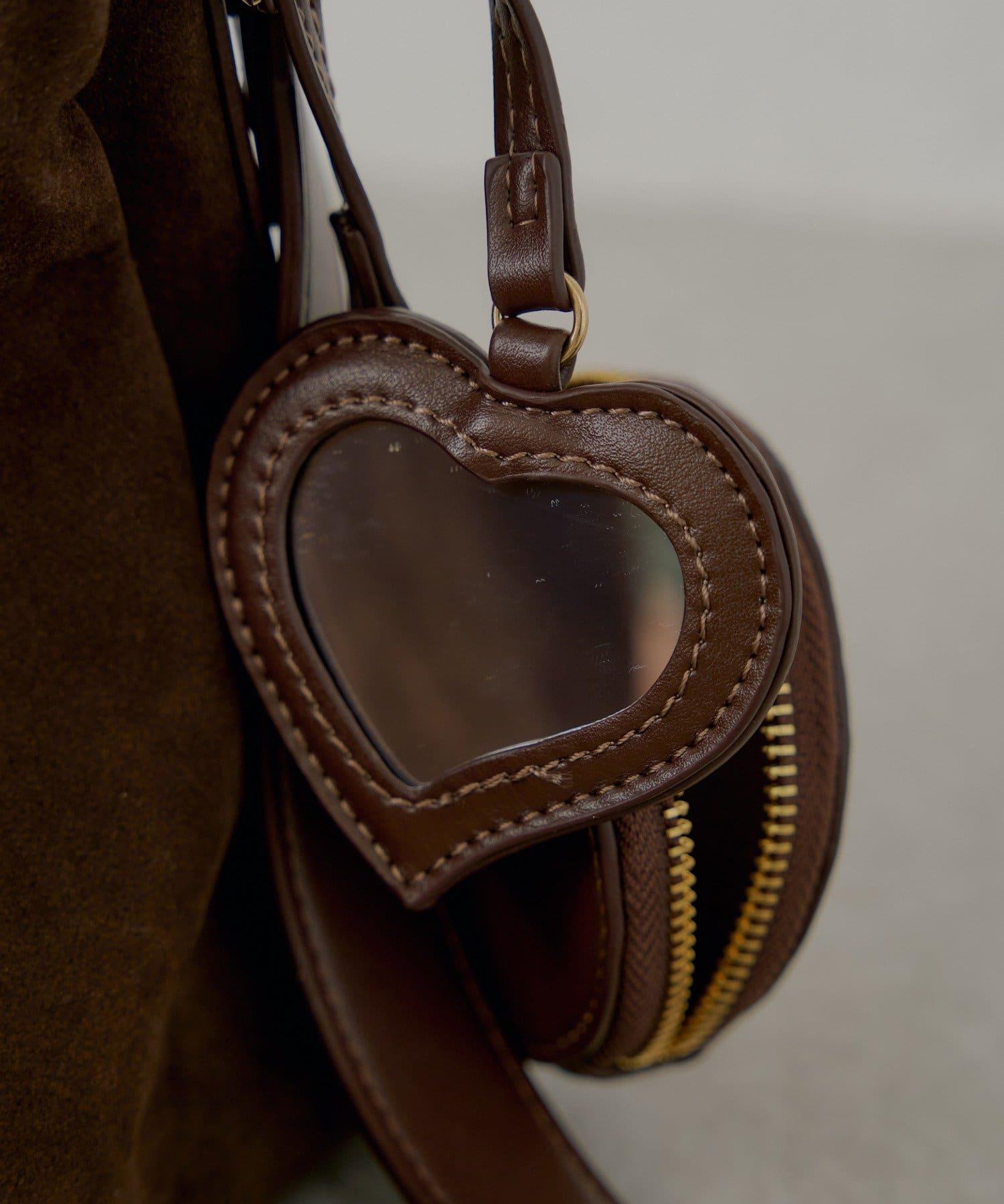 小袋吊飾和心形鏡子為包包增添了協調的亮點。