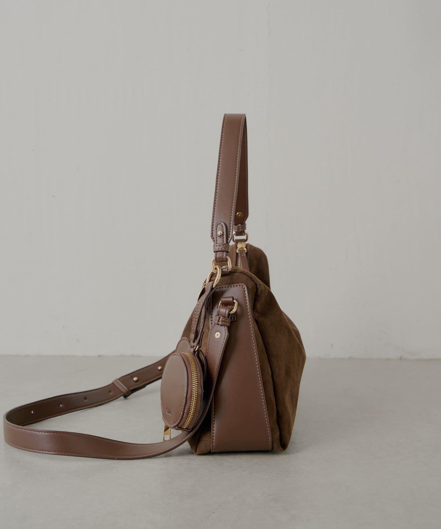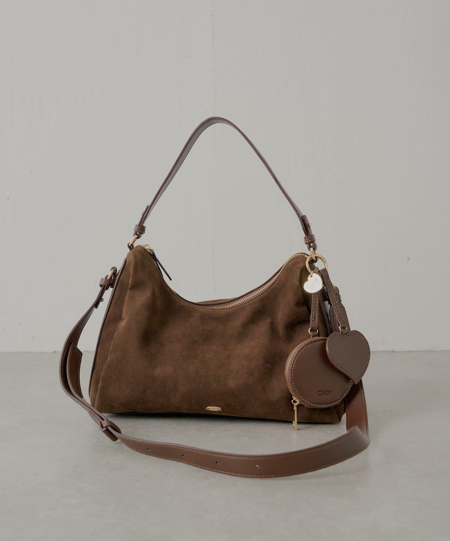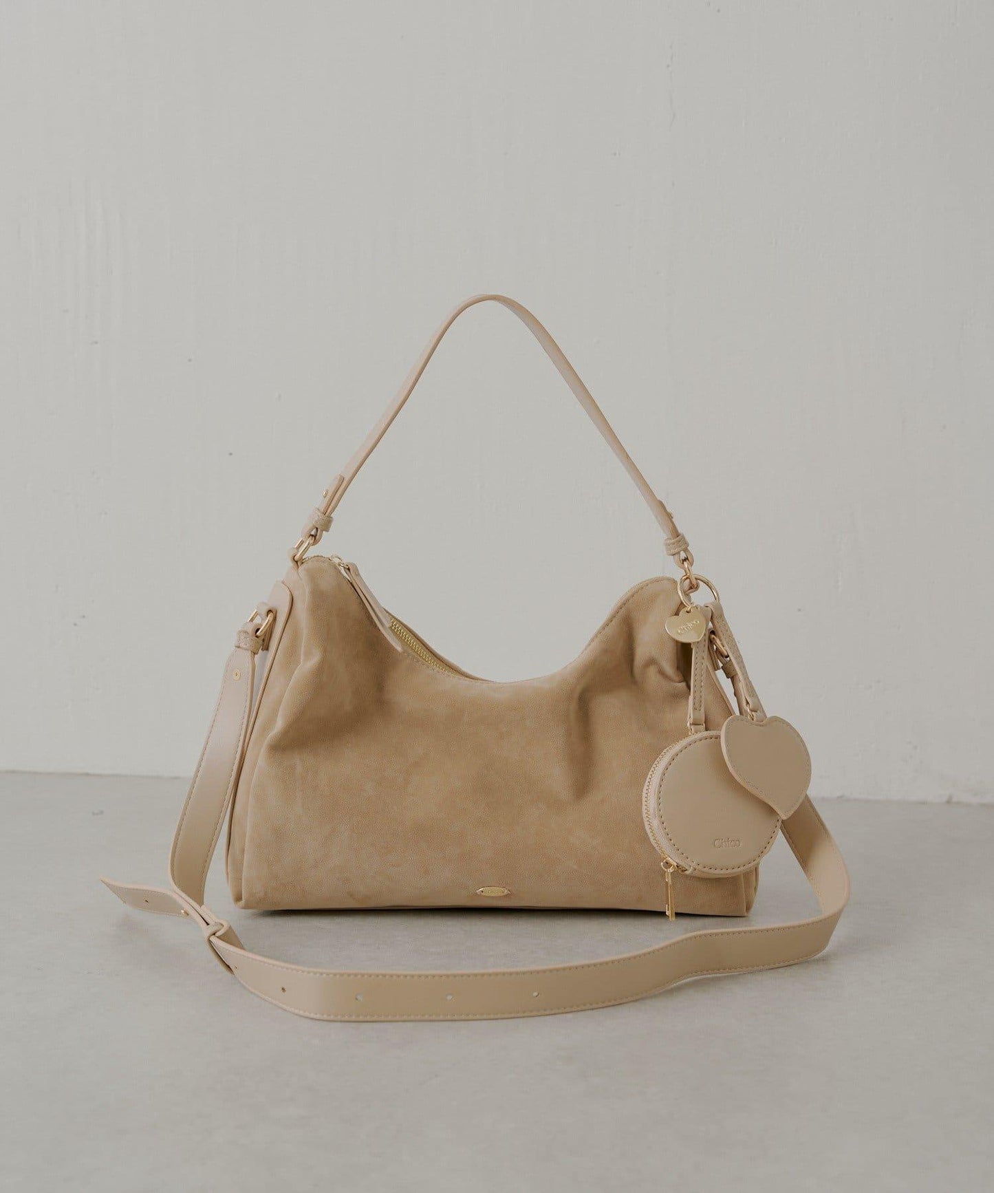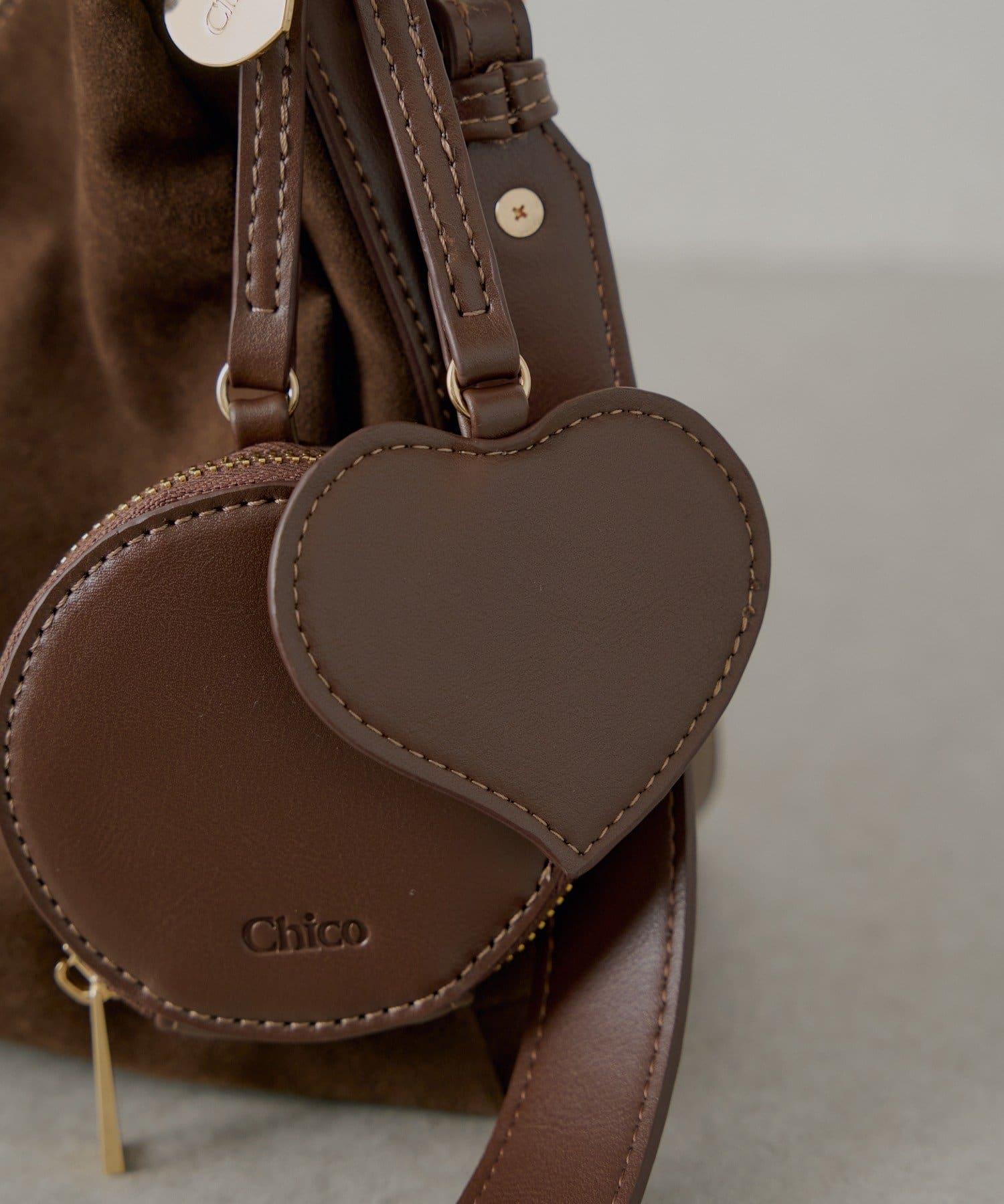 小袋吊飾和心形鏡子為包包增添了協調的亮點。