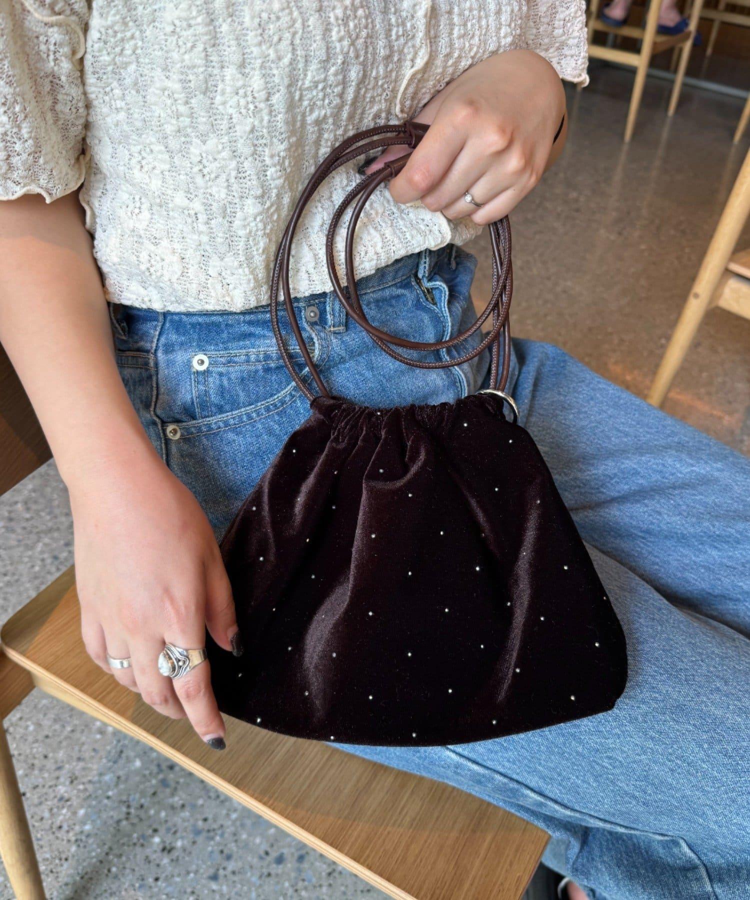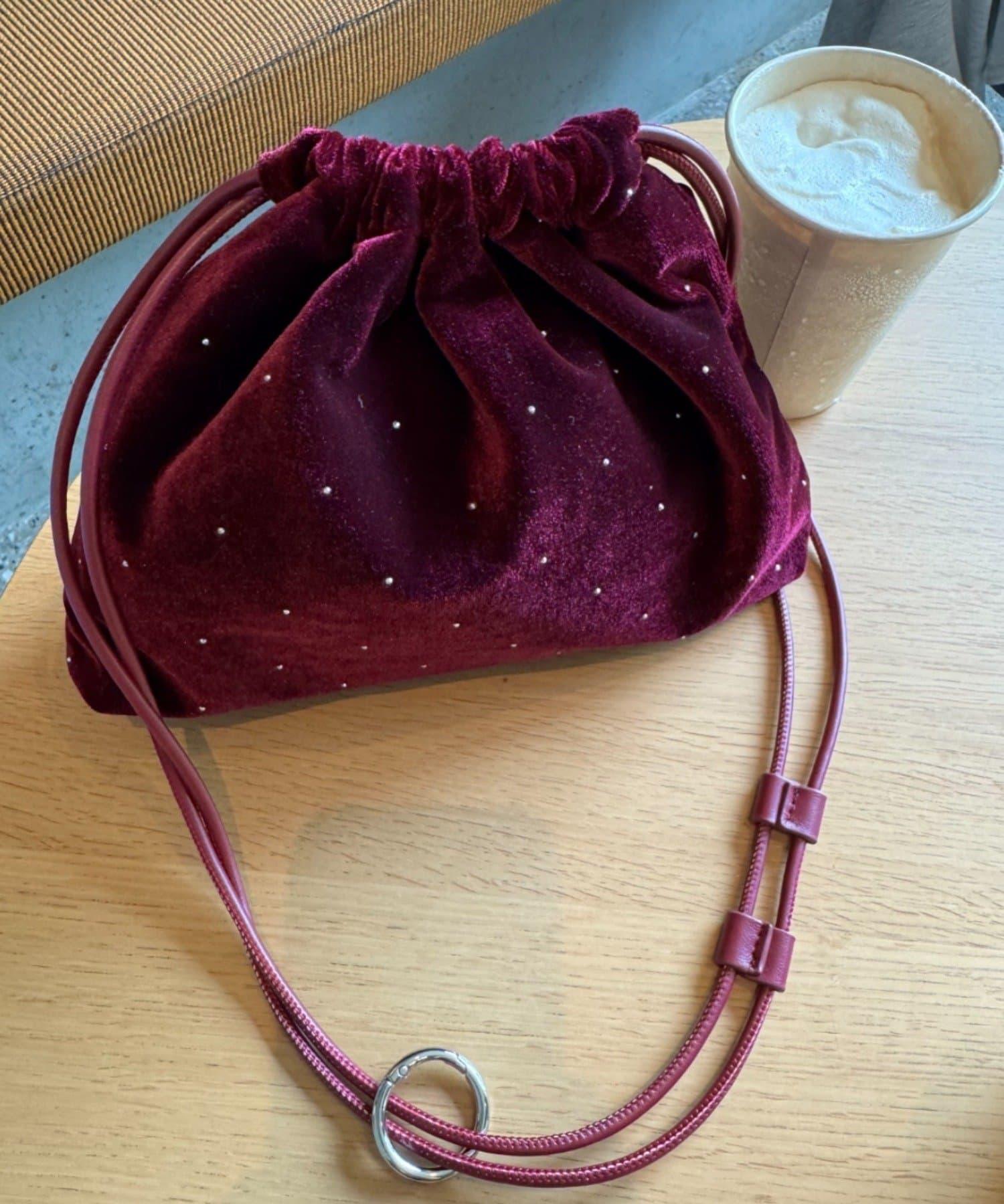 抽繩設計:可愛的抽繩造型讓這款手袋顯得圓潤可愛。