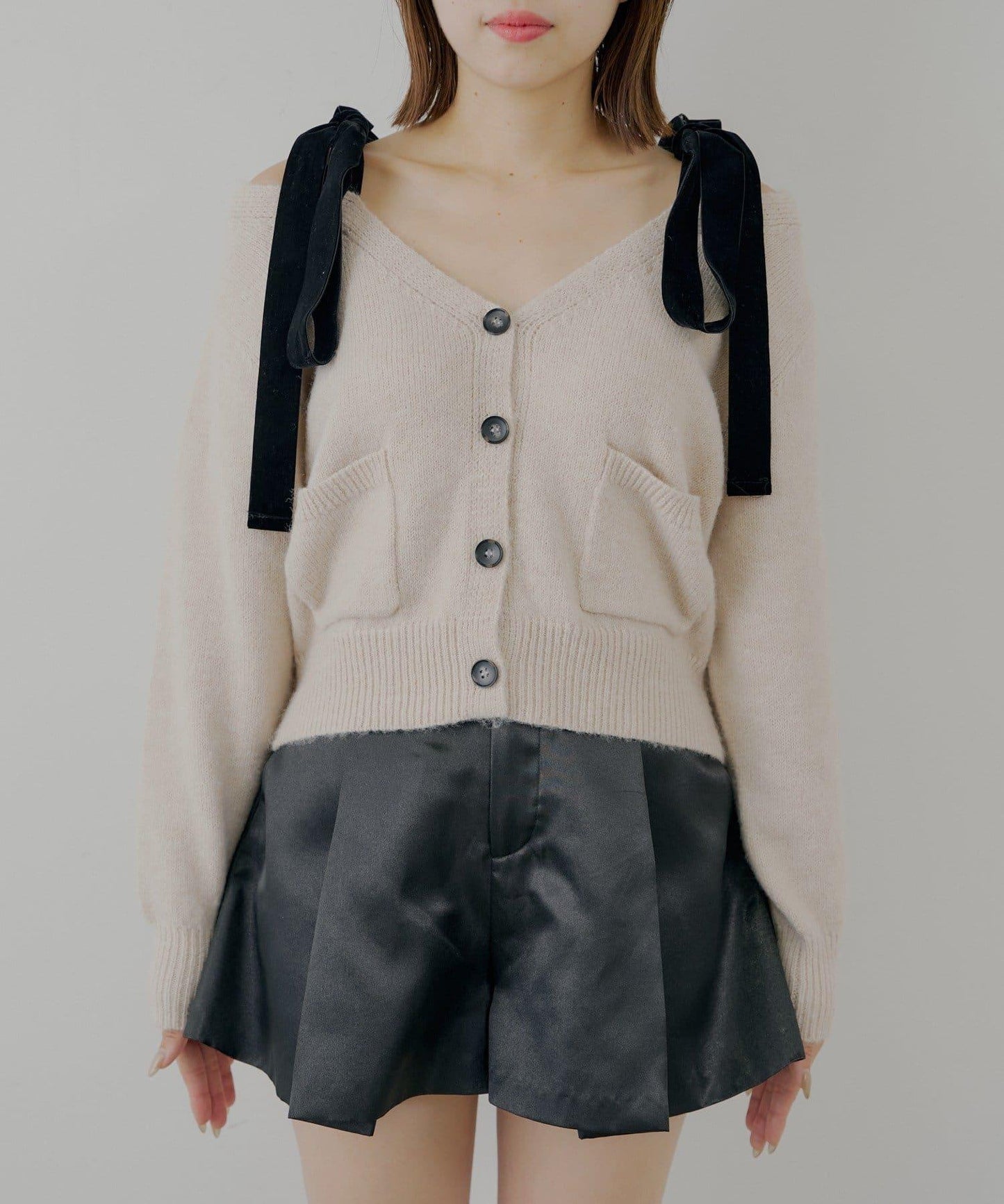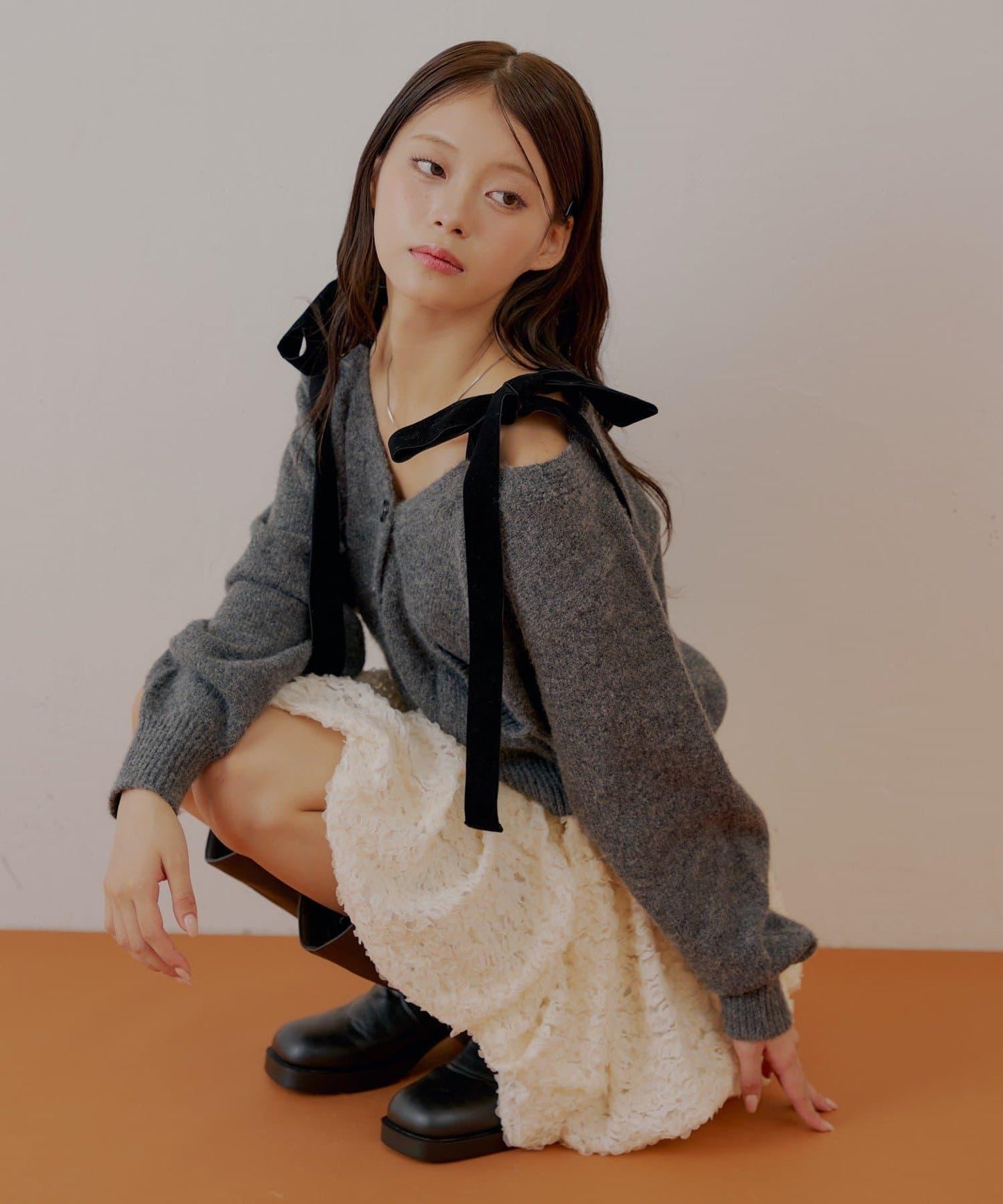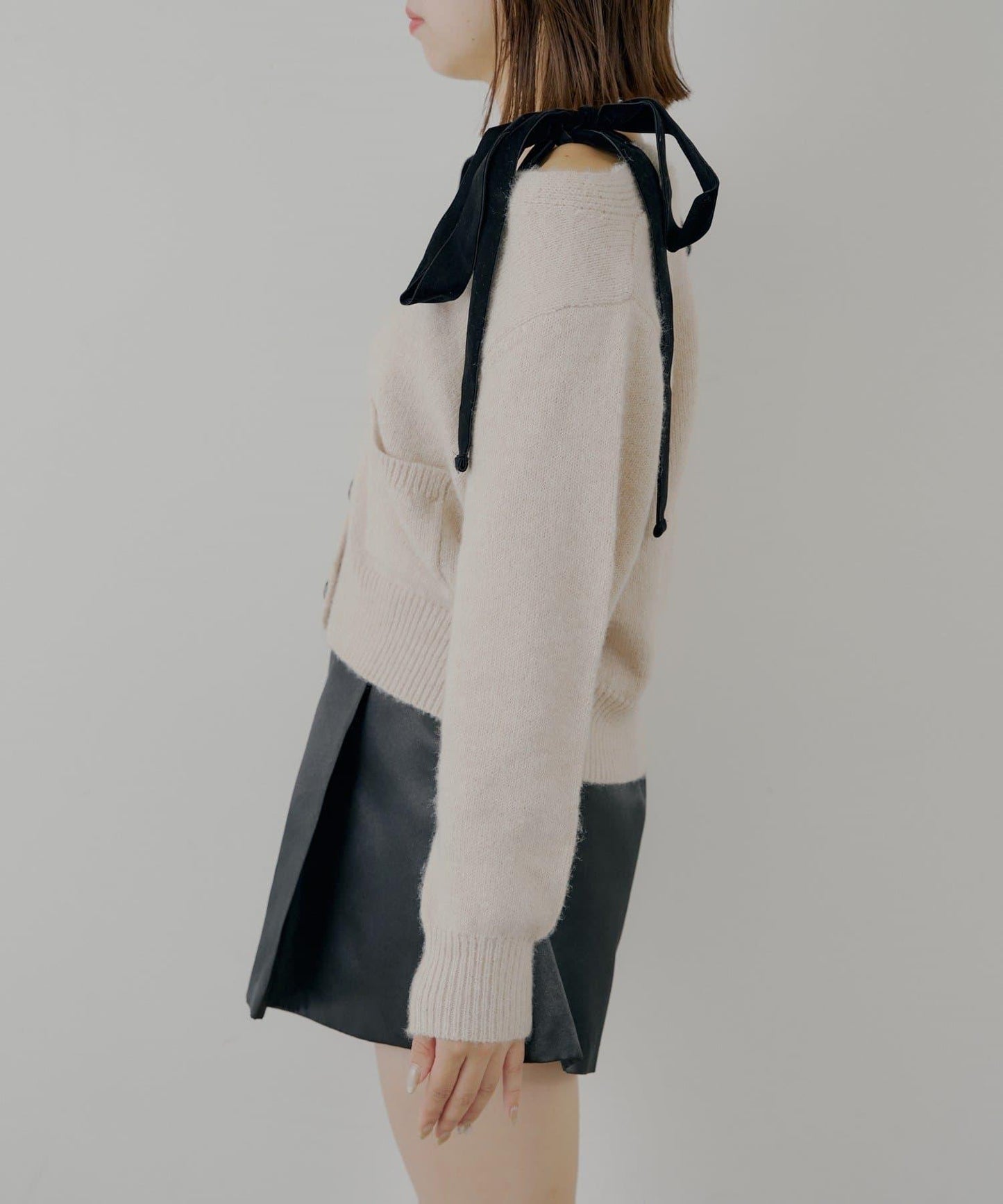 蓬鬆剪裁的開衫,肩部飾有絲帶!