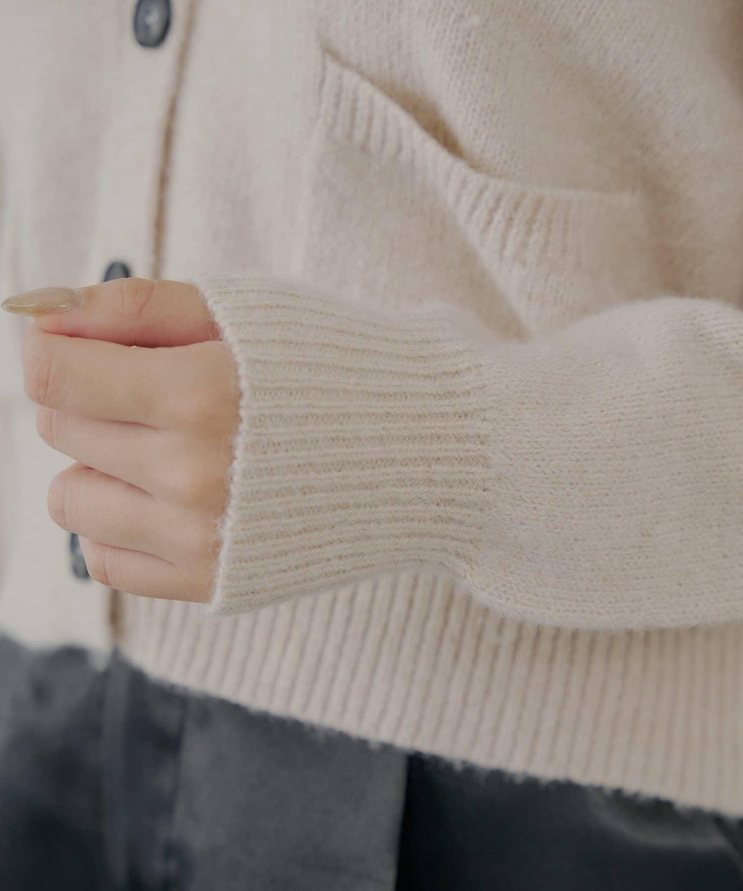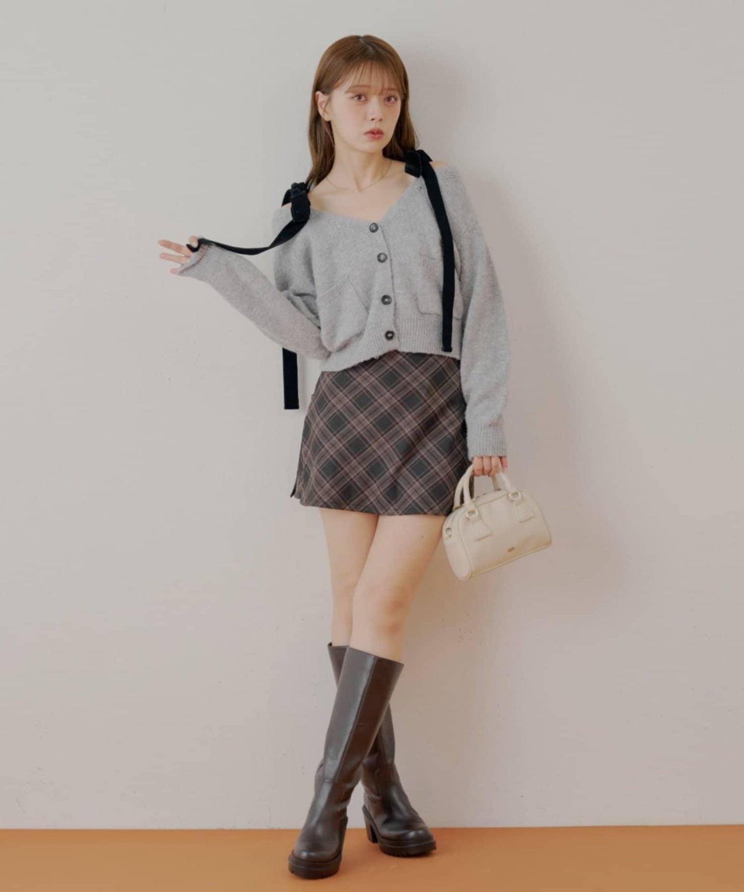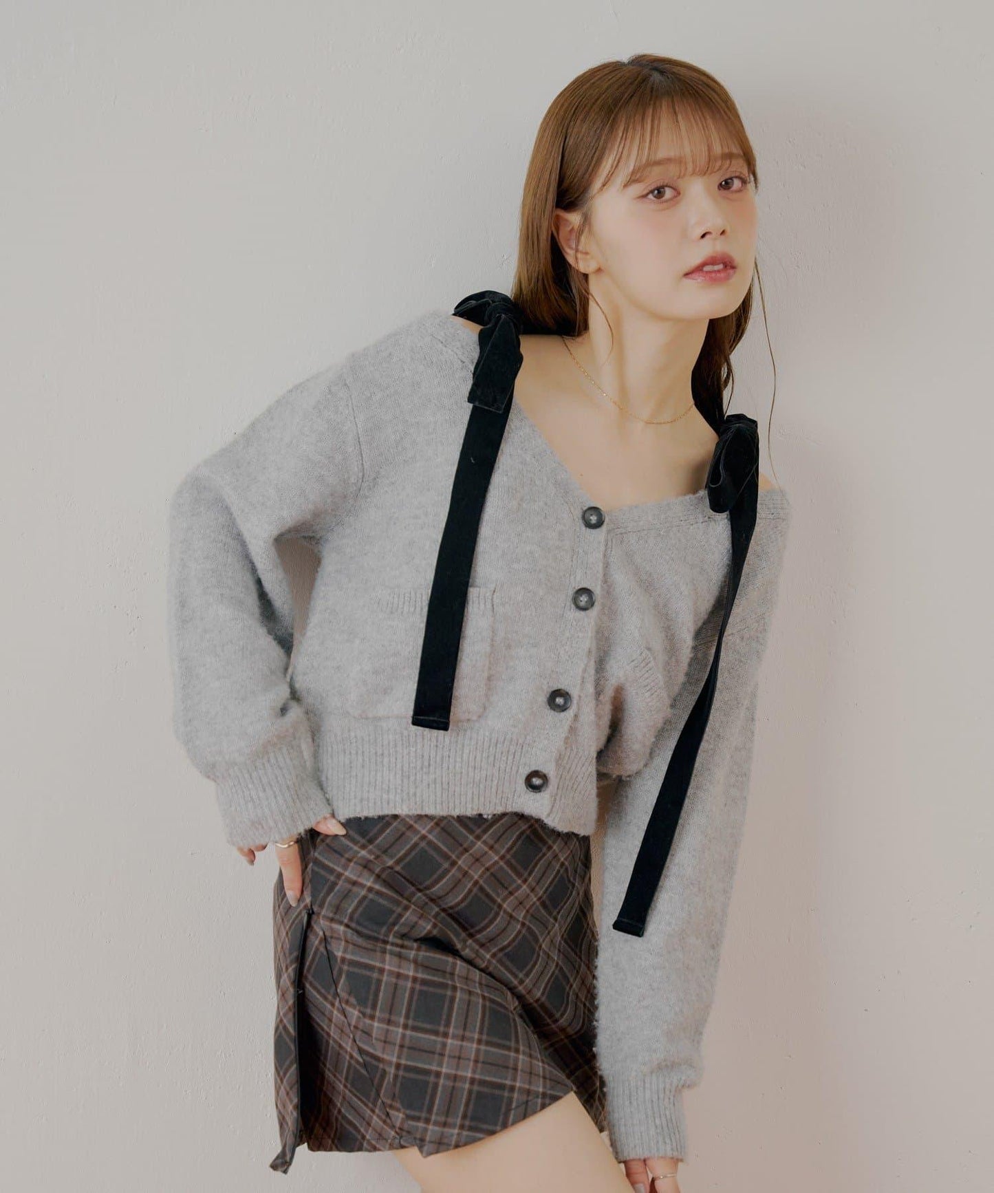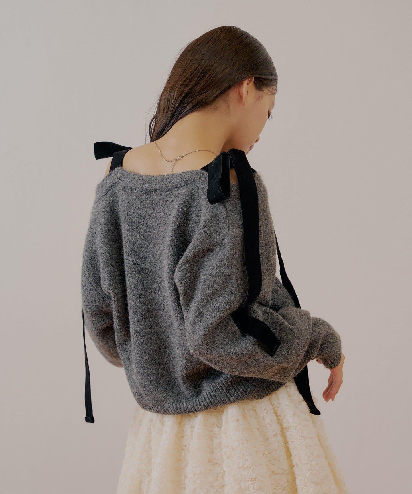 蓬鬆剪裁的開衫,肩部飾有絲帶!
