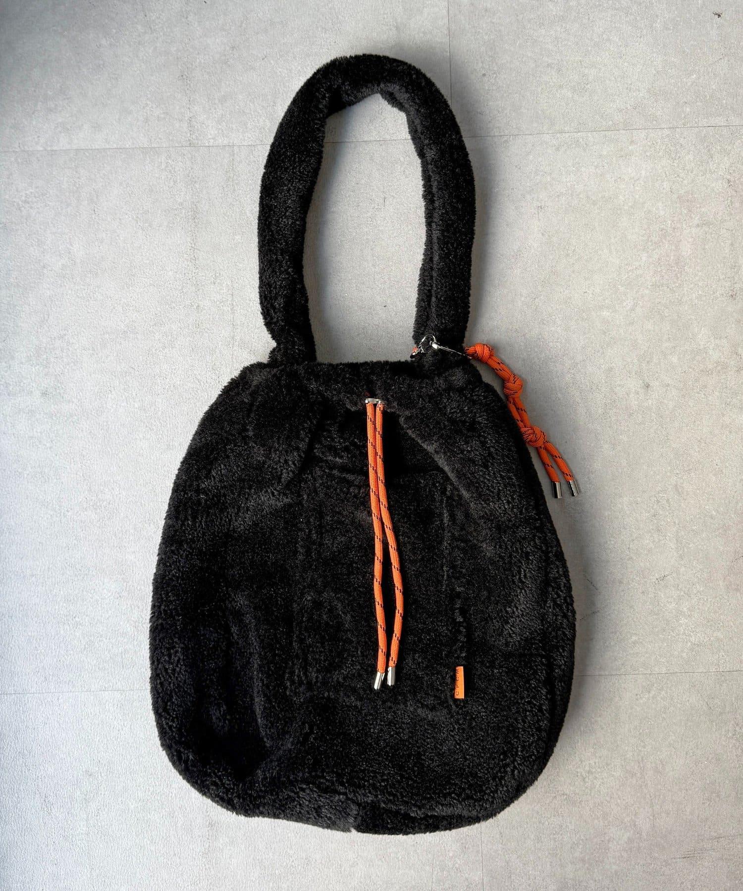 毛茸茸的蟒蛇皮製成的拉繩包,為您的秋冬搭配增添季節感!