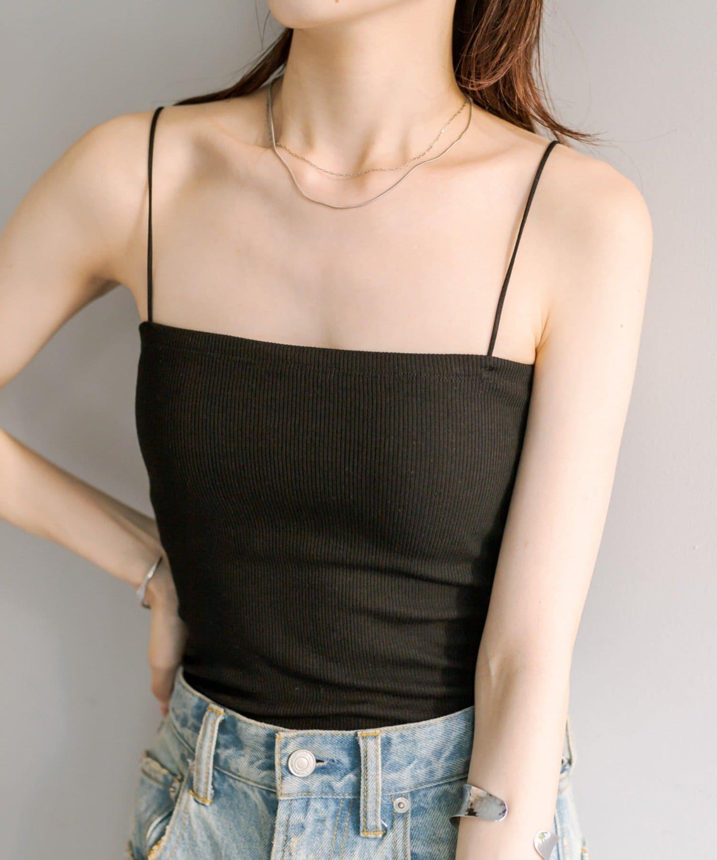 簡潔的裸上衣式設計,肩帶較窄,便於與其他單品搭配!