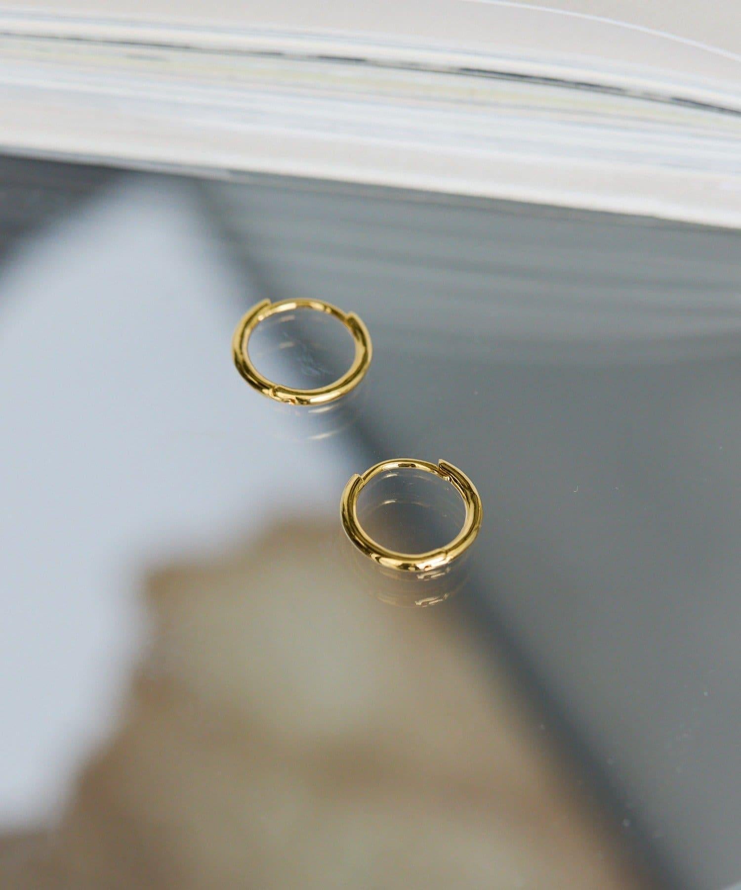環形耳環,鑲嵌一顆圓形天然寶石,帶金屬帽。
