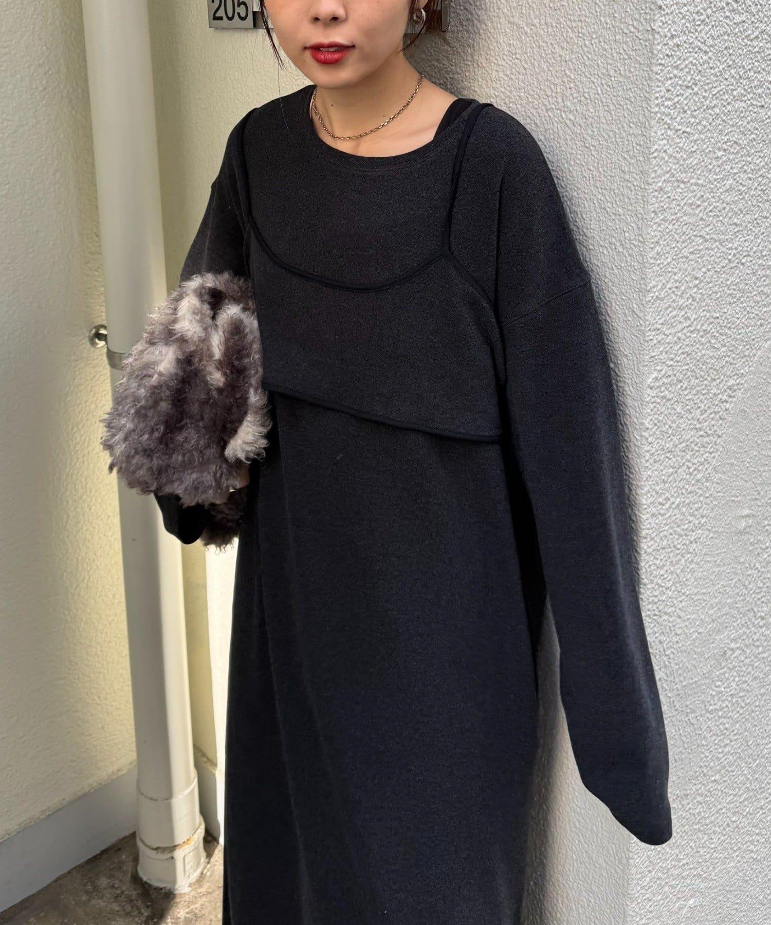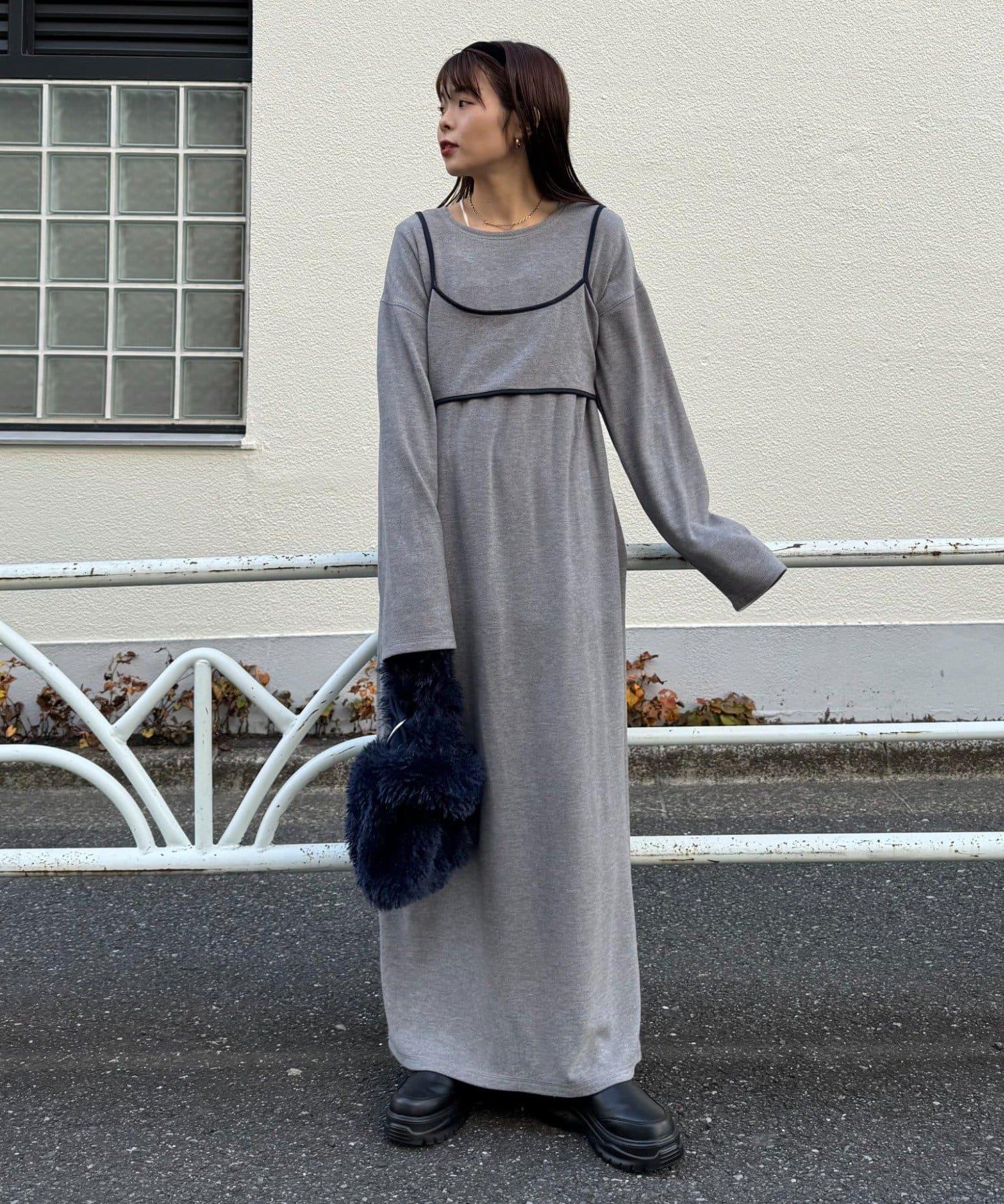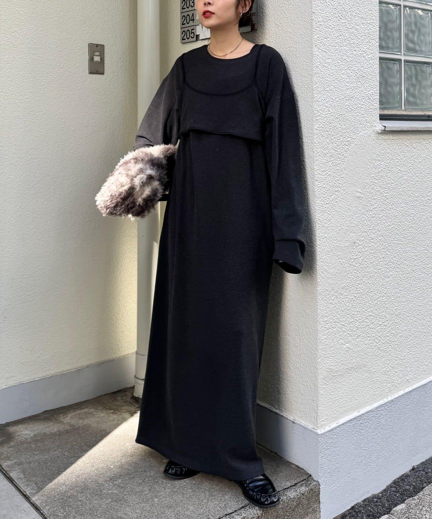 在連衣裙外疊加一件半身裙,打造時髦的外出造型。