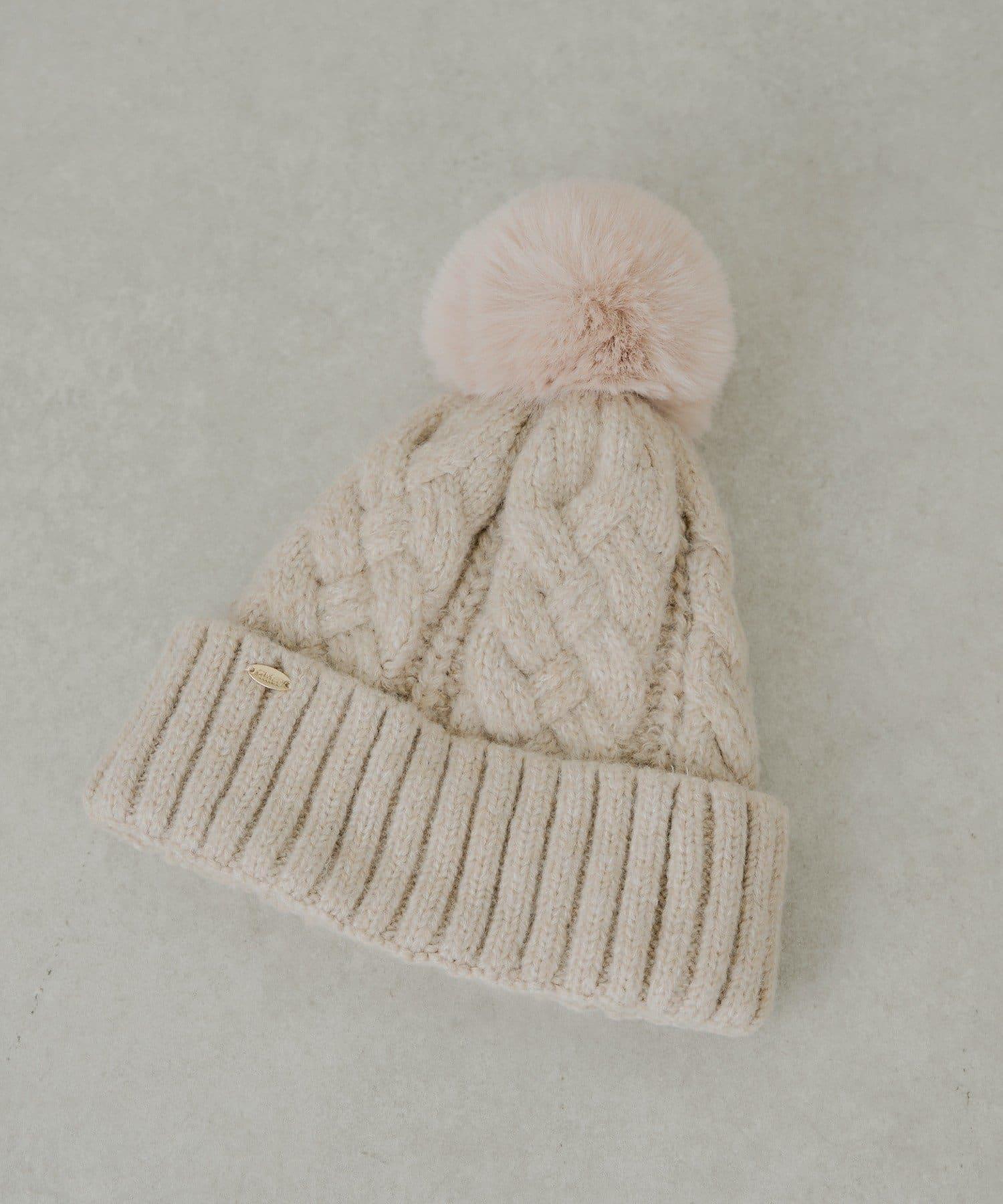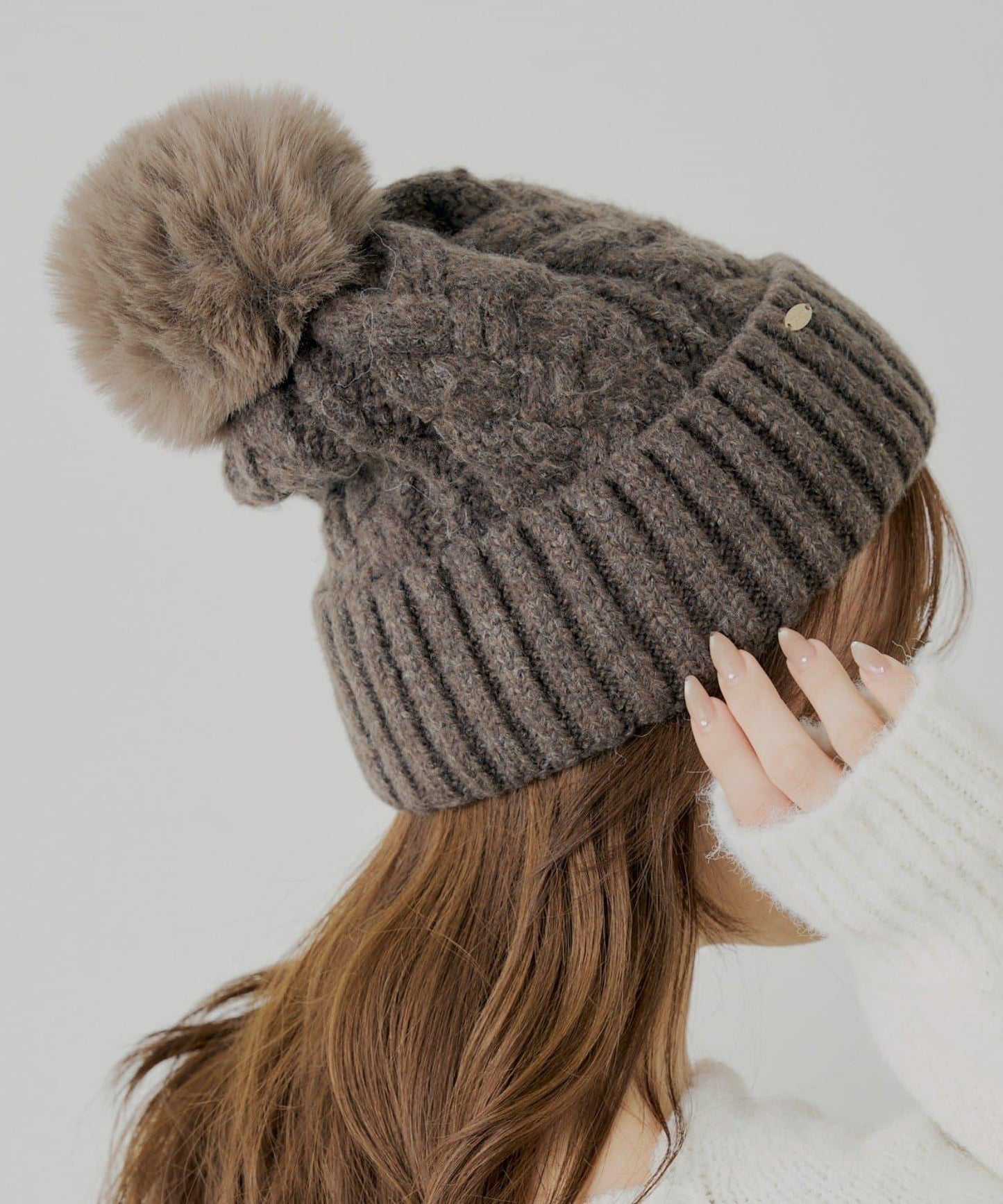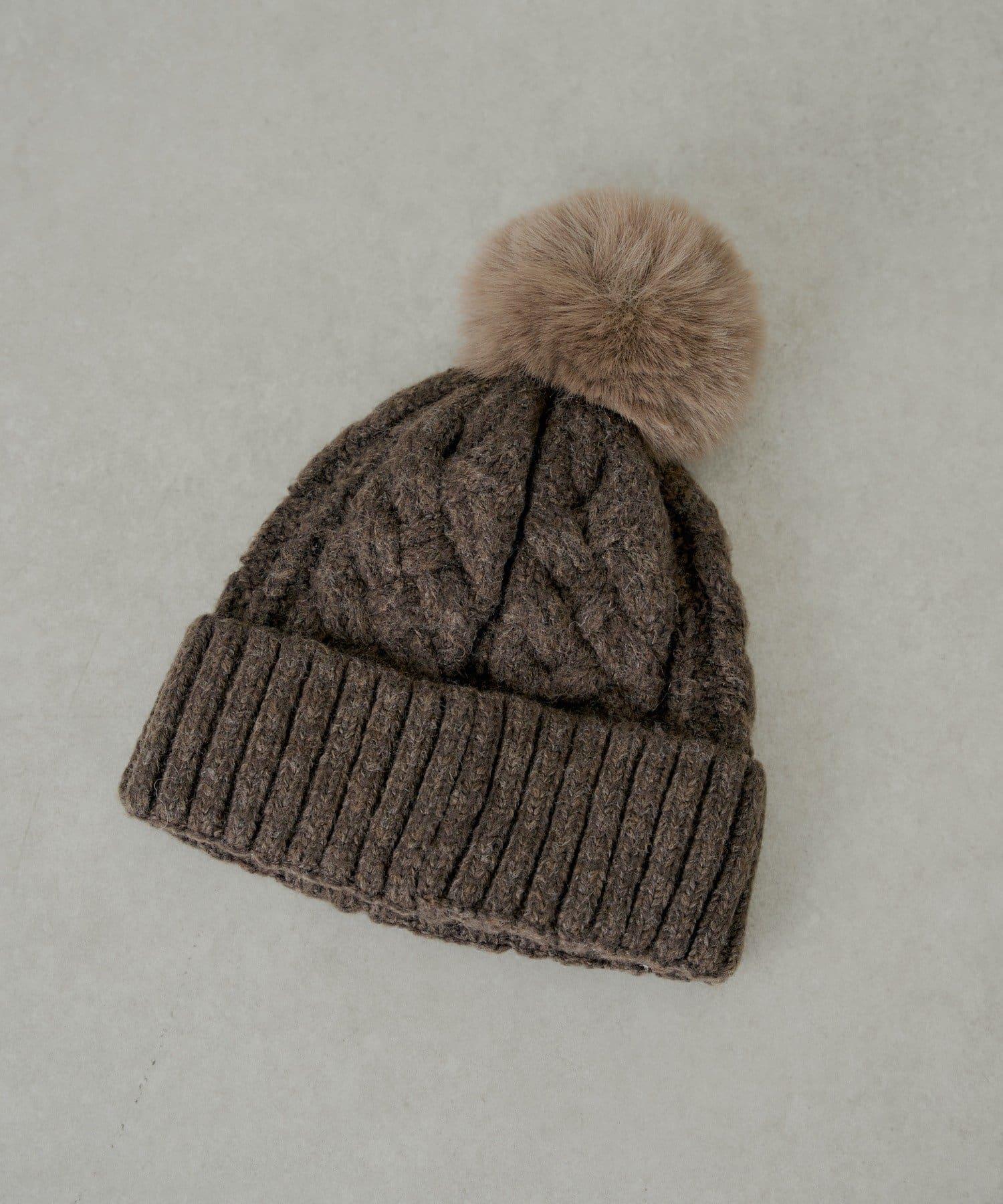 這款電纜針織帽採用柔軟輕便的電纜針織面料製成。