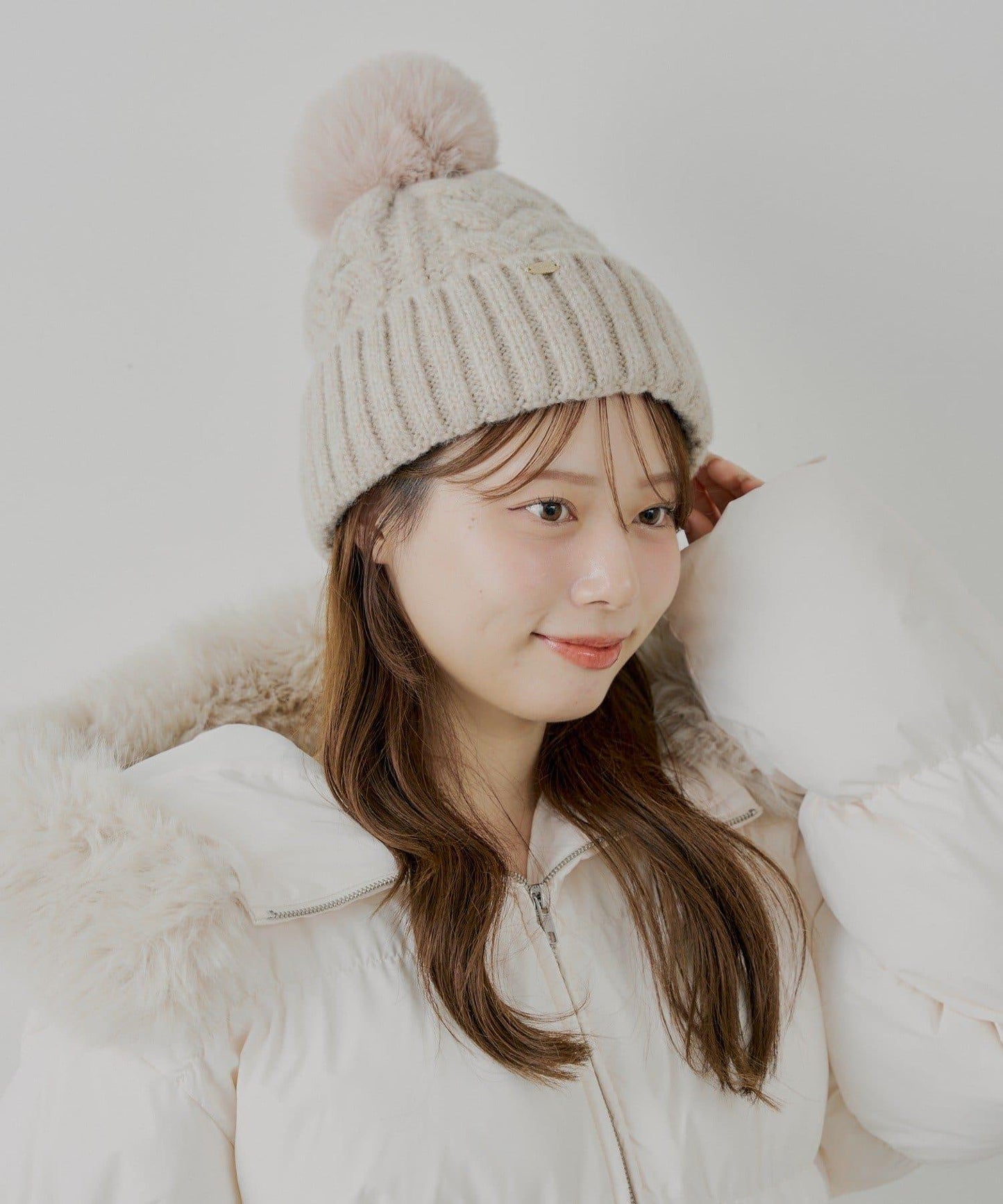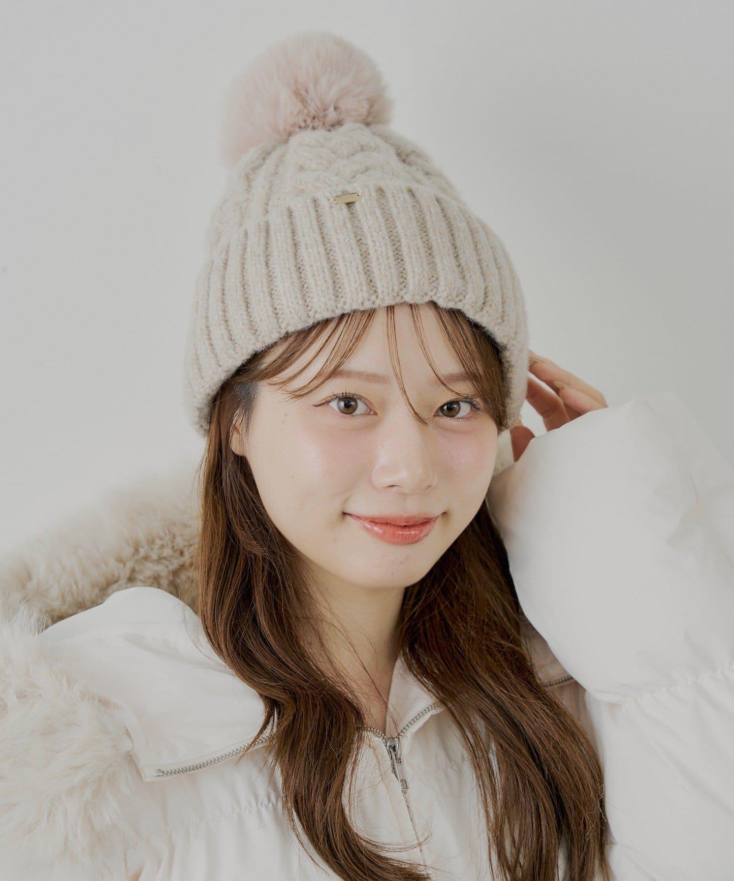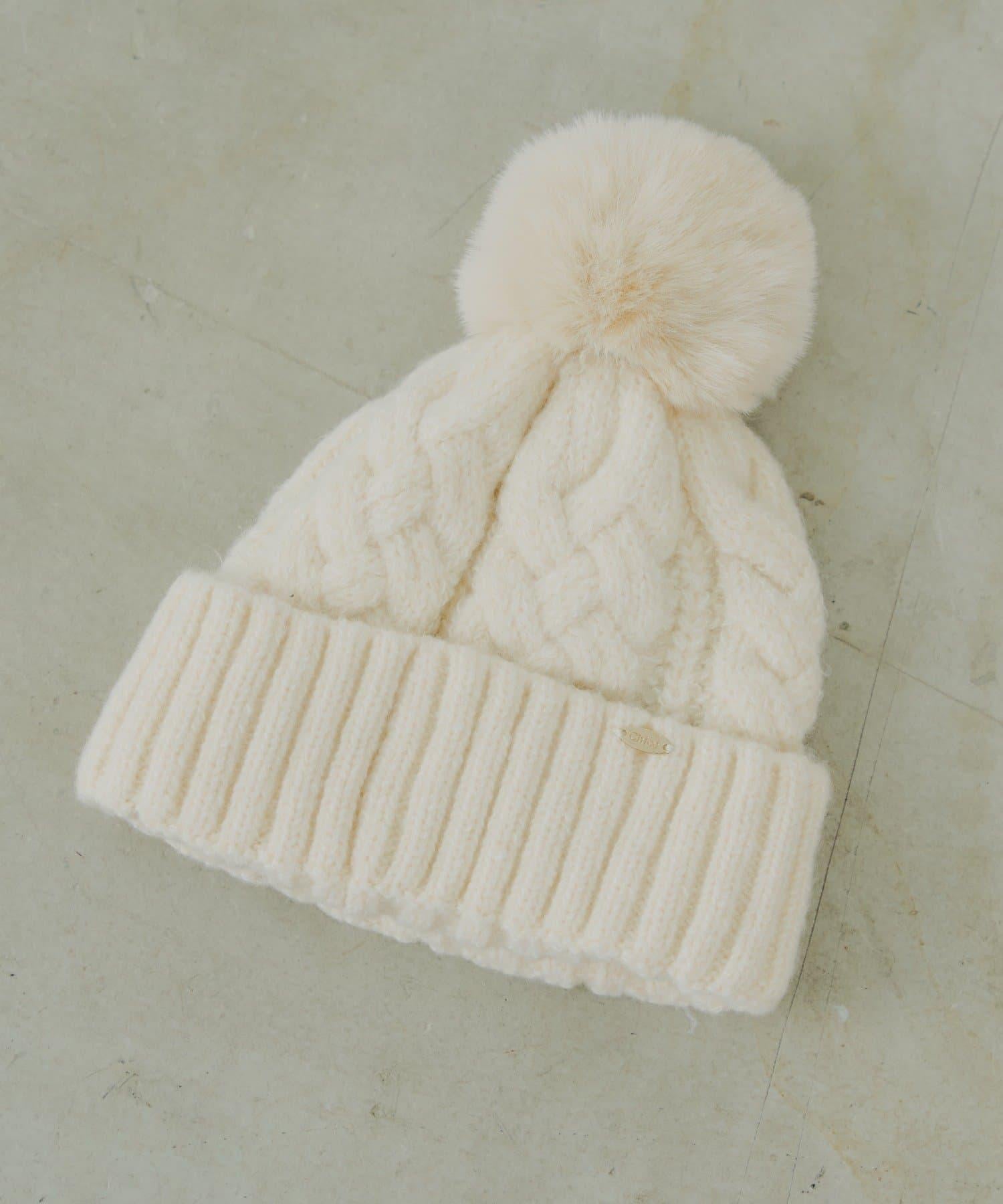 這款電纜針織帽採用柔軟輕便的電纜針織面料製成。