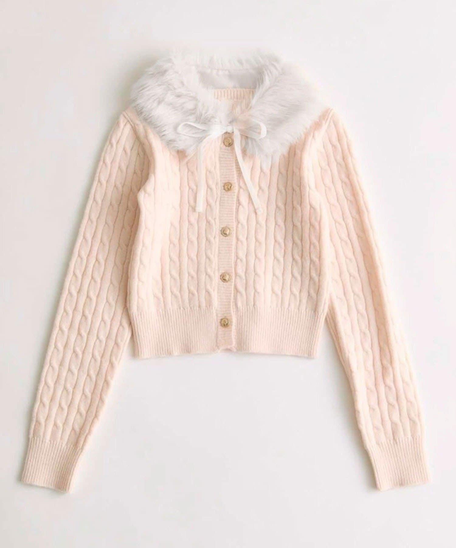 帶毛絨領針織開衫