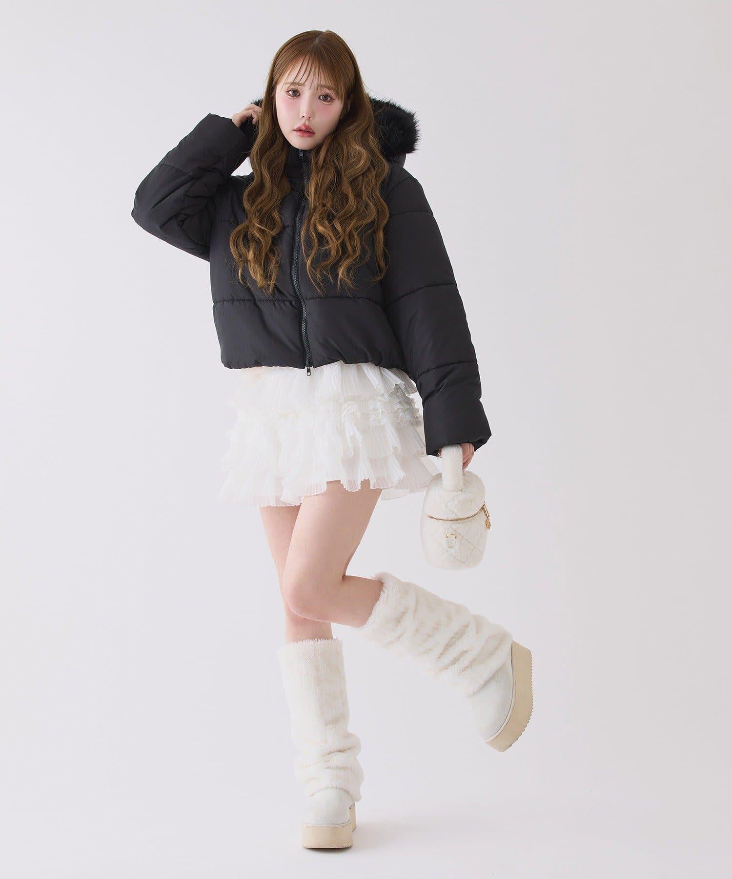 今年非常流行的短款仿羽絨服,長度緊湊。
