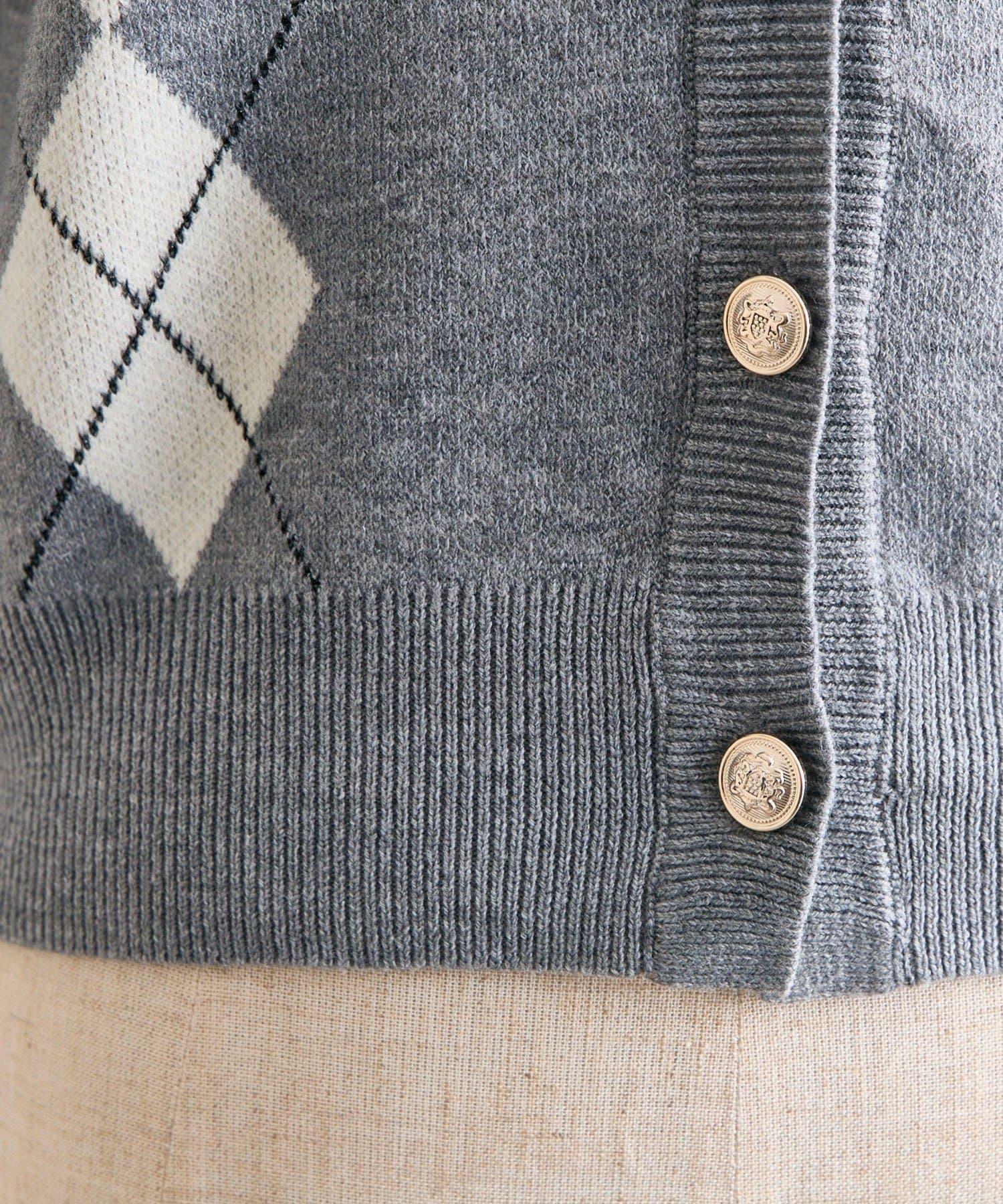 針織衫上有金色紐扣和閃亮的絲線,看起來很高大上。