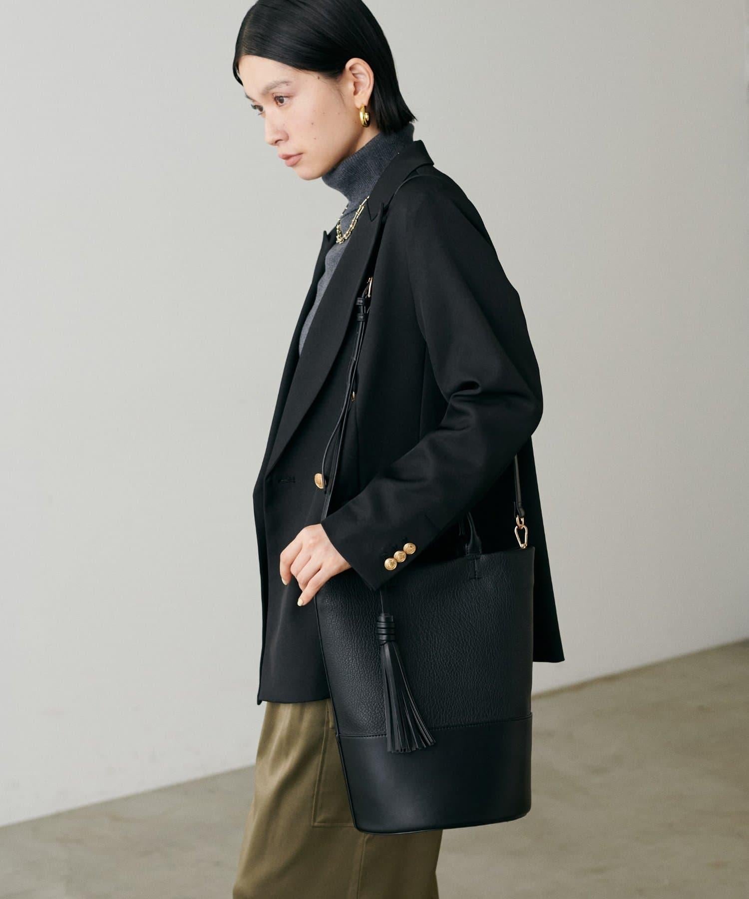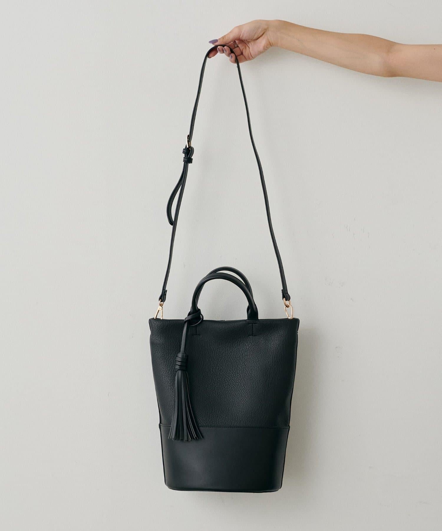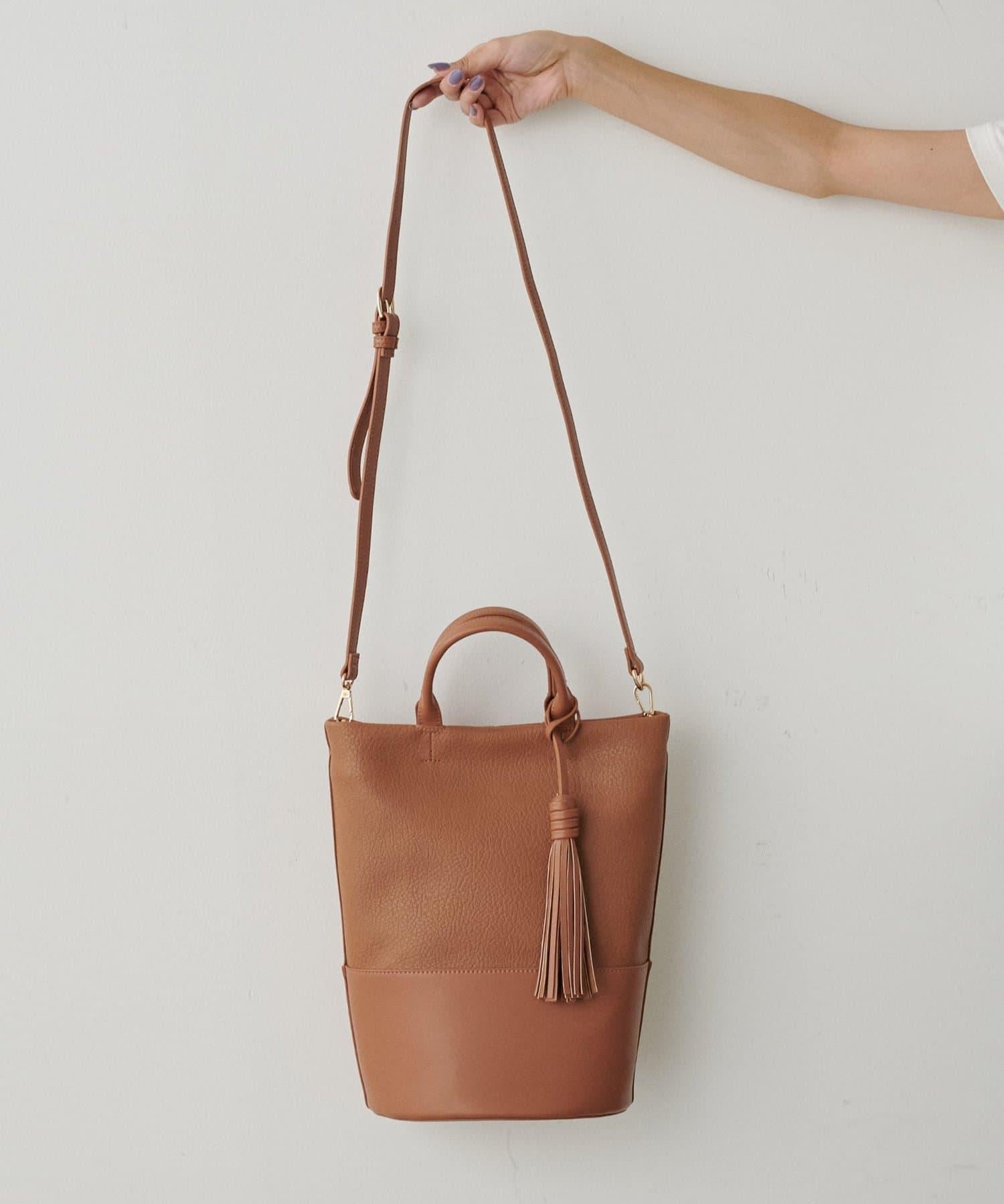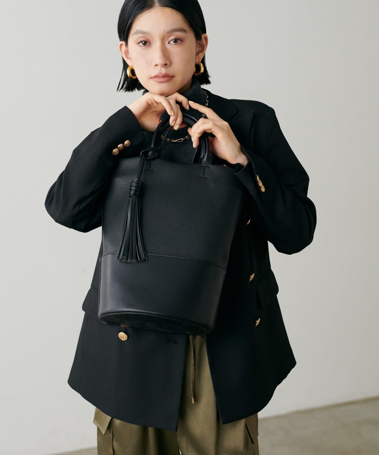 時尚的水桶形雙向包,配以流蘇裝飾。
