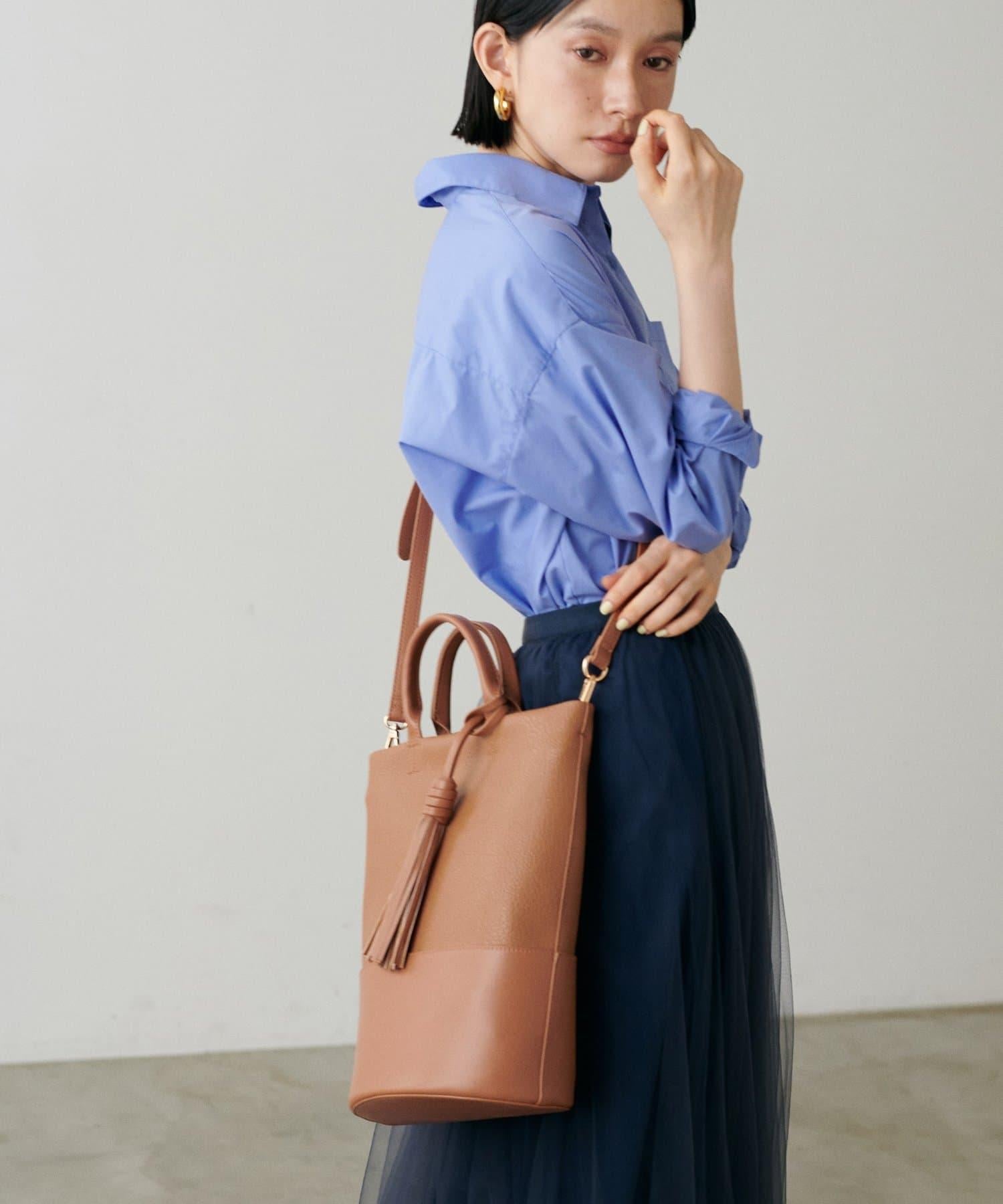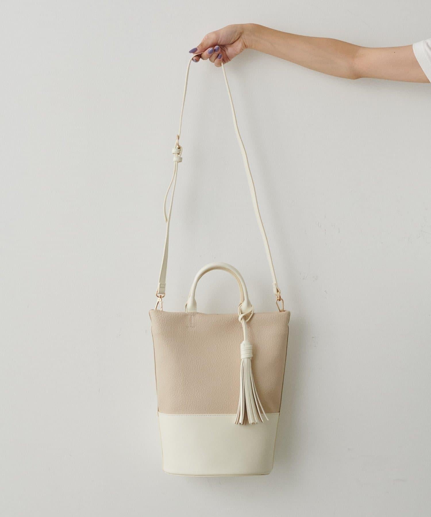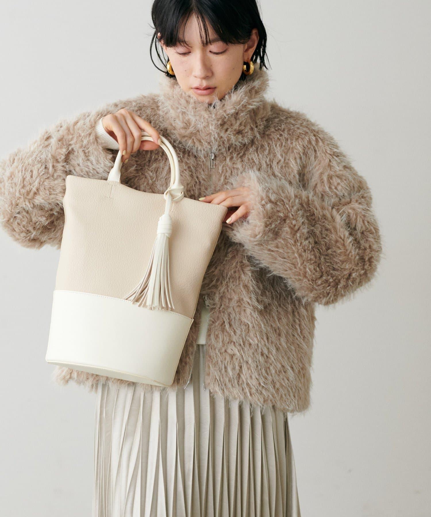 時尚的水桶形雙向包,配以流蘇裝飾。