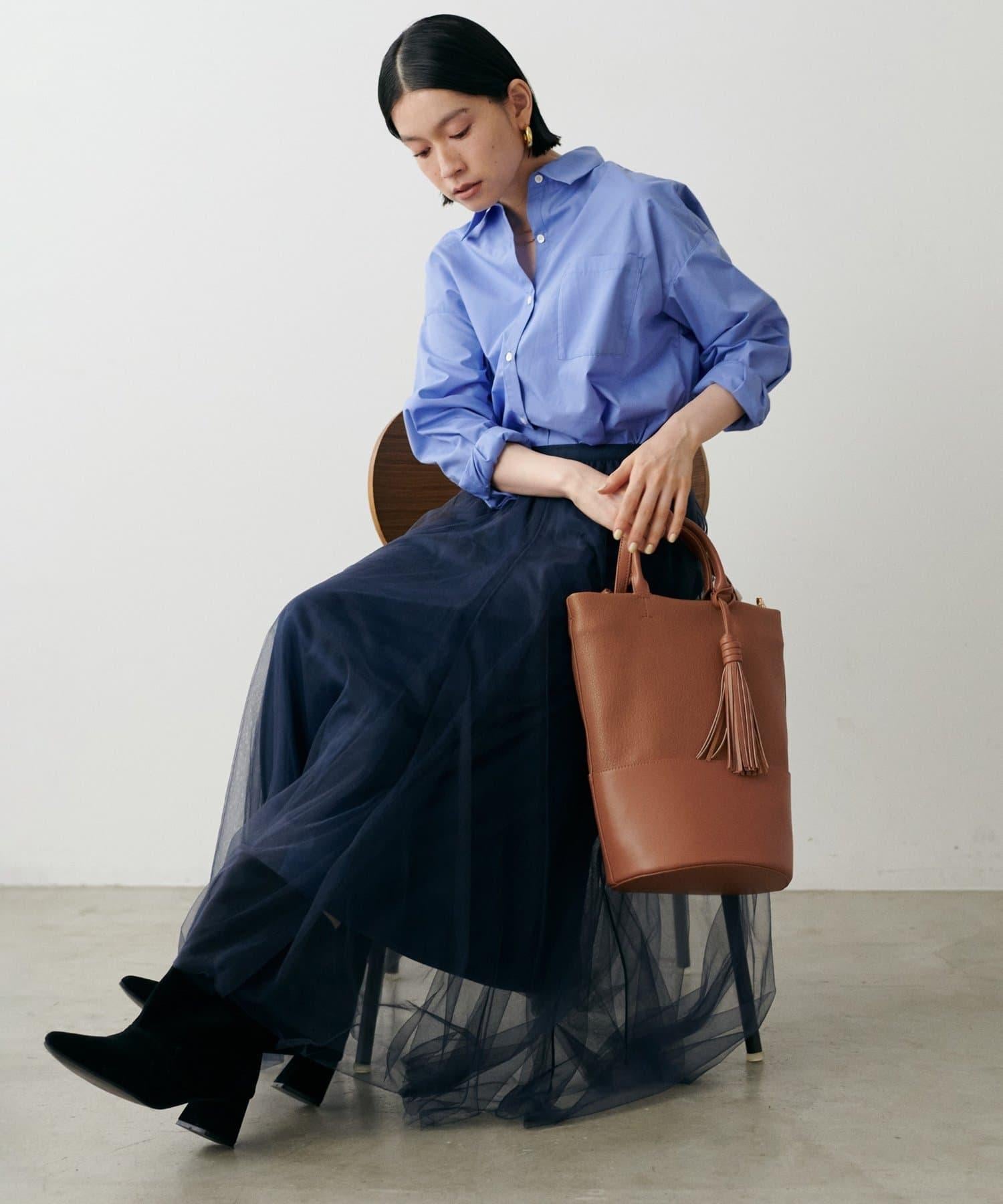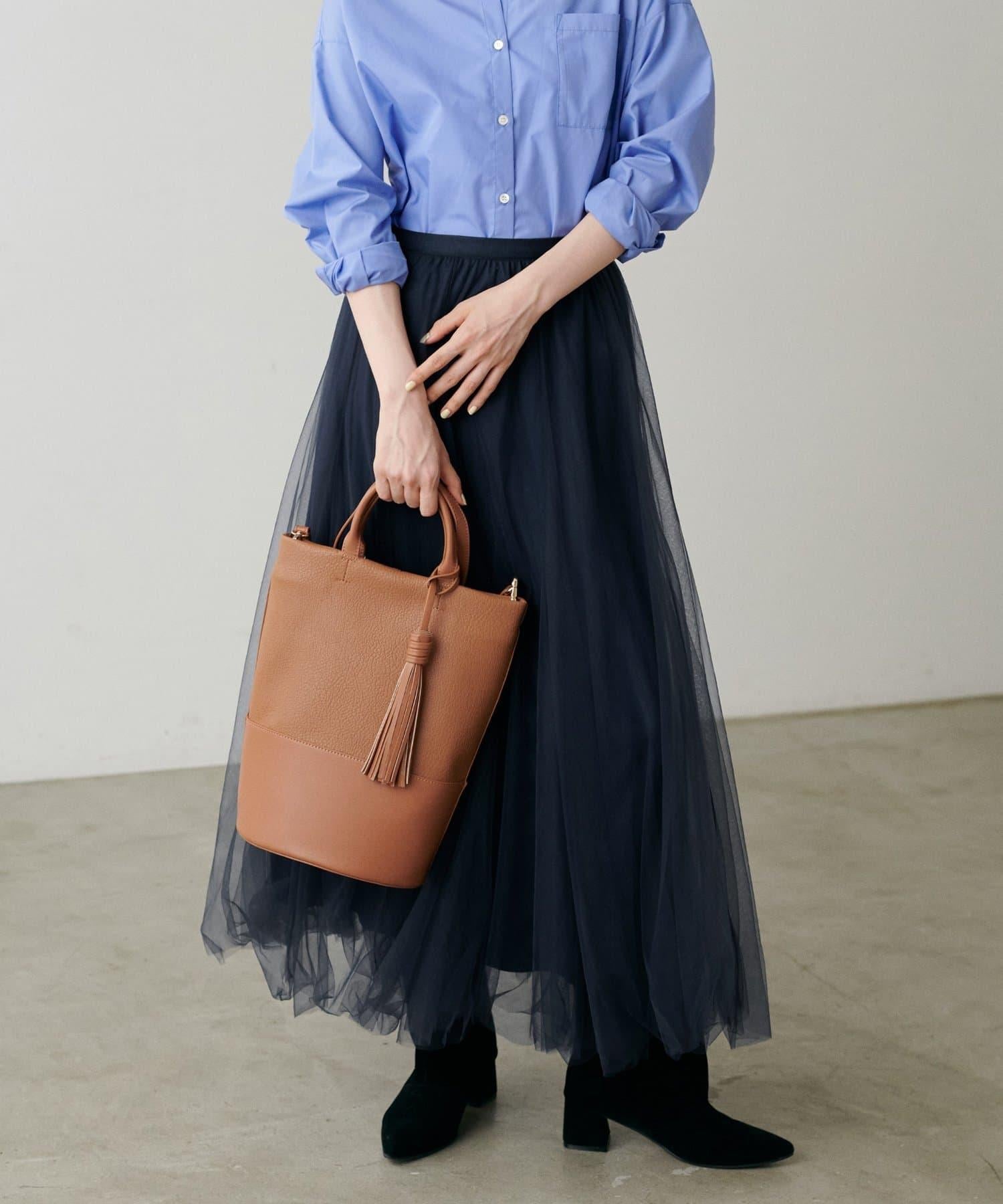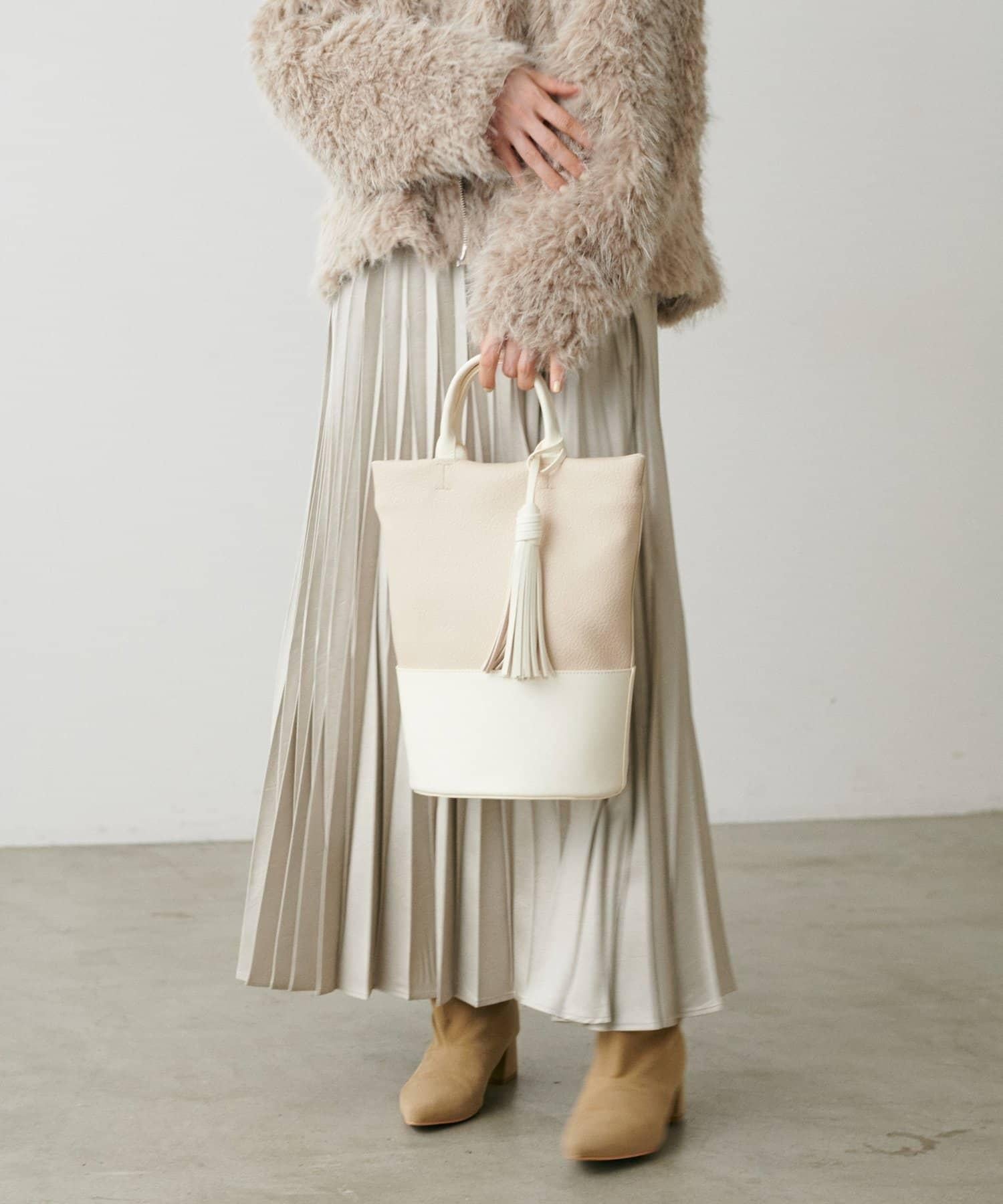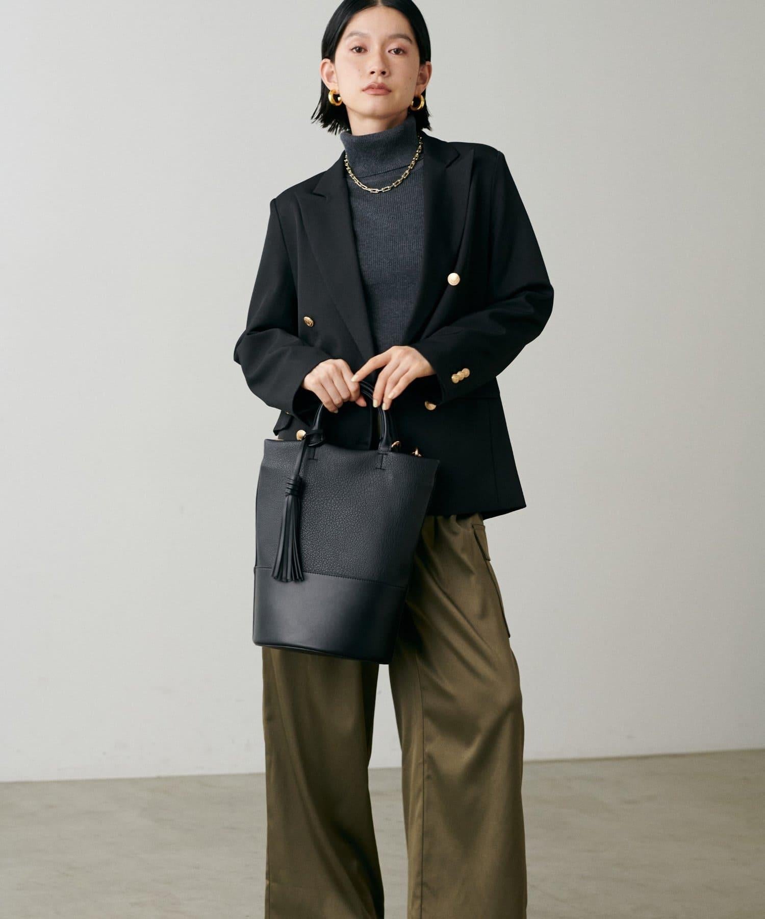 時尚的水桶形雙向包,配以流蘇裝飾。