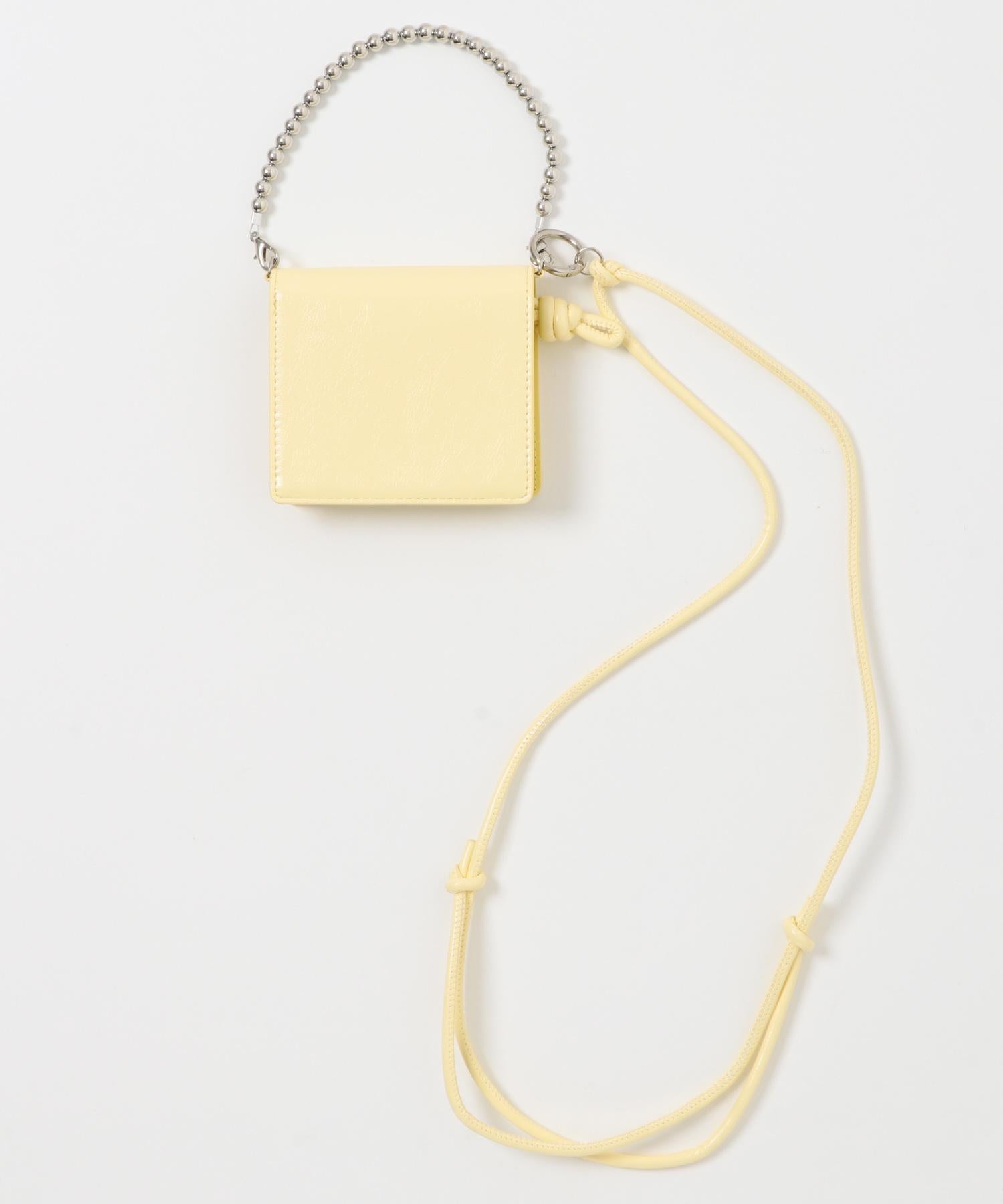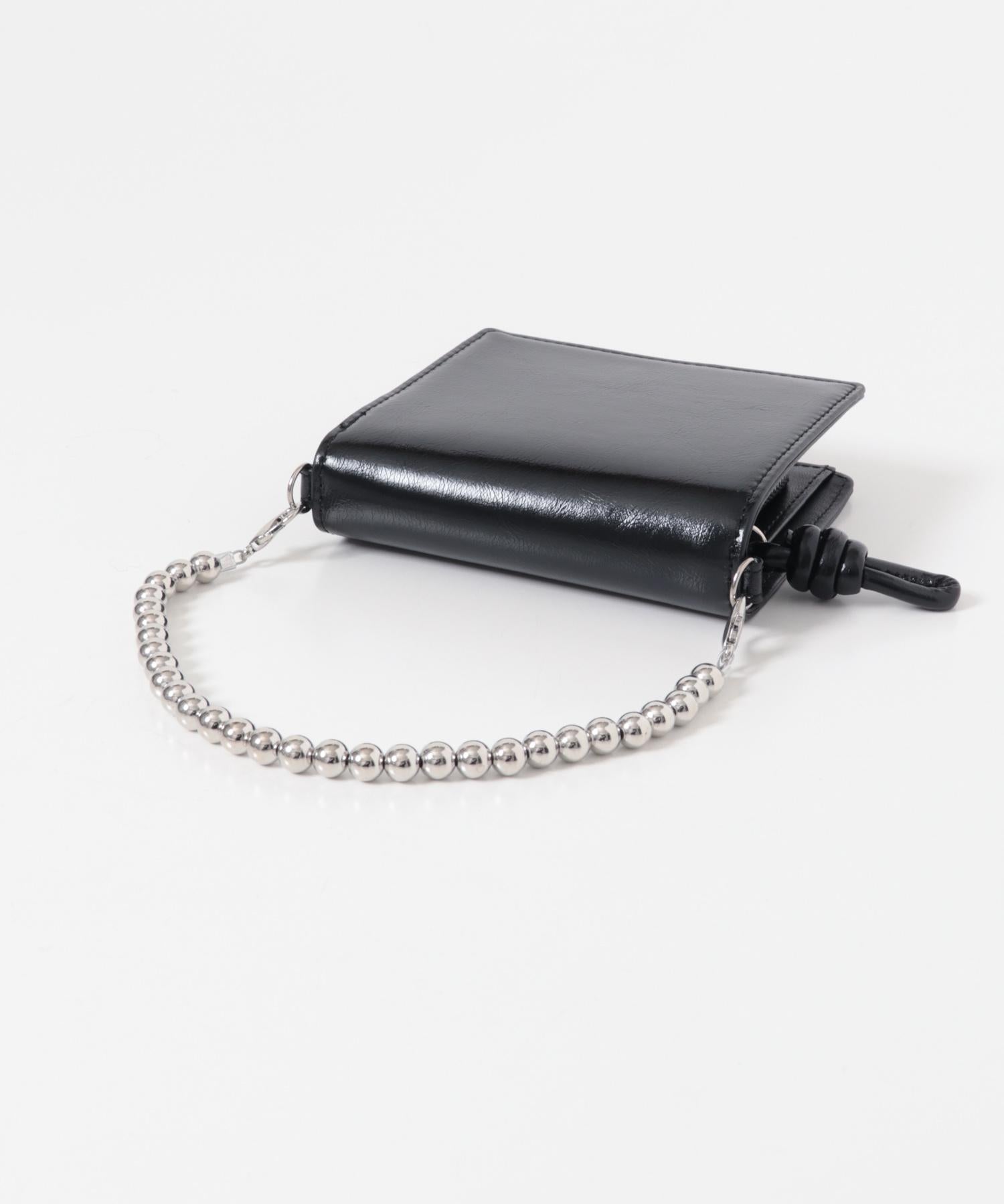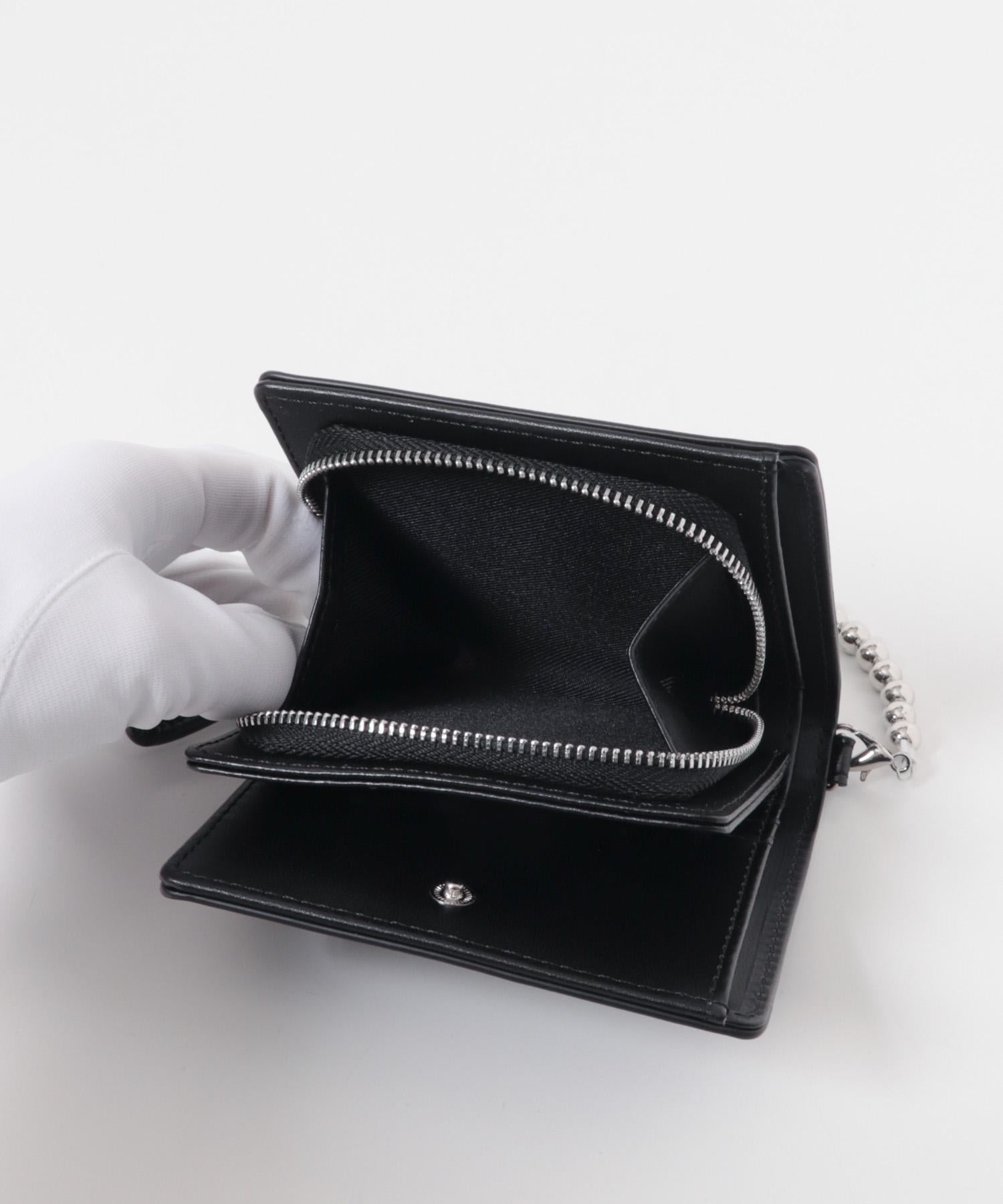 這是一種帶有球形部分和肩部的錢包。肩部連接到一個 marukan 上,可以取下並連接到皮帶環或包上。球形部分可以連接到錢包兩端的 D 形罐上,用手柄固定錢包。