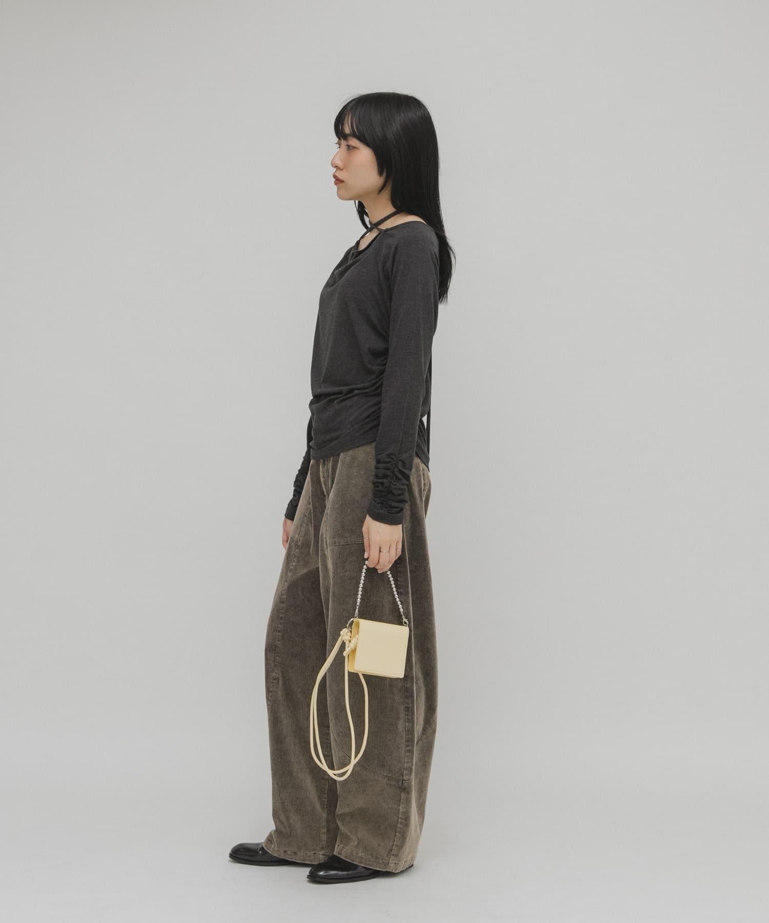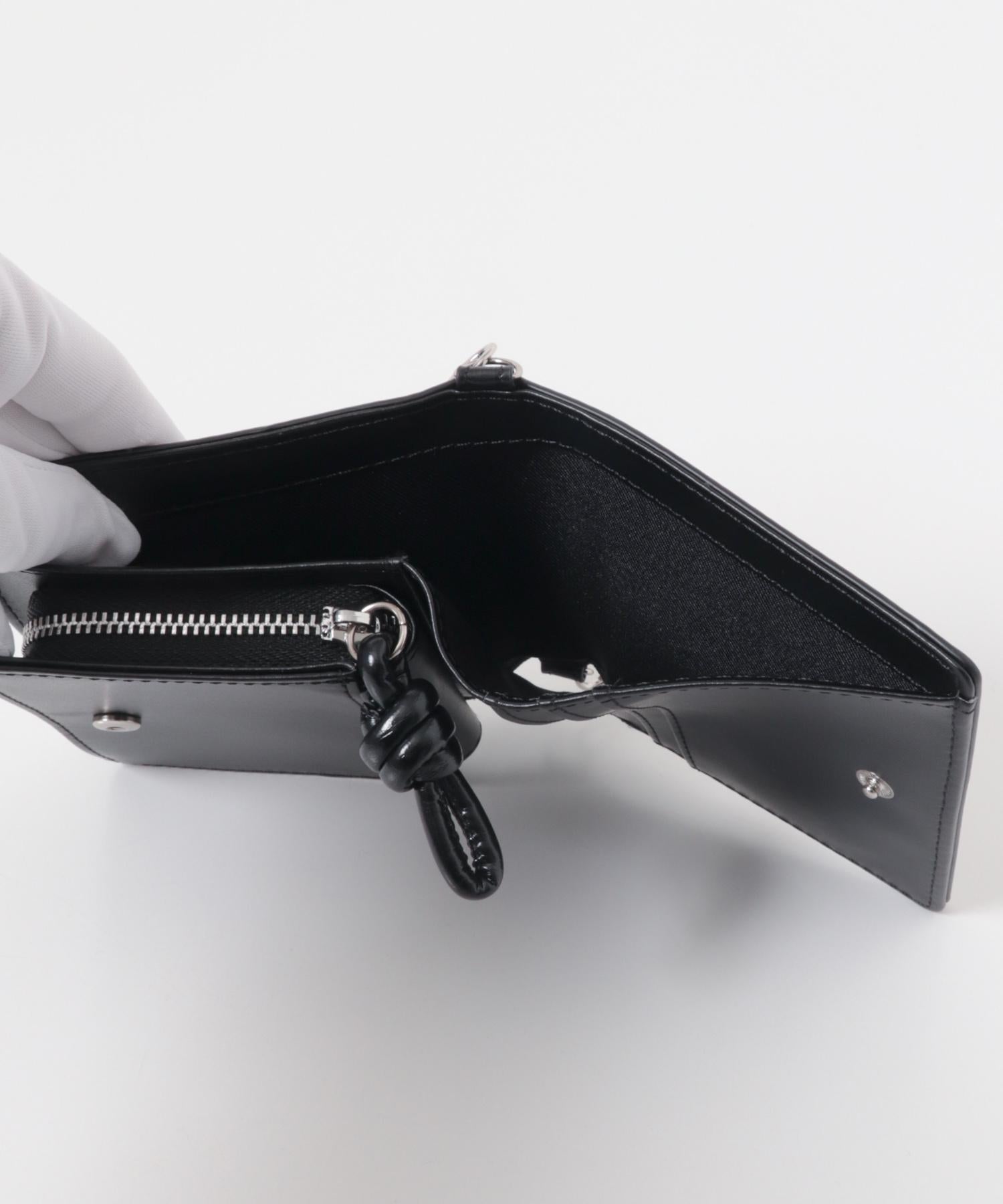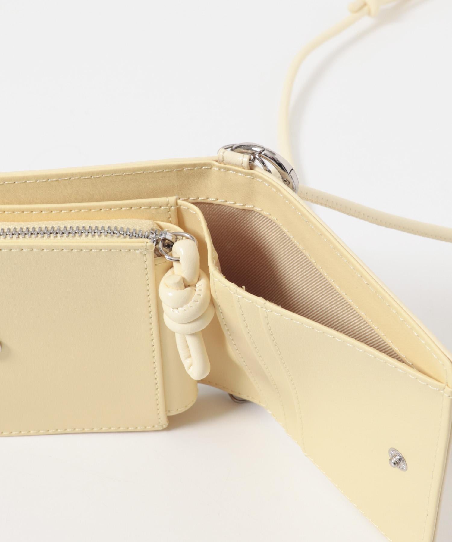 這是一種帶有球形部分和肩部的錢包。肩部連接到一個 marukan 上,可以取下並連接到皮帶環或包上。球形部分可以連接到錢包兩端的 D 形罐上,用手柄固定錢包。