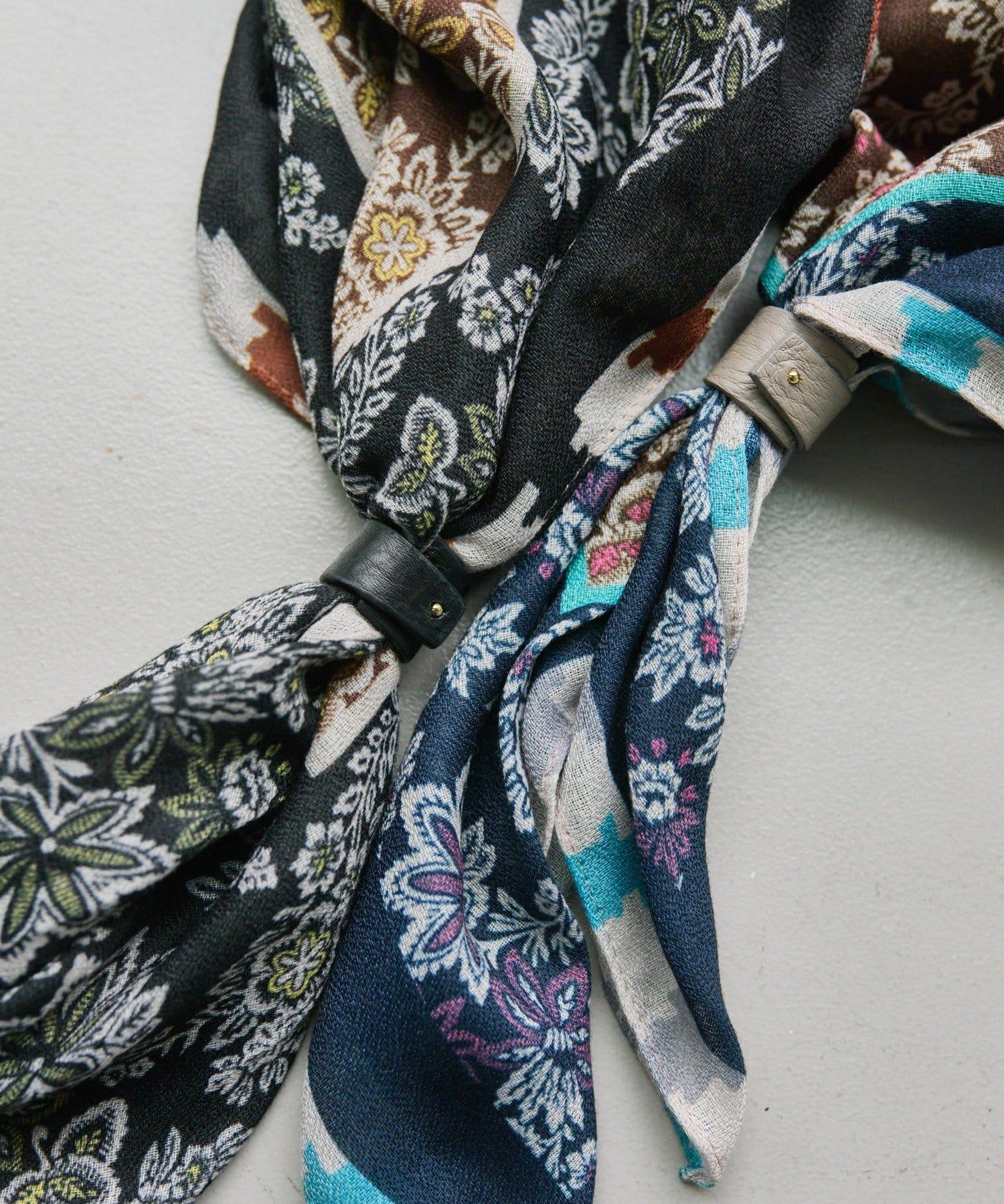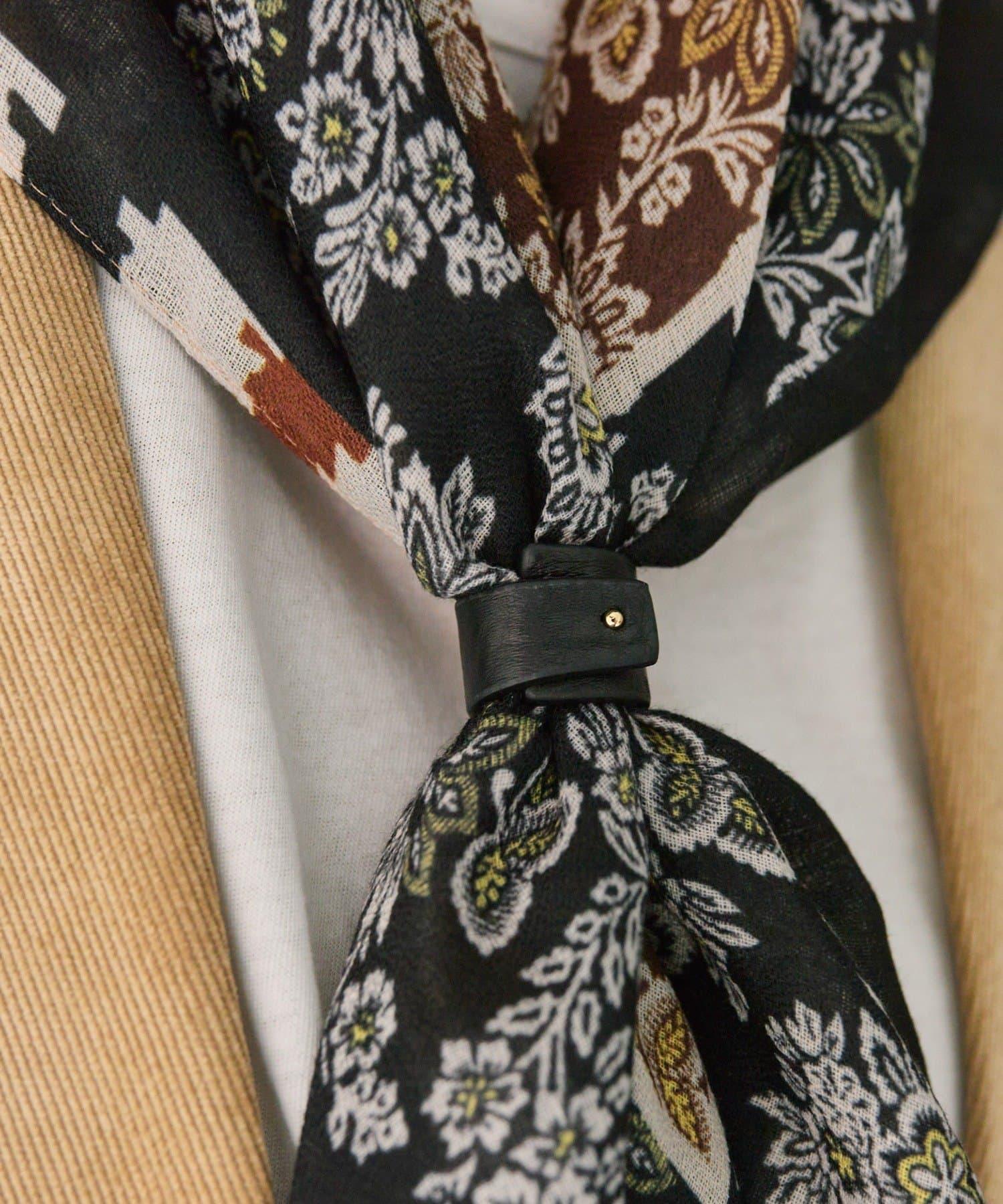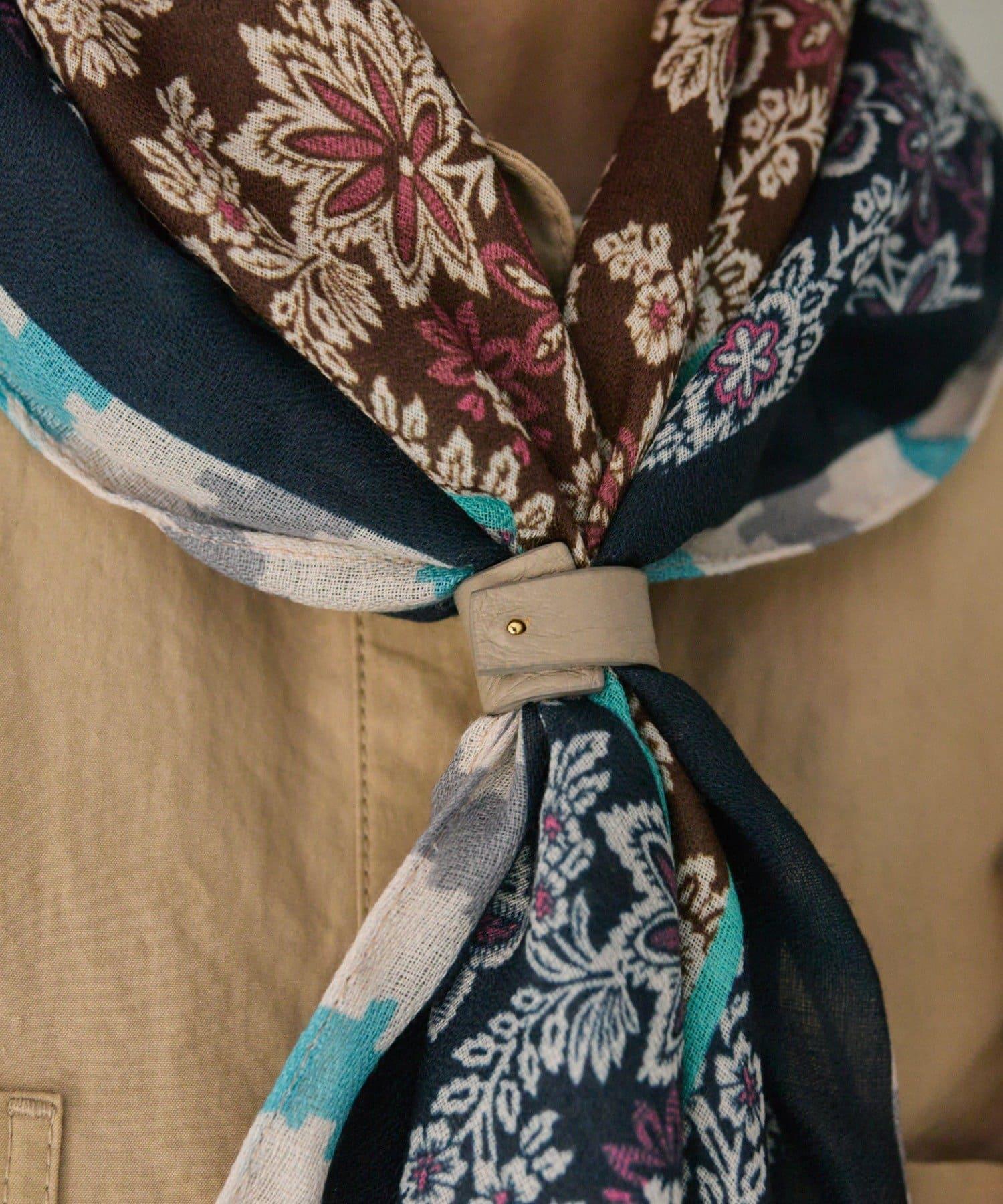特別值得一提的是用於固定圍巾的皮環。它也可以取下作為戒指使用。