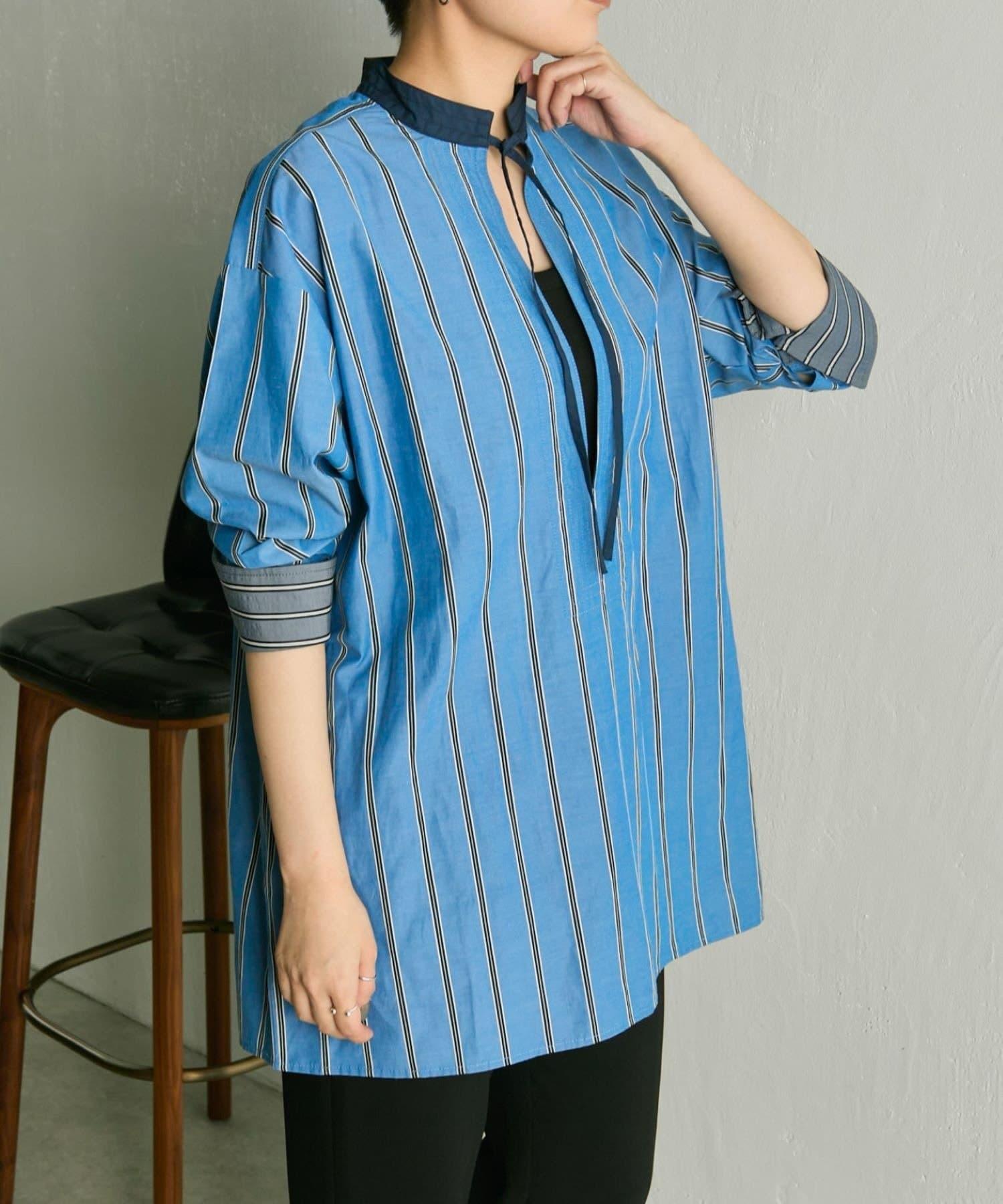 帶紐扣條紋襯衫【SUM1 STYLE】