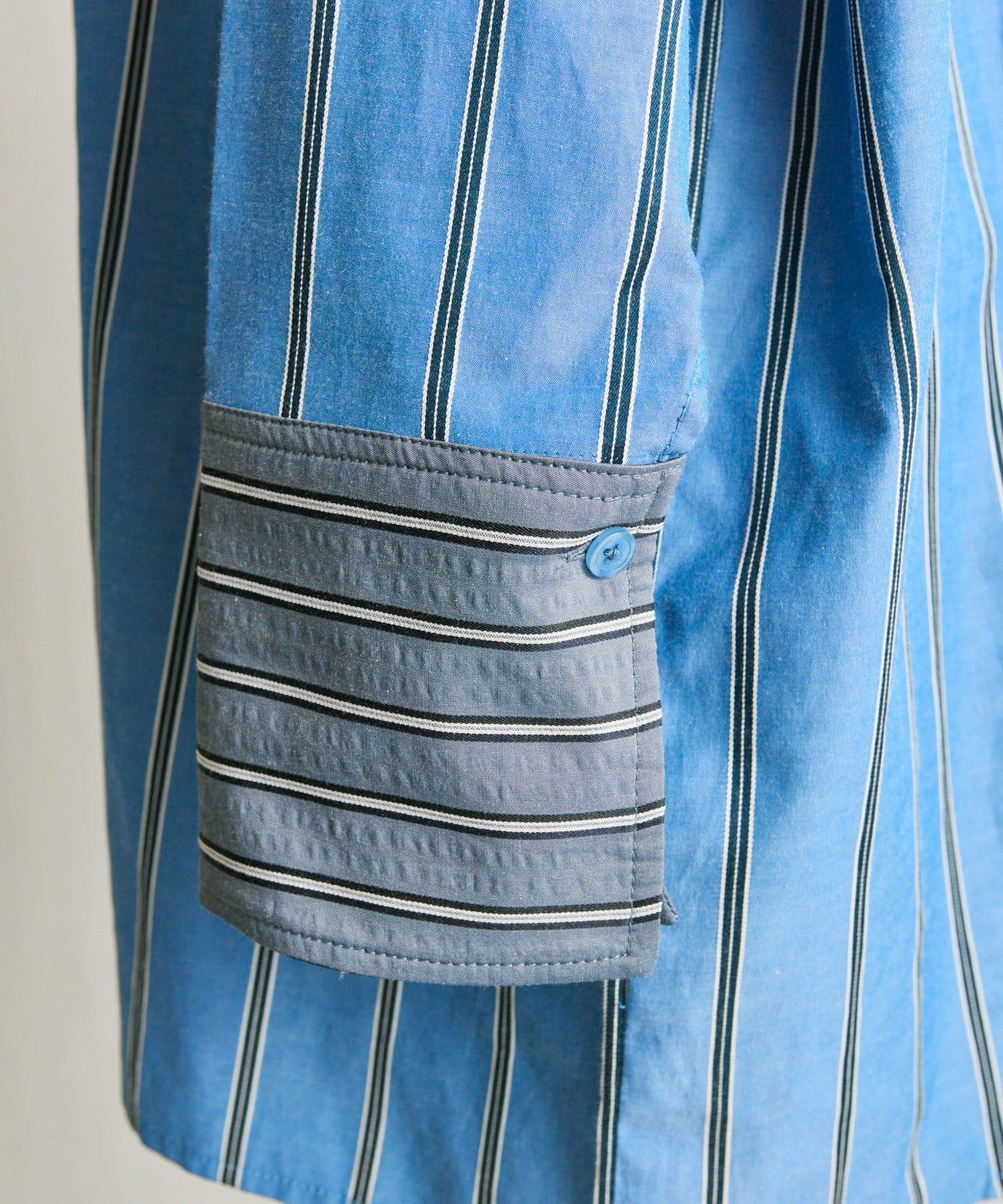 這款條紋襯衫在衣身和袖口處採用了不同的條紋面料。