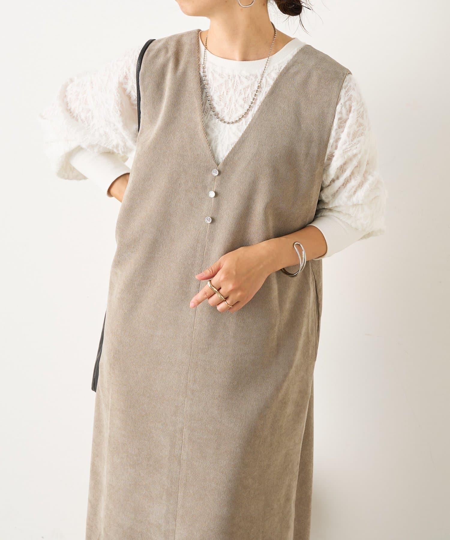 一款可愛、女性化的毛衣短裙,胸前有紐扣。