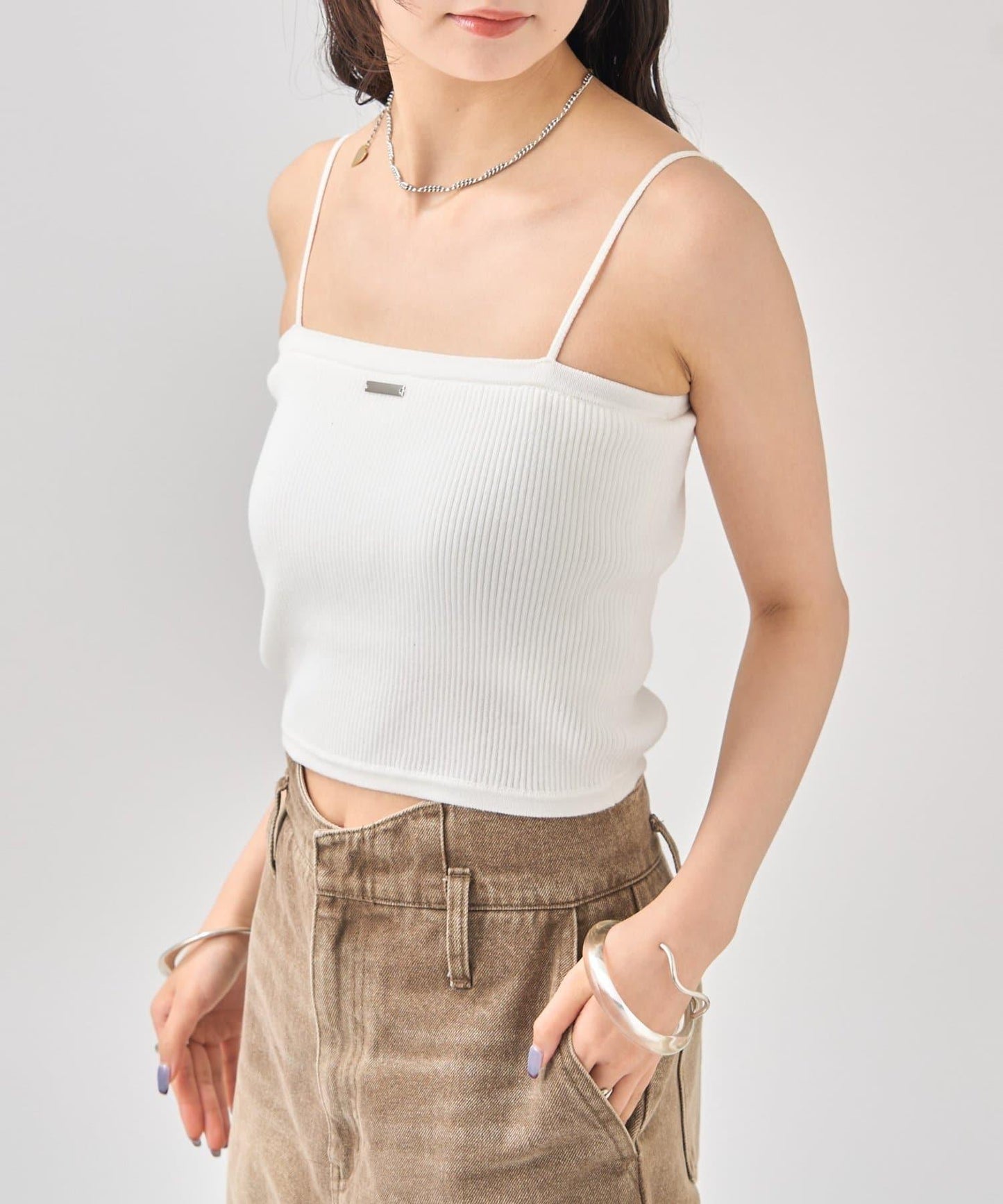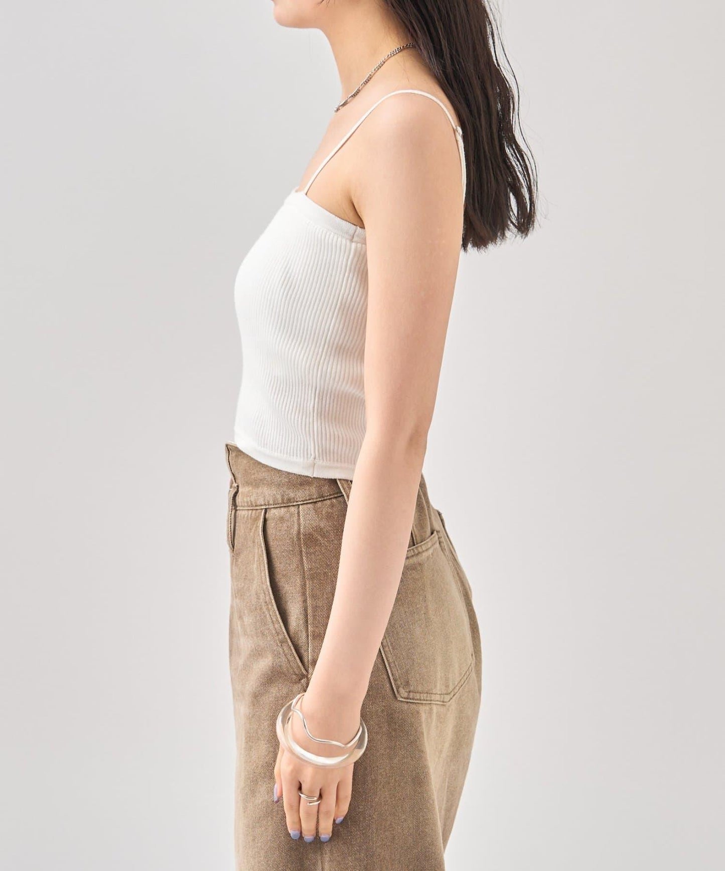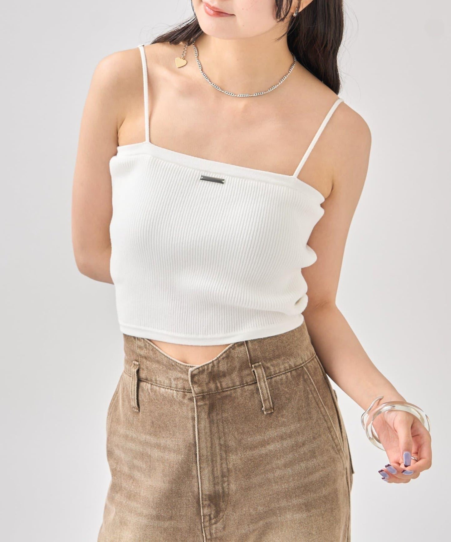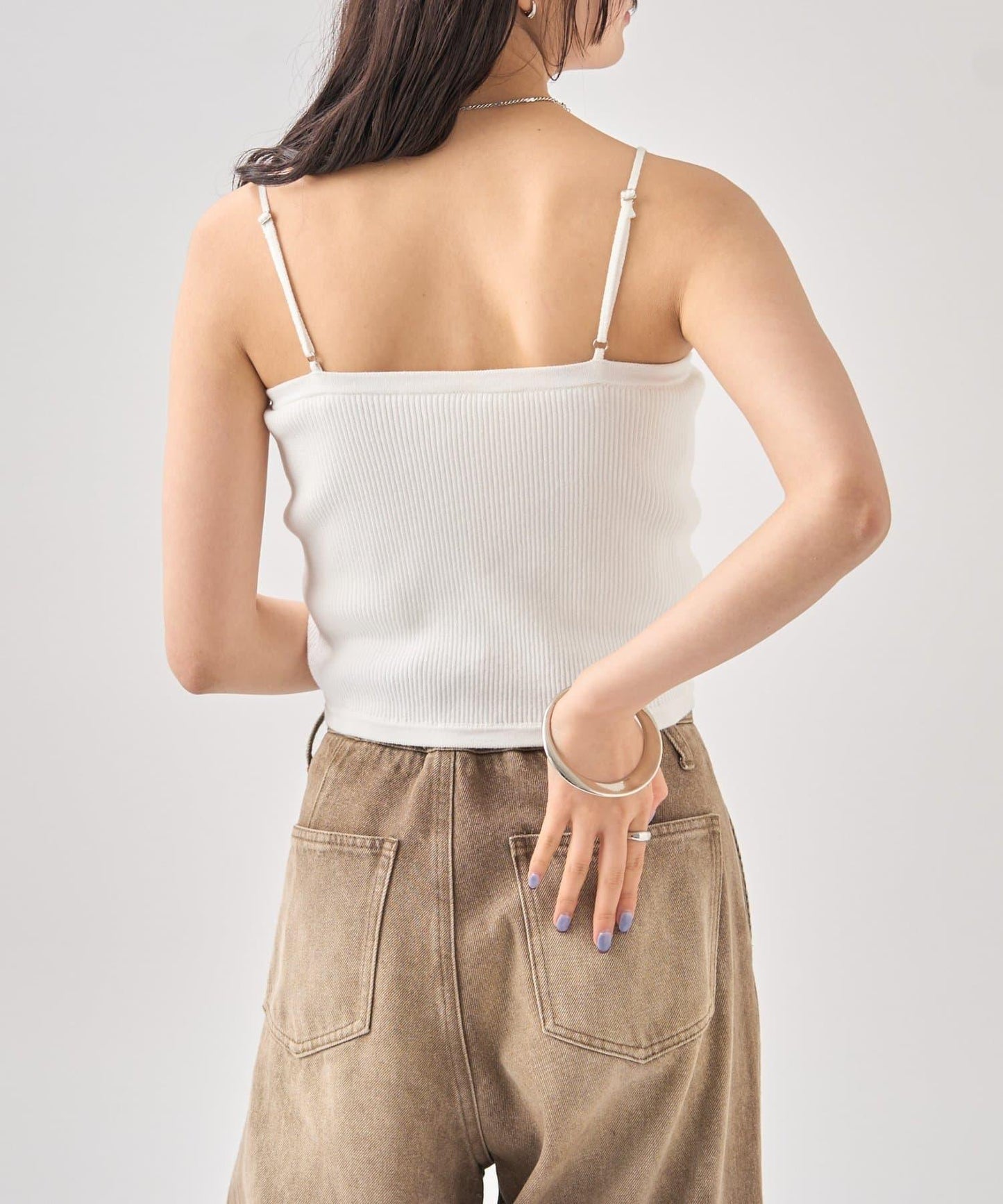 吊帶衫也適度地露出了肩部,因此是給人頸部乾淨印象的單品!