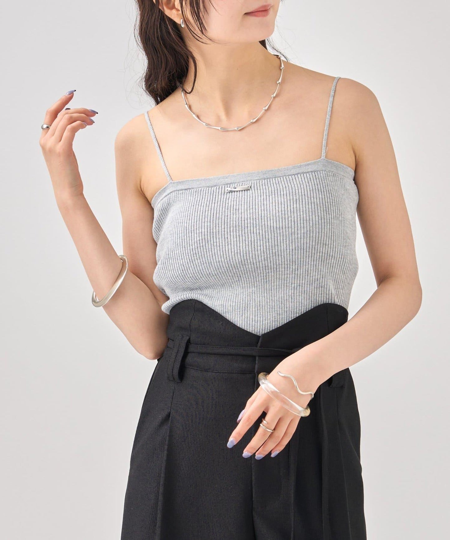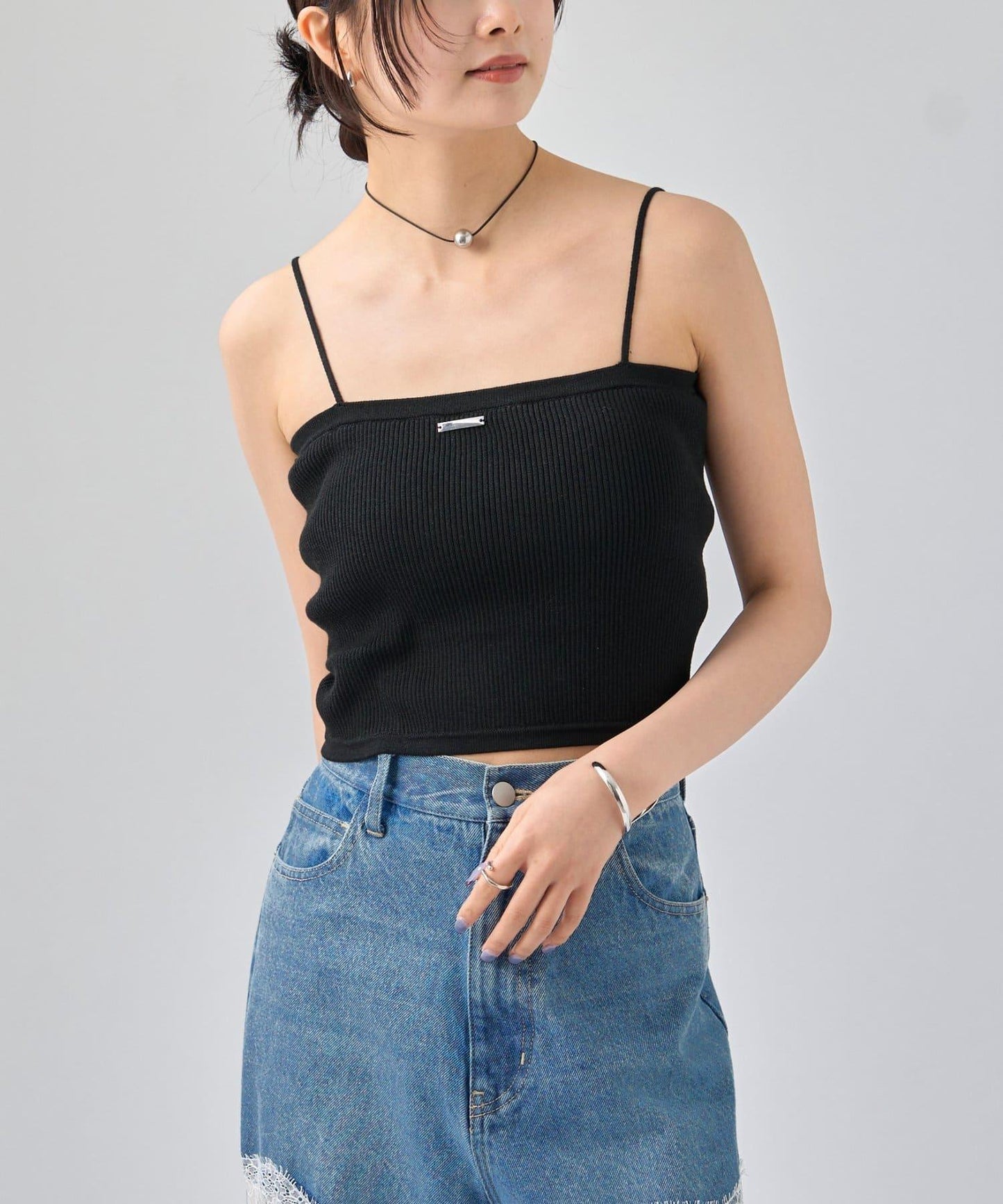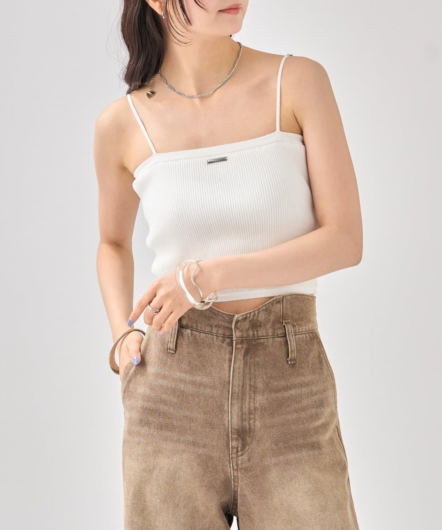 吊帶衫也適度地露出了肩部,因此是給人頸部乾淨印象的單品!