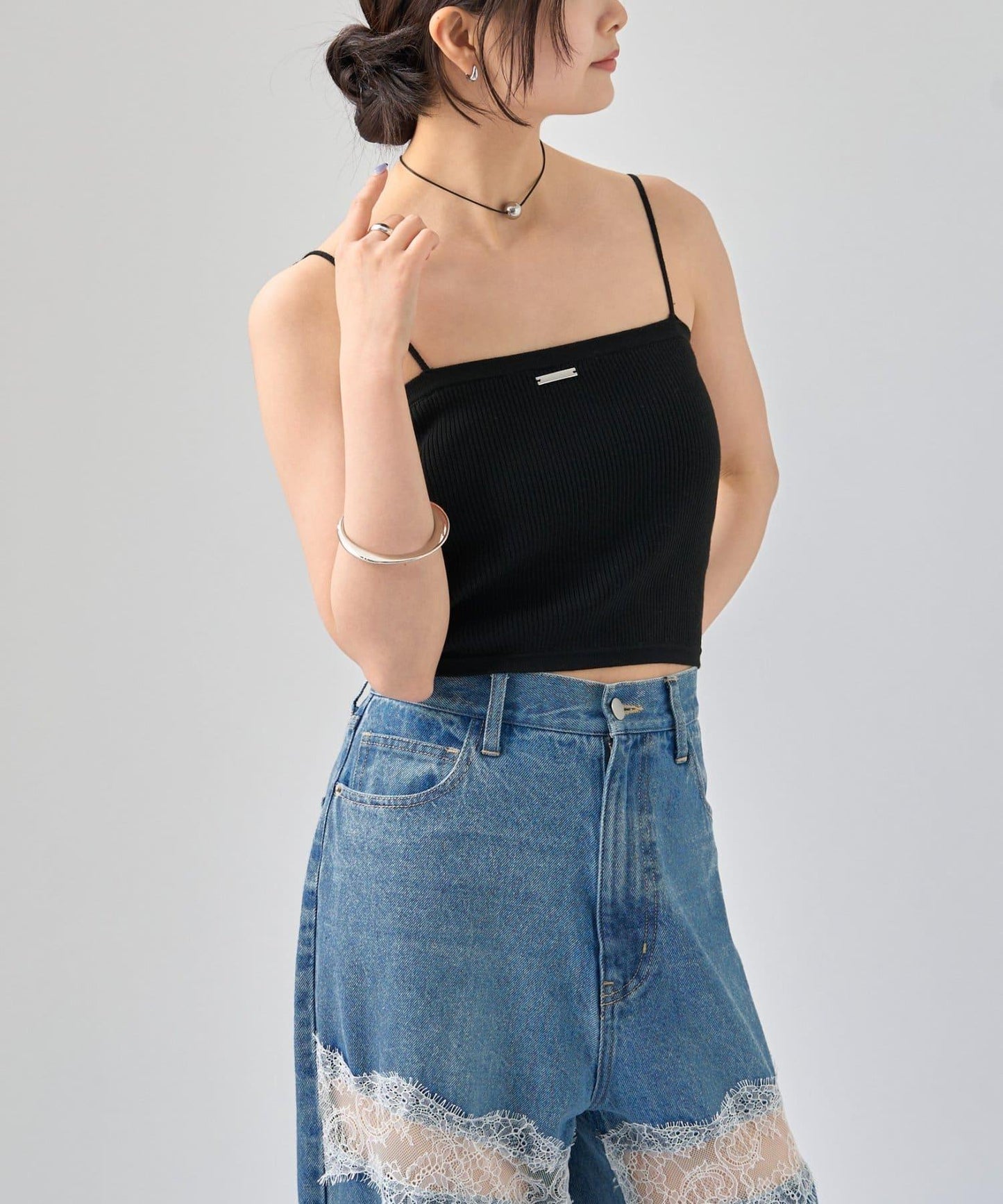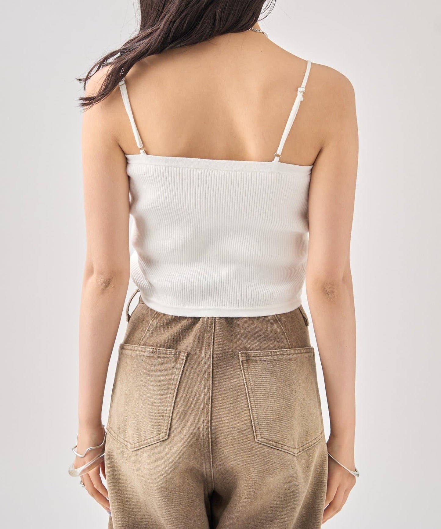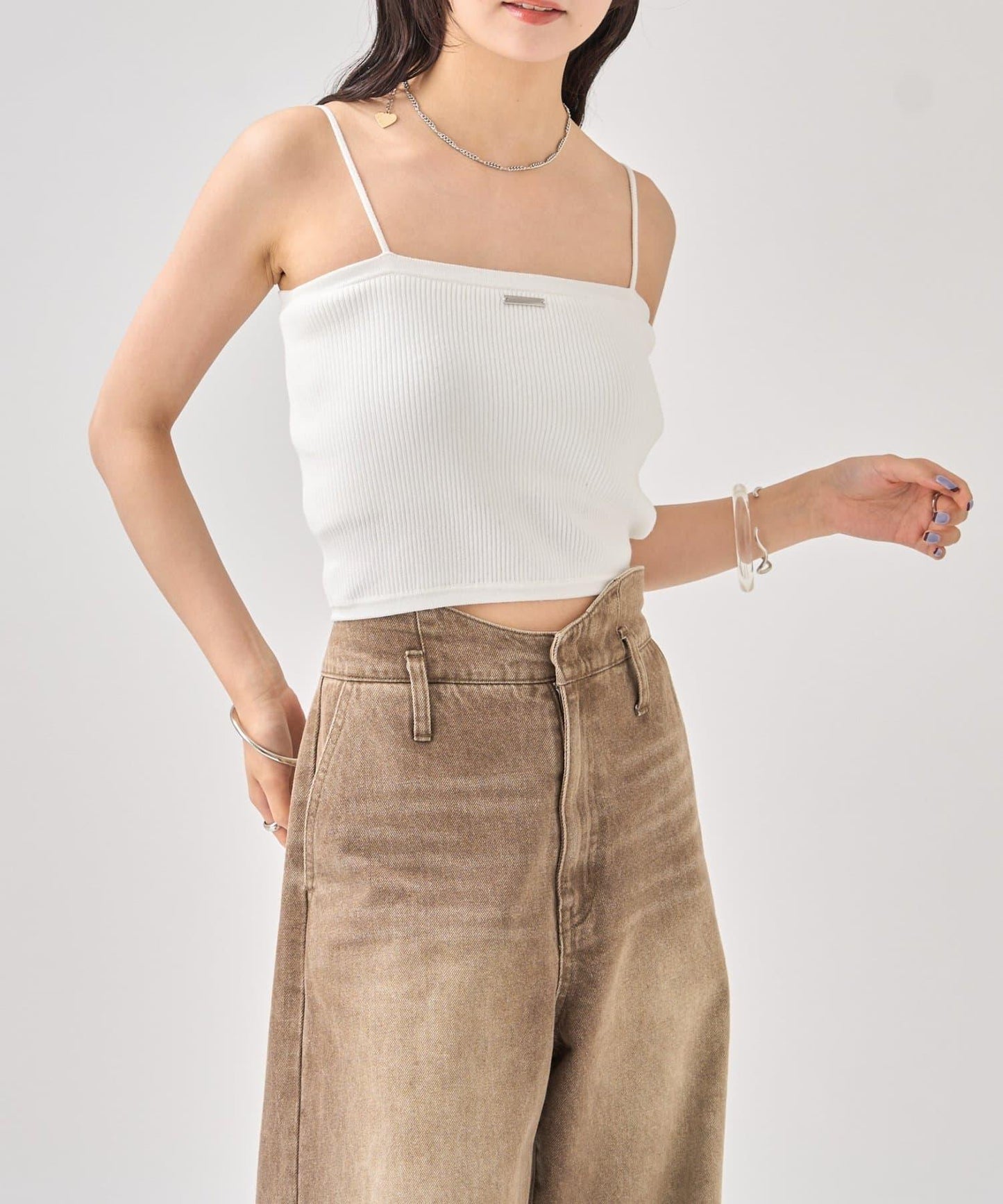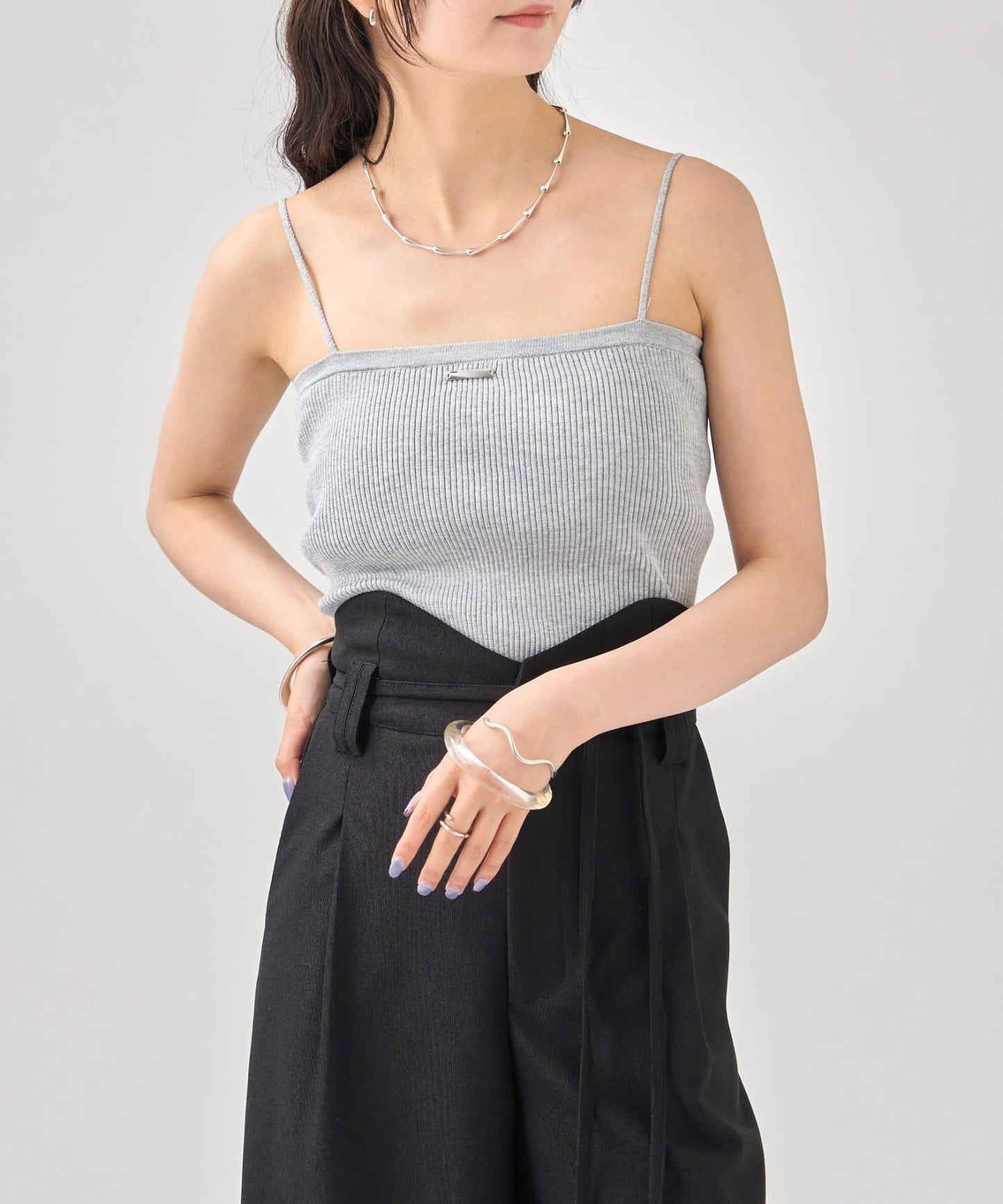 吊帶衫也適度地露出了肩部,因此是給人頸部乾淨印象的單品!
