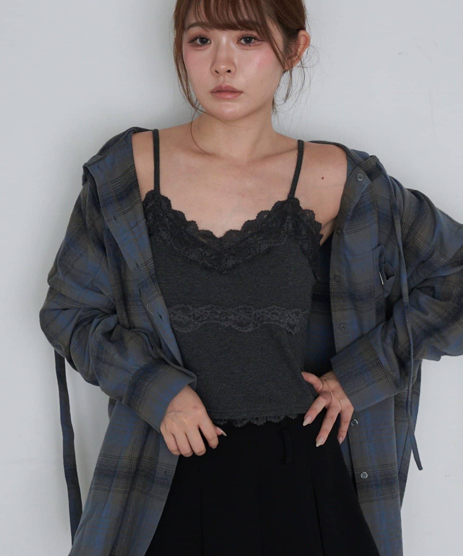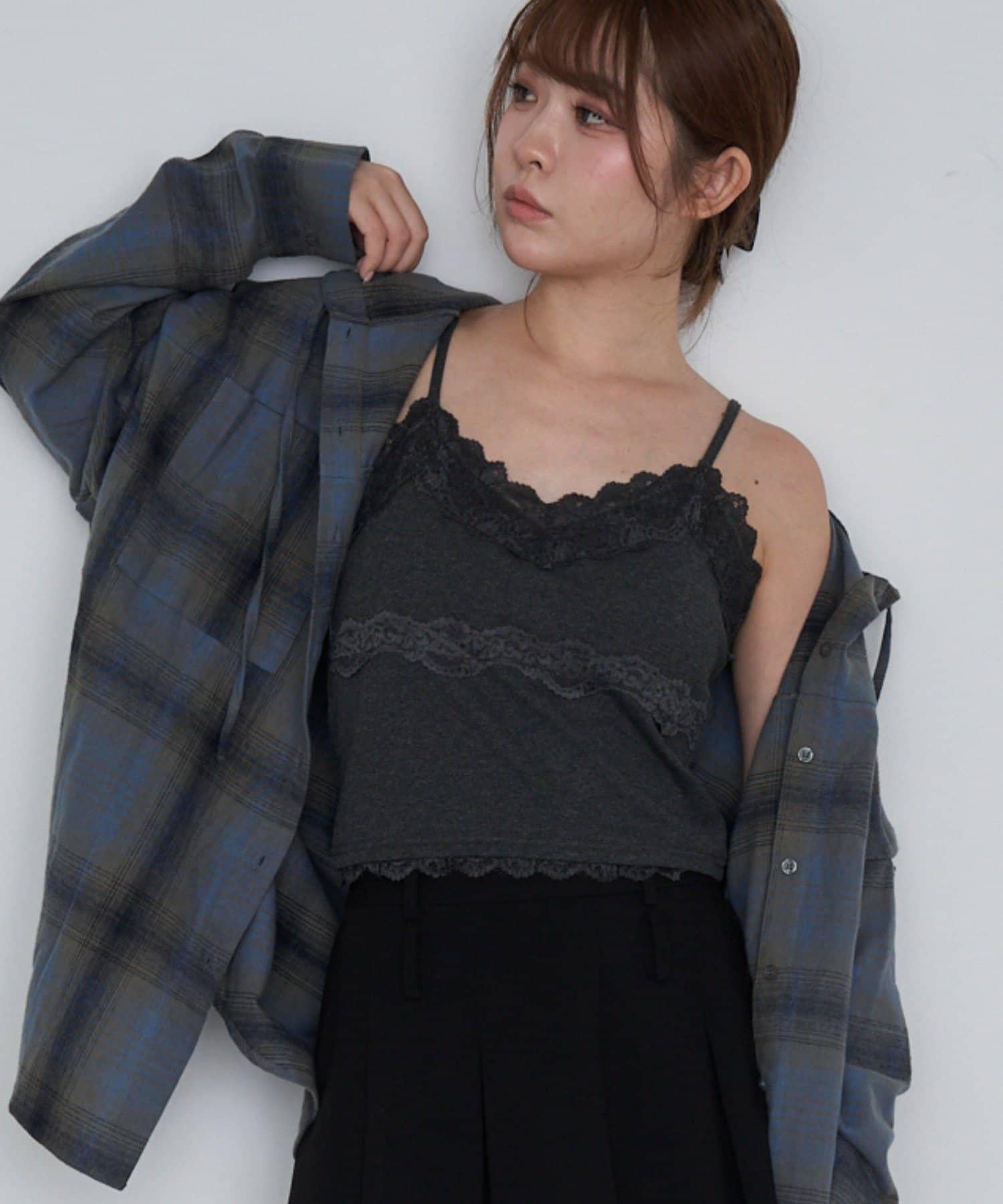 V 領蕾絲吊帶背心,盡顯女性魅力。