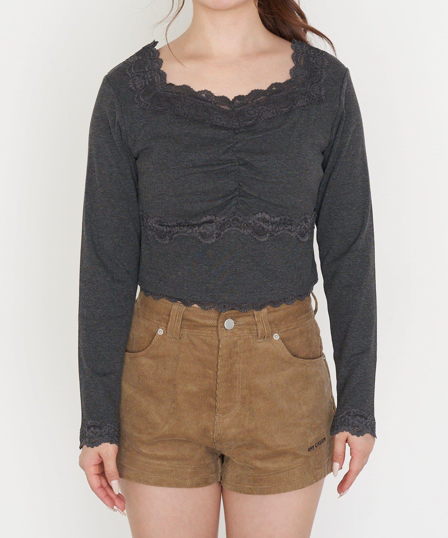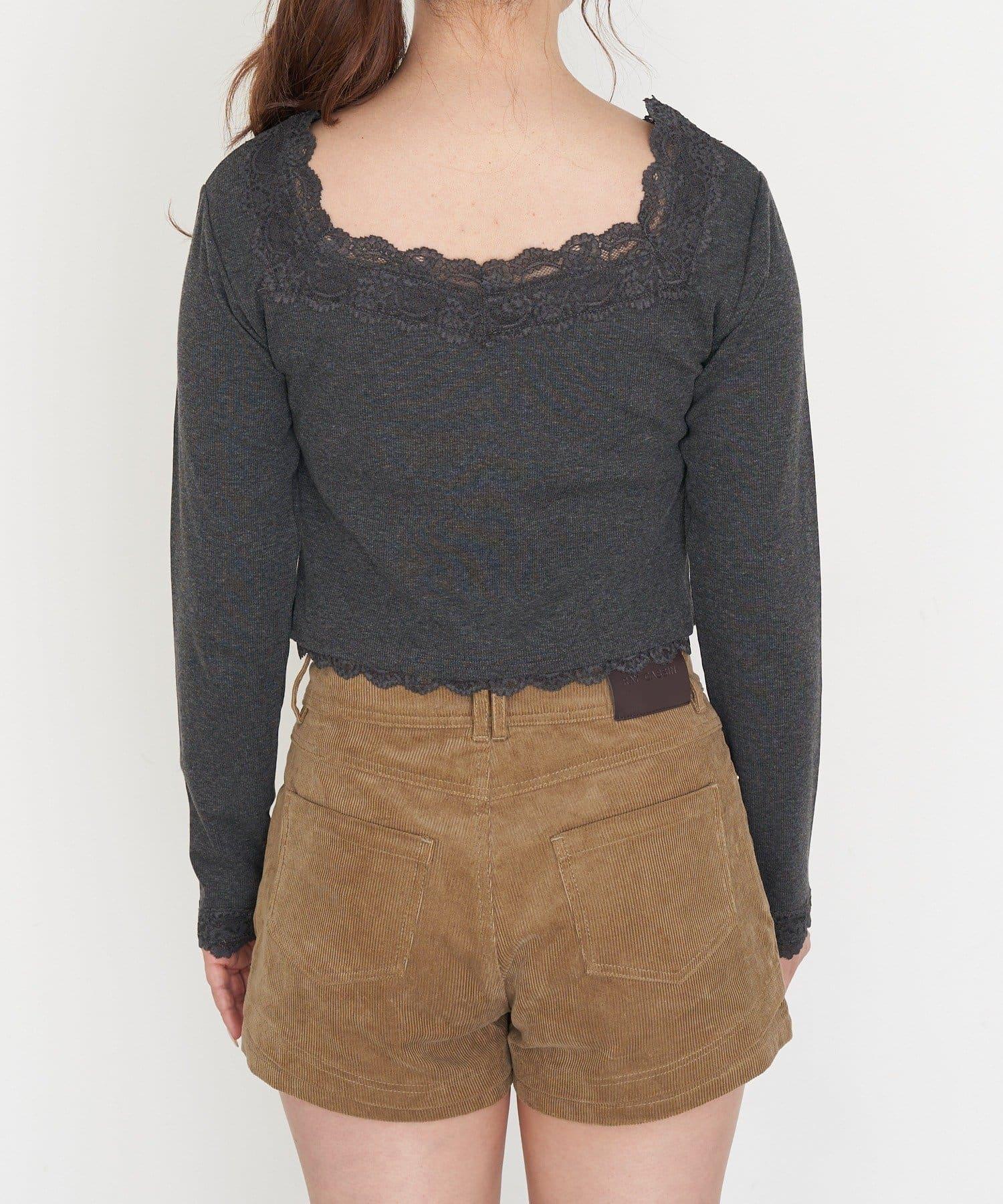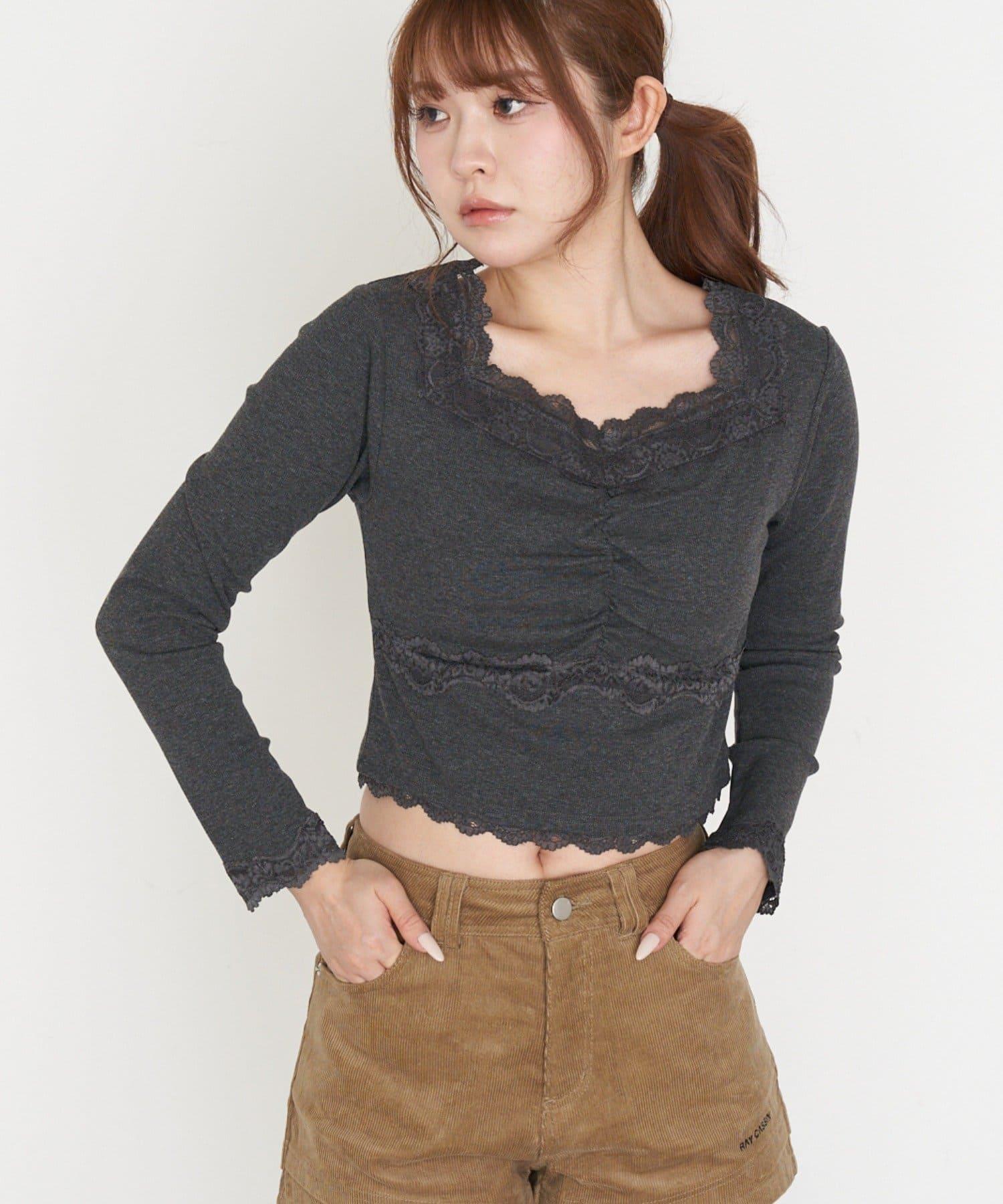 帶胸墊蕾絲長袖T恤