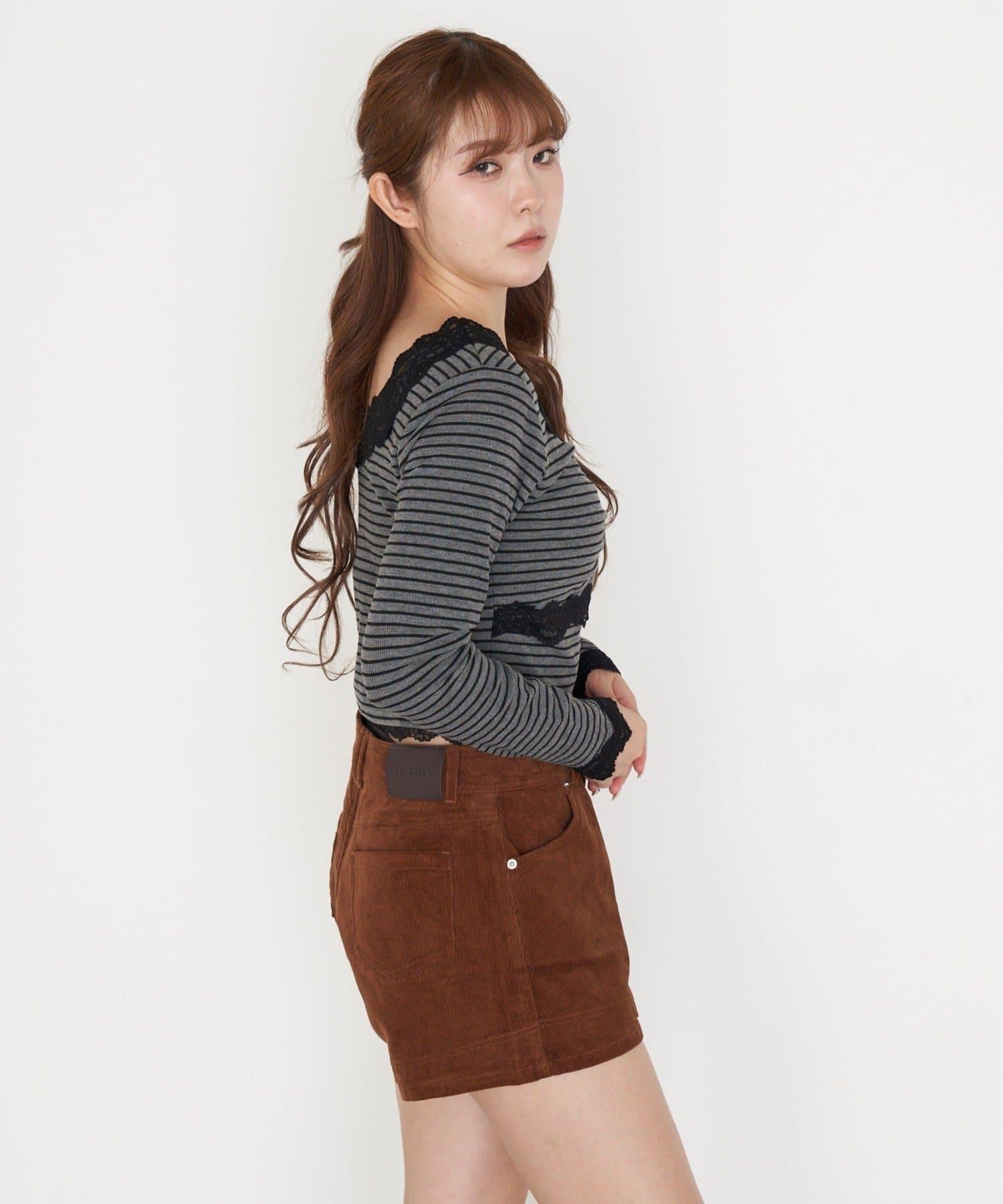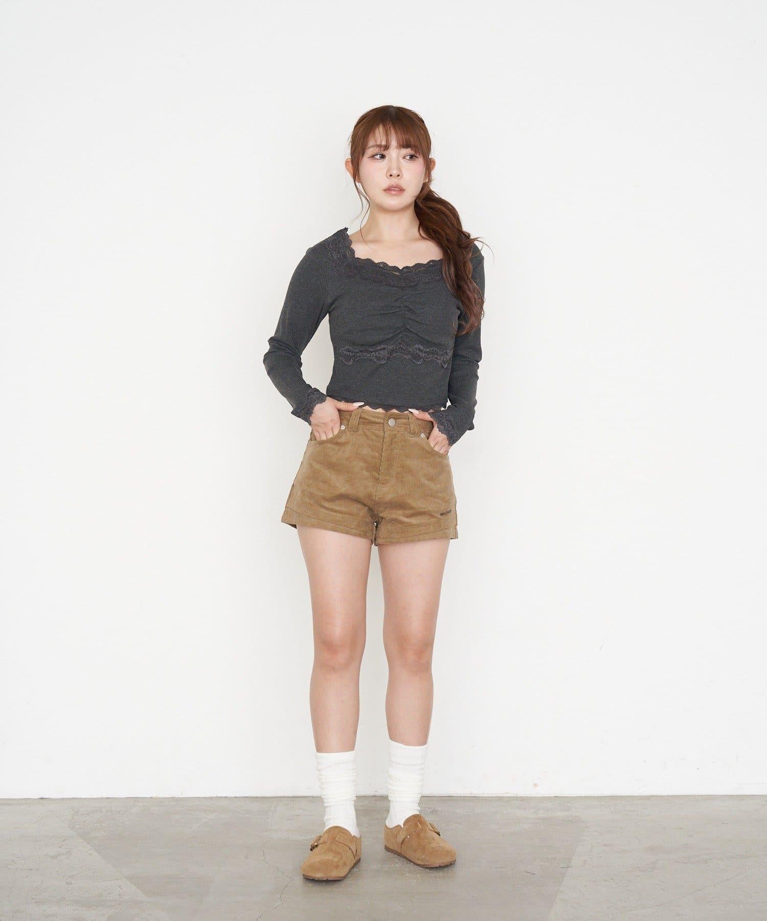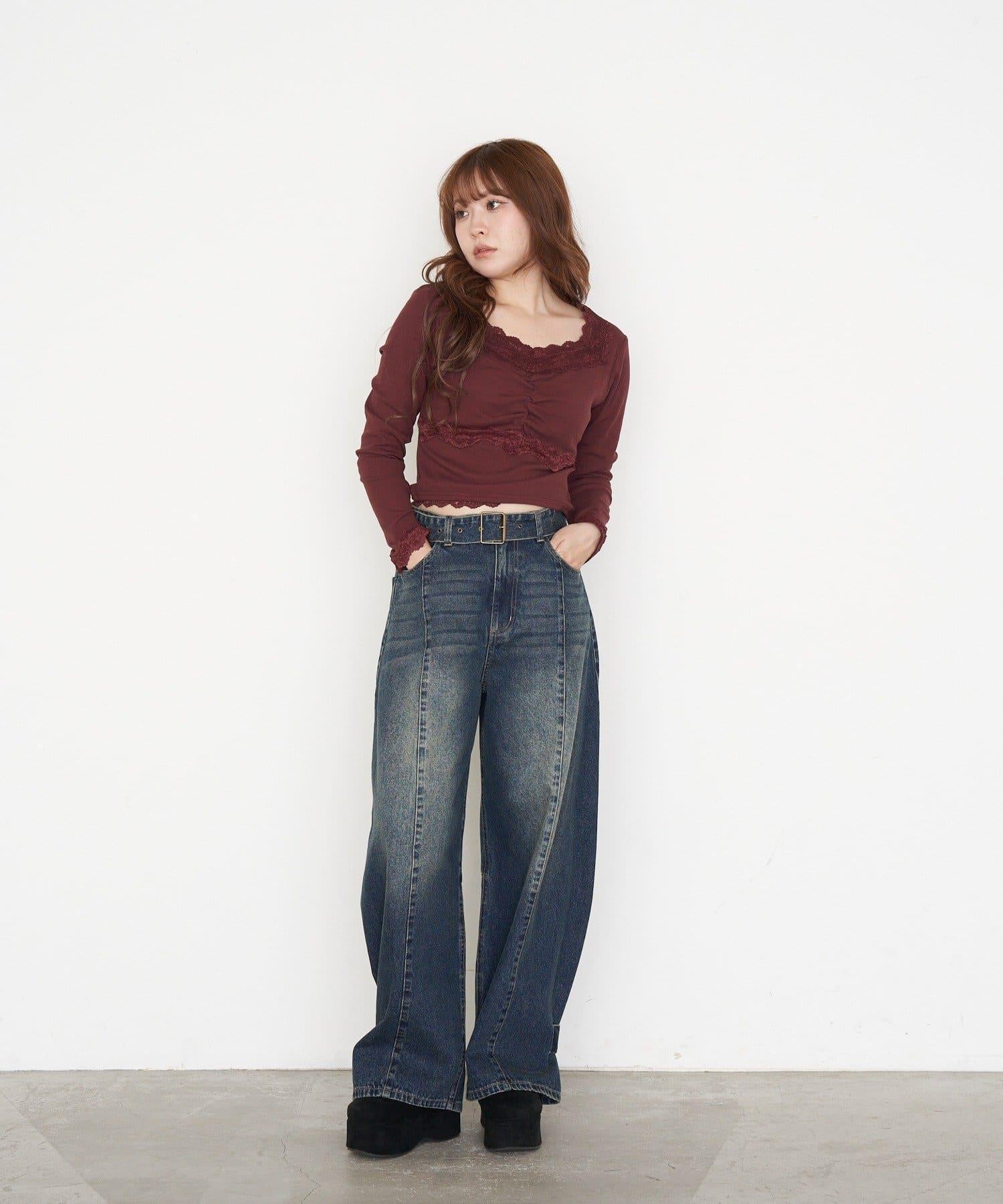 帶胸墊蕾絲長袖T恤