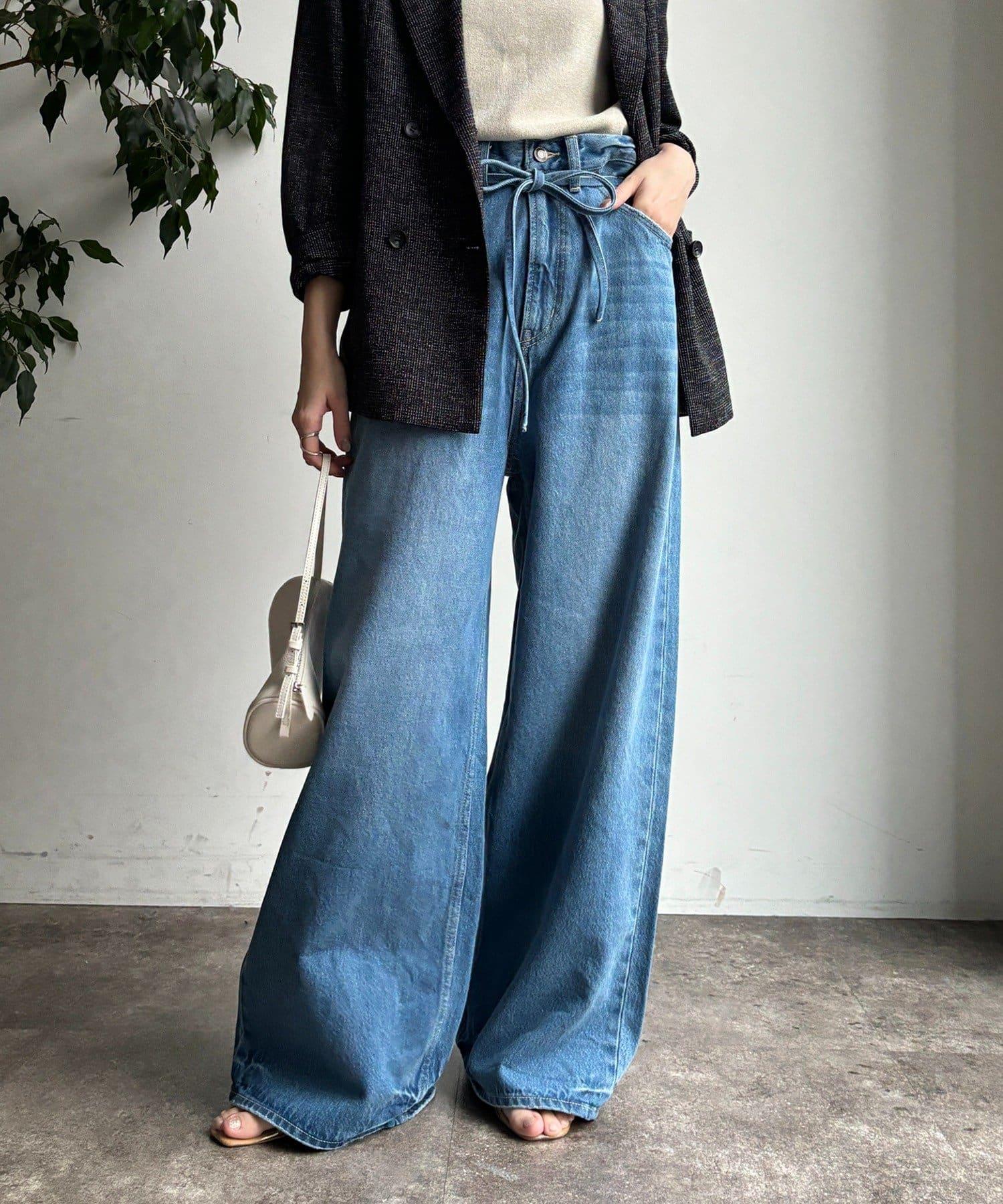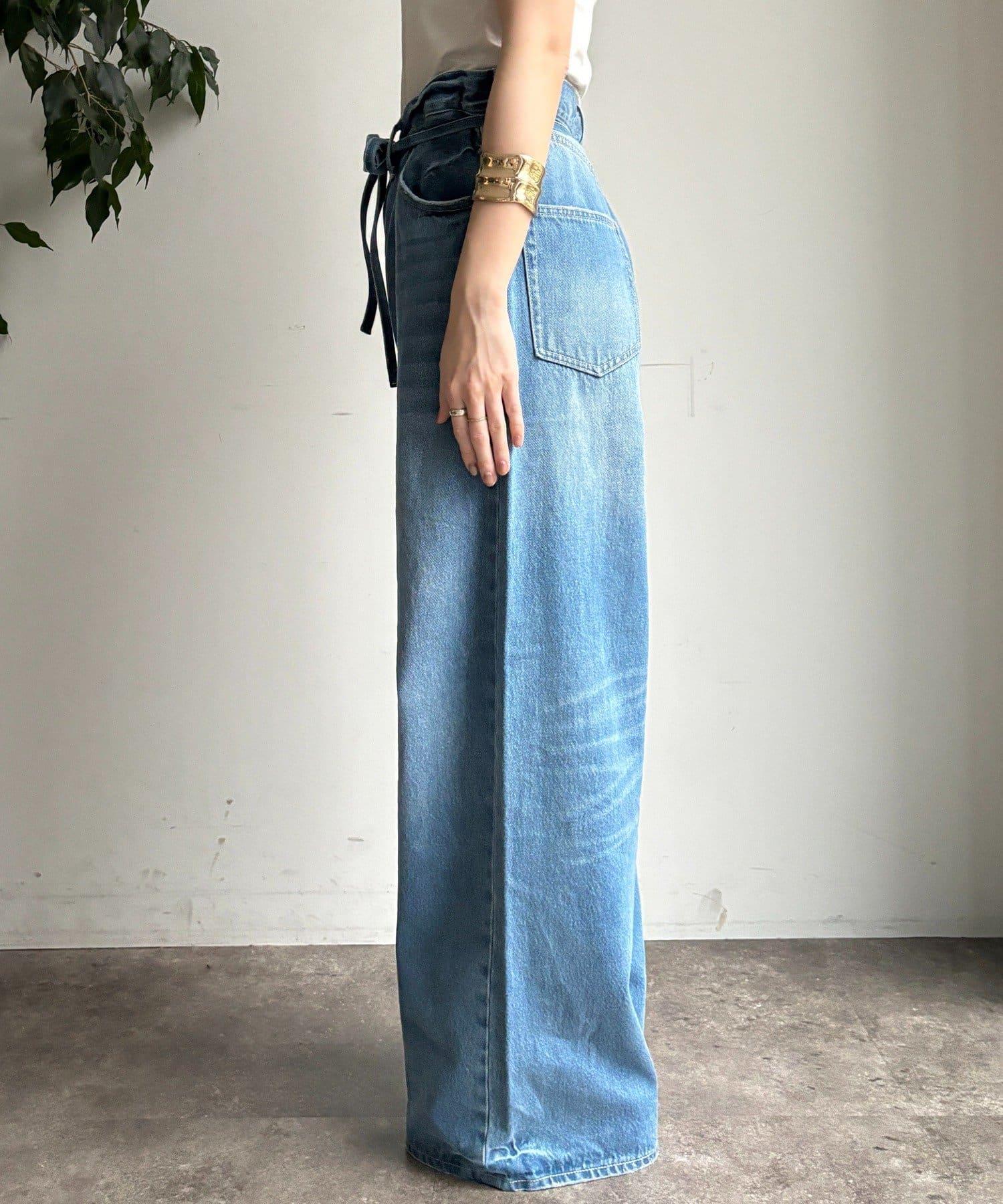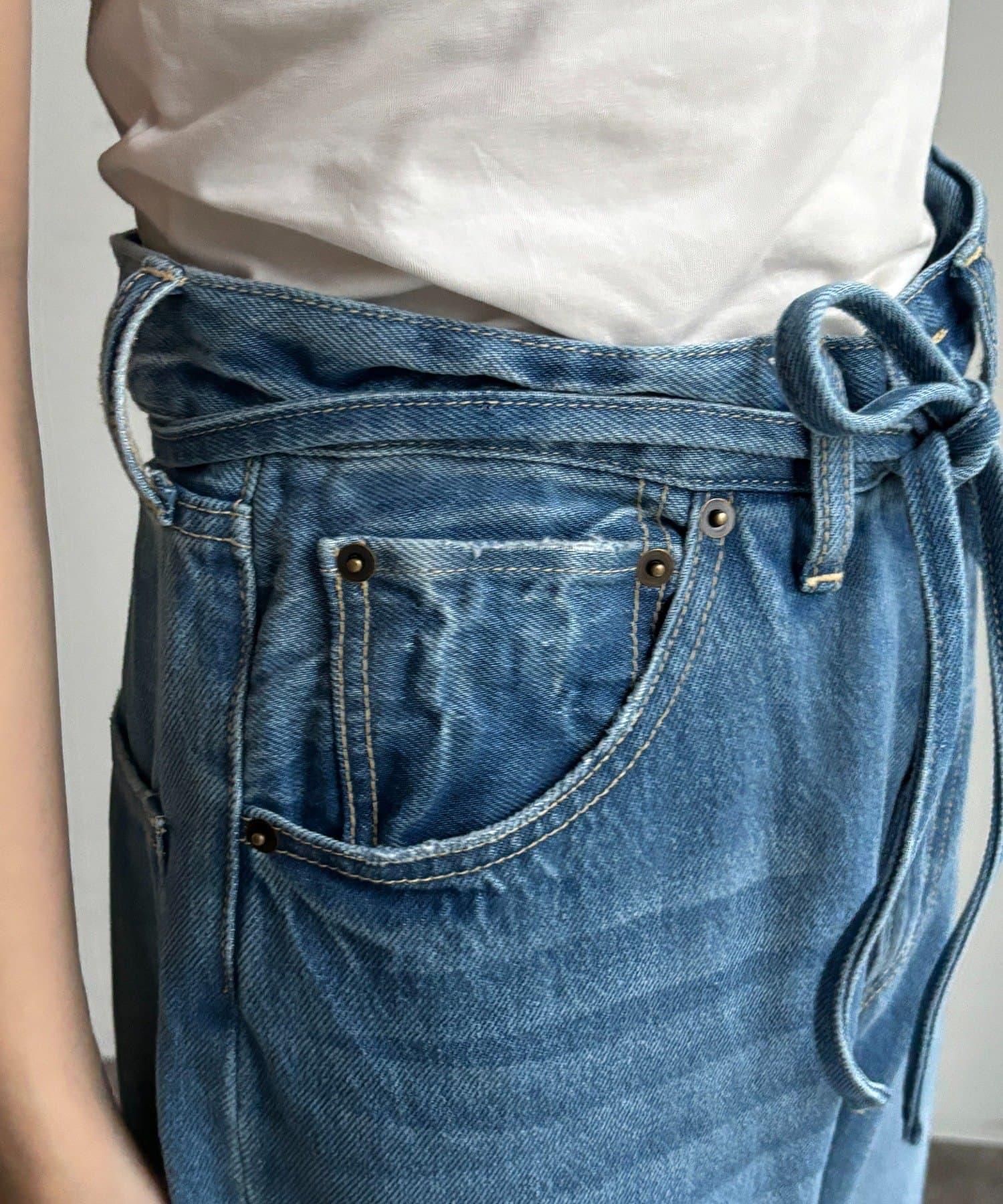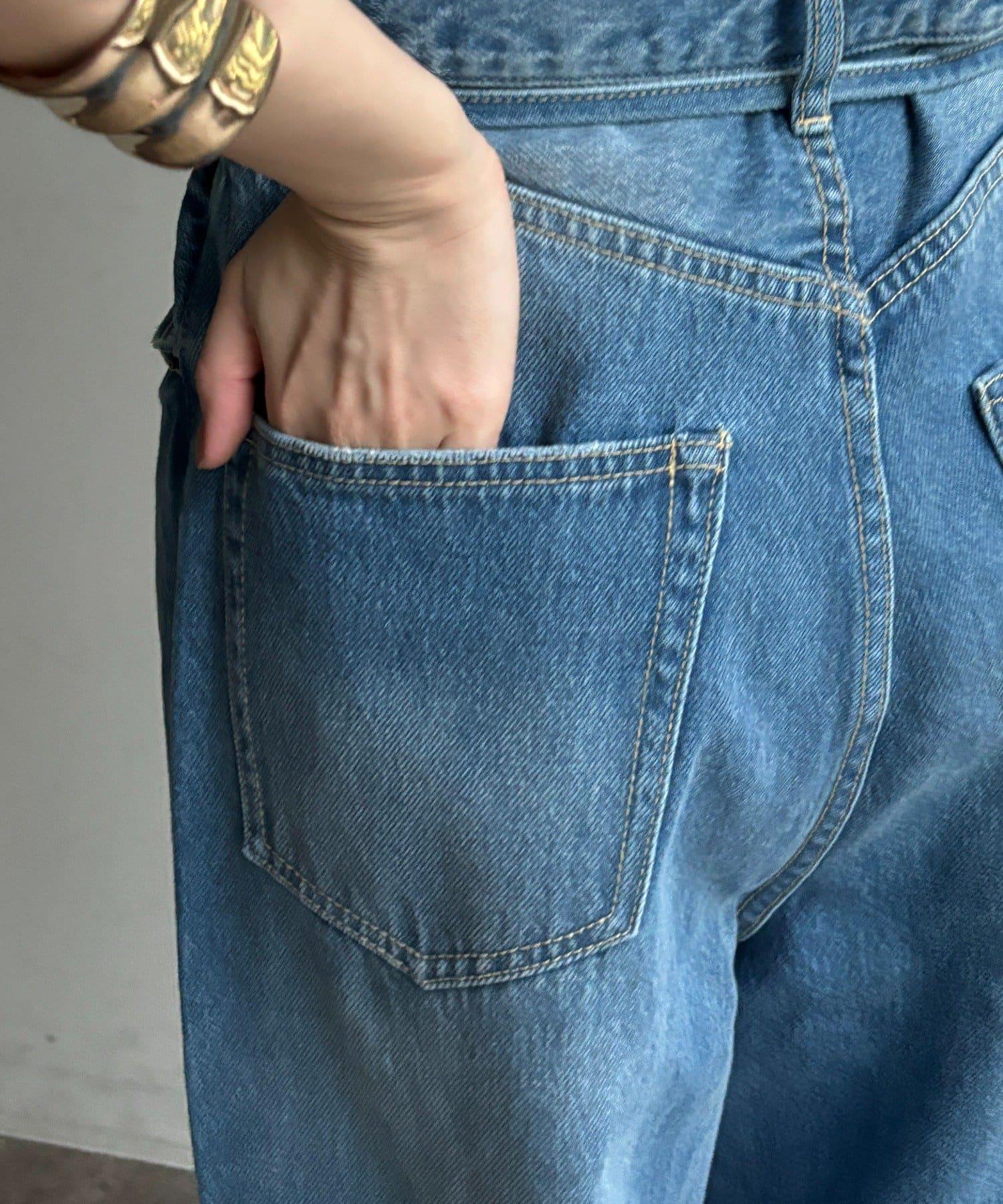 腰部的腰帶設計為簡潔的牛仔褲增添了微妙的亮點。