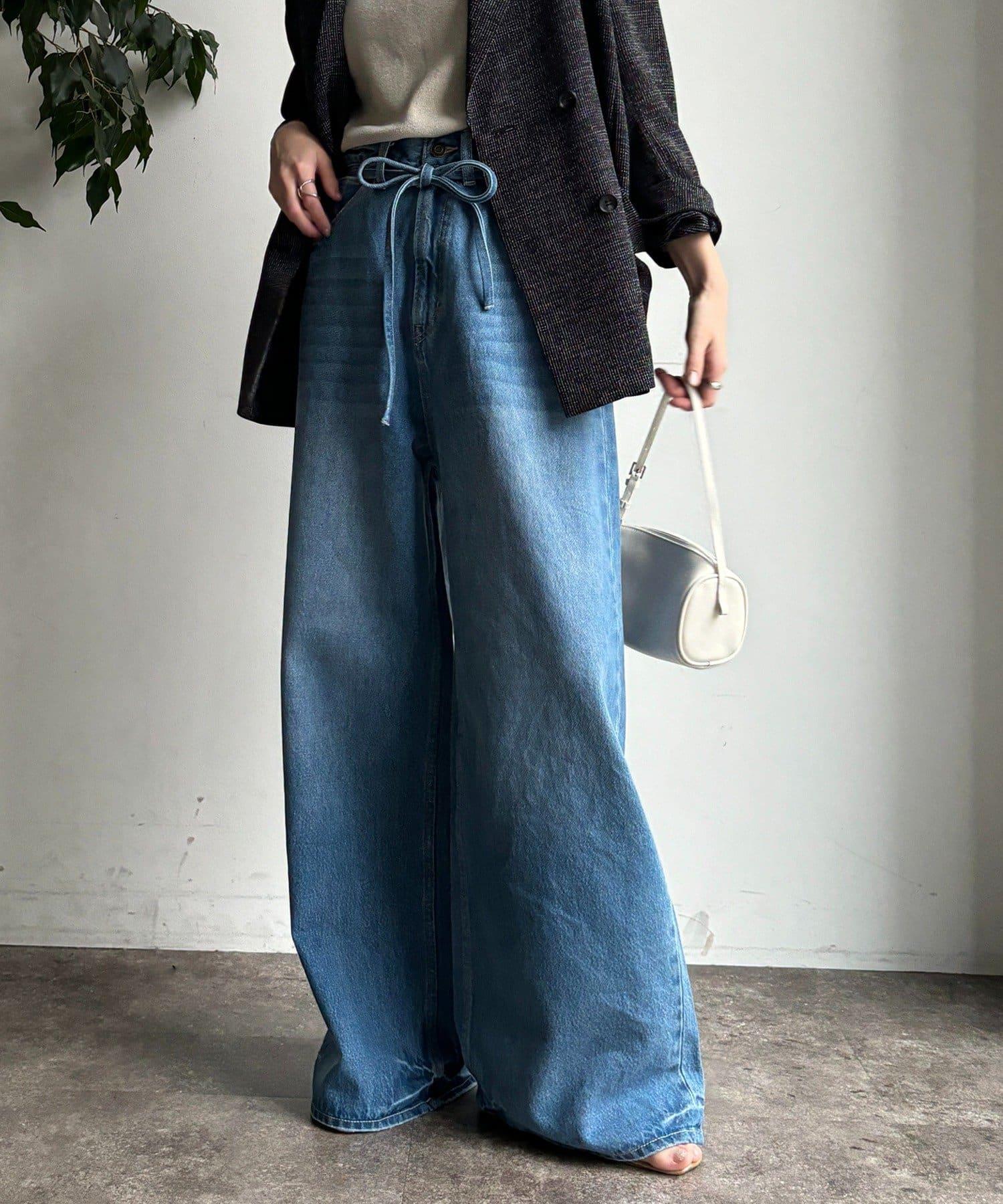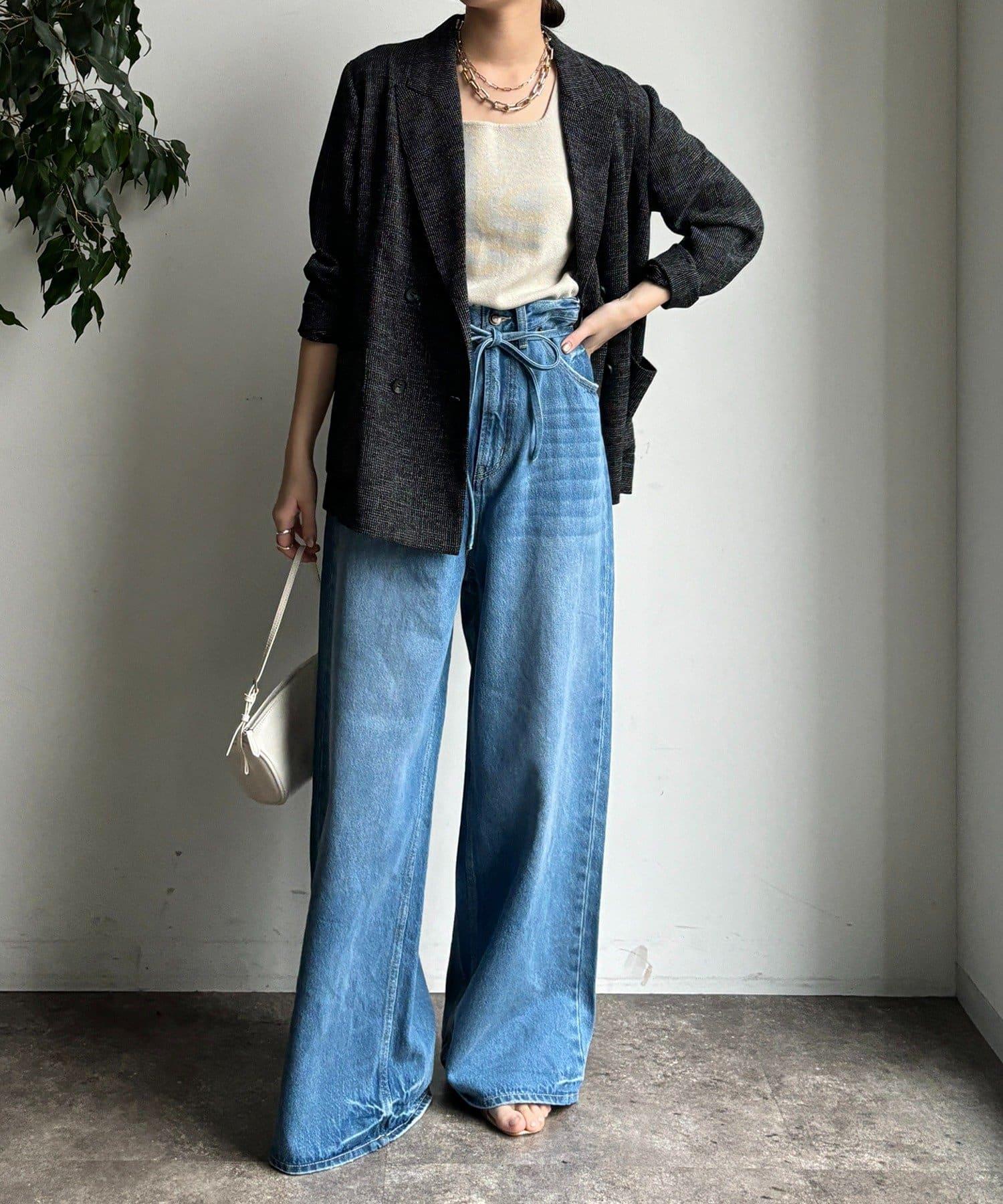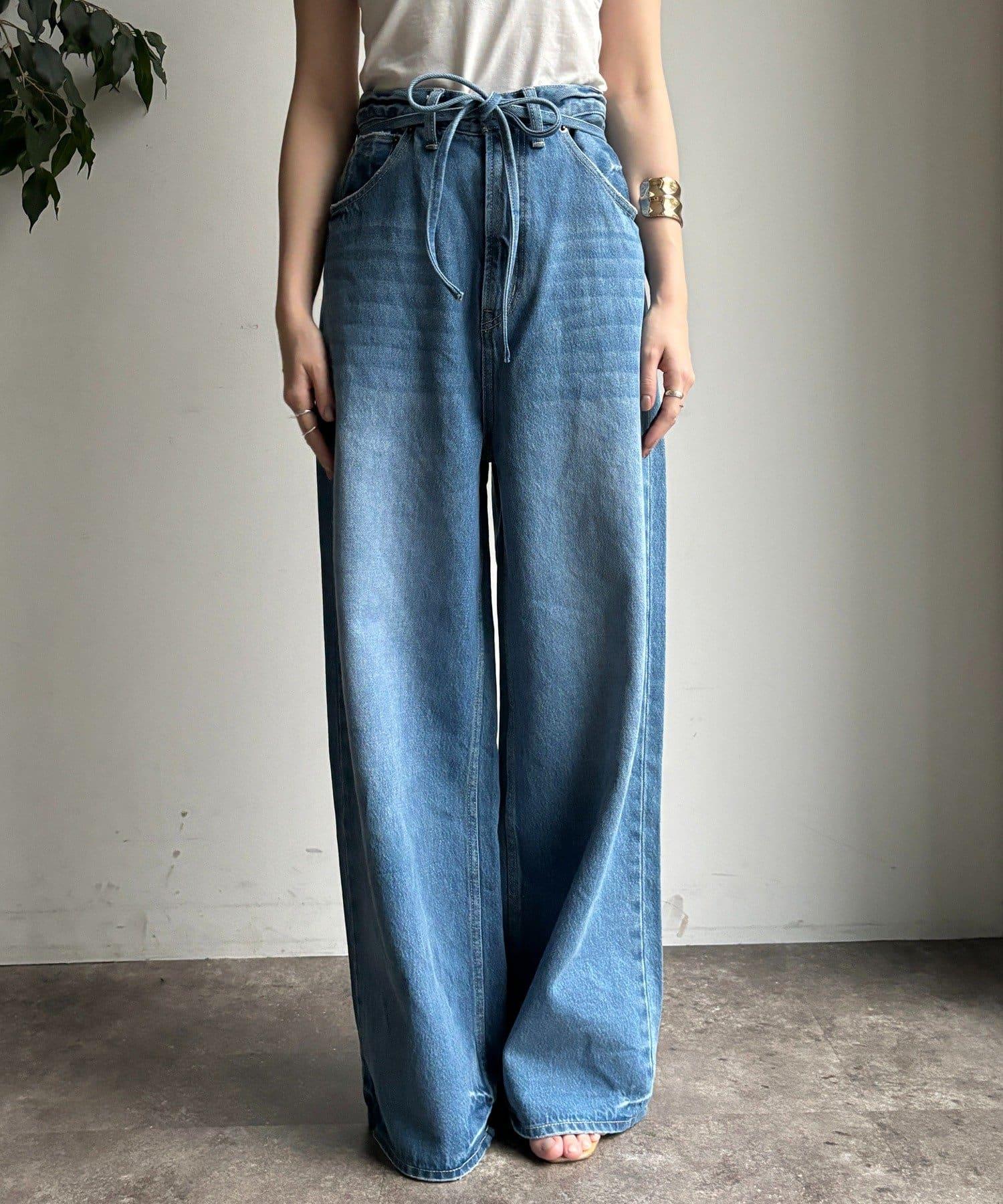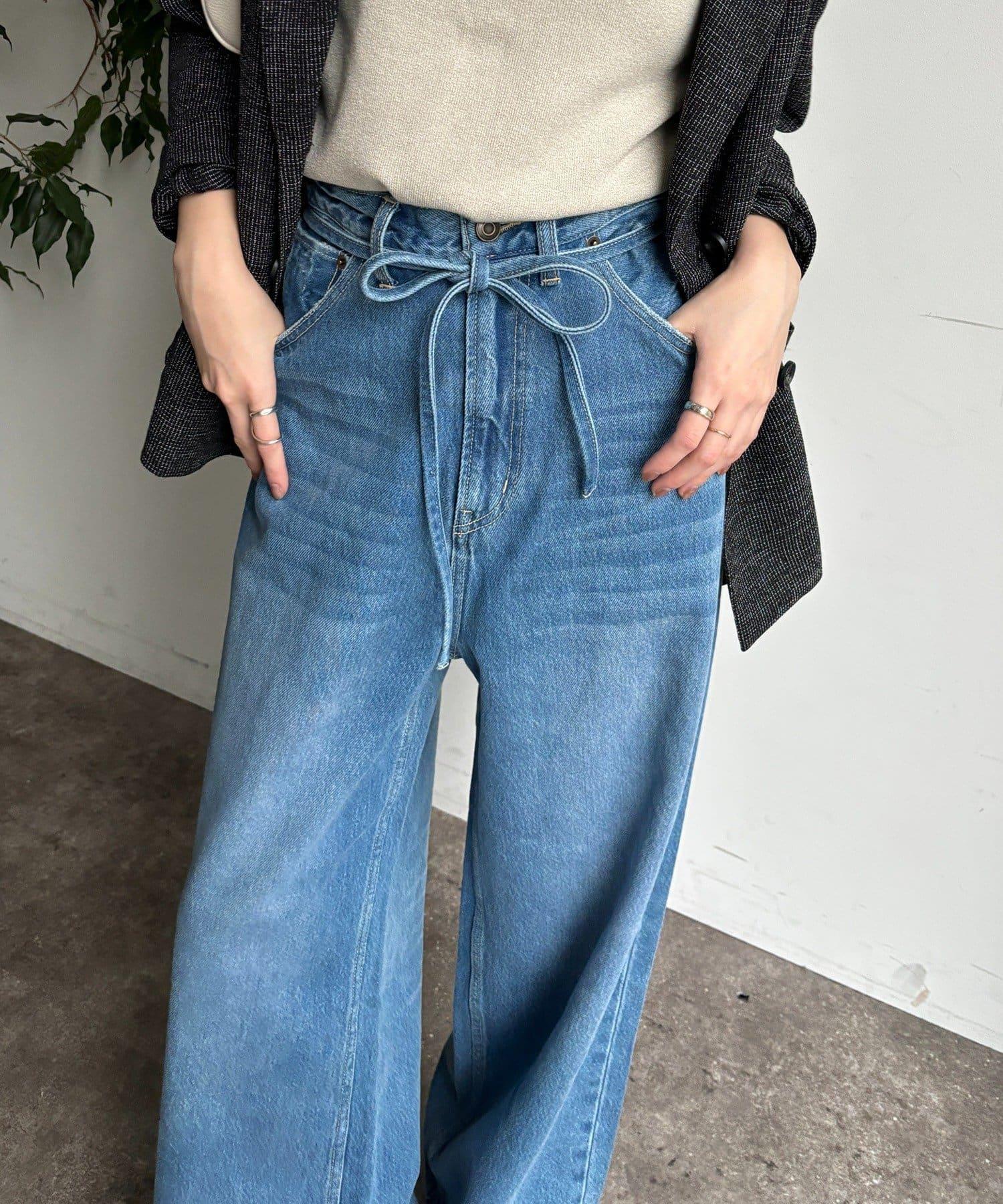 腰部的腰帶設計為簡潔的牛仔褲增添了微妙的亮點。