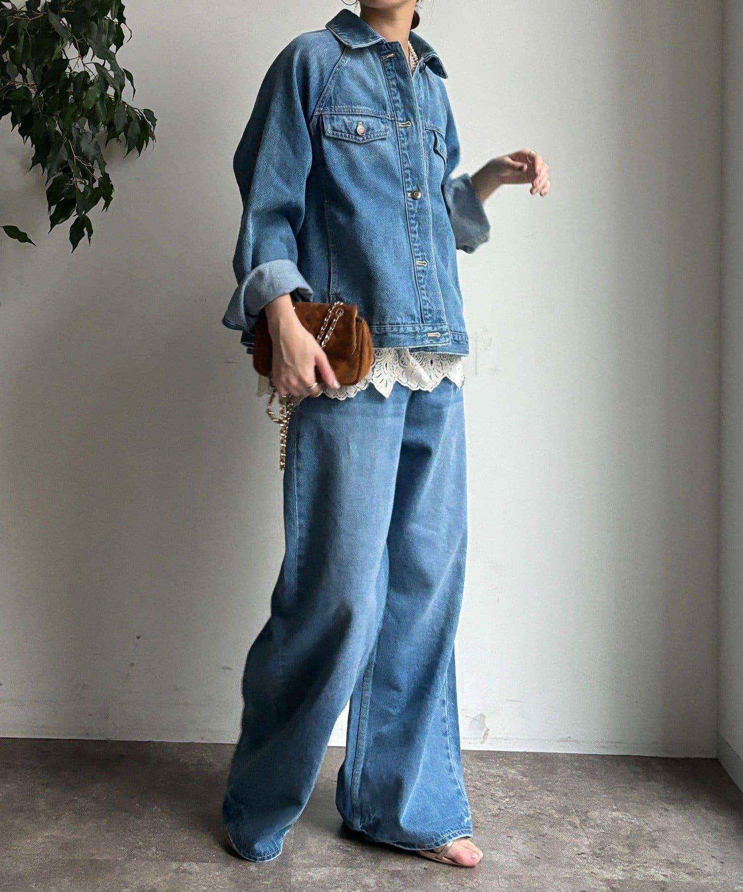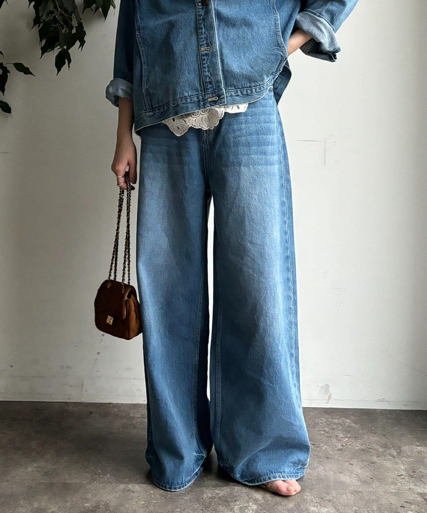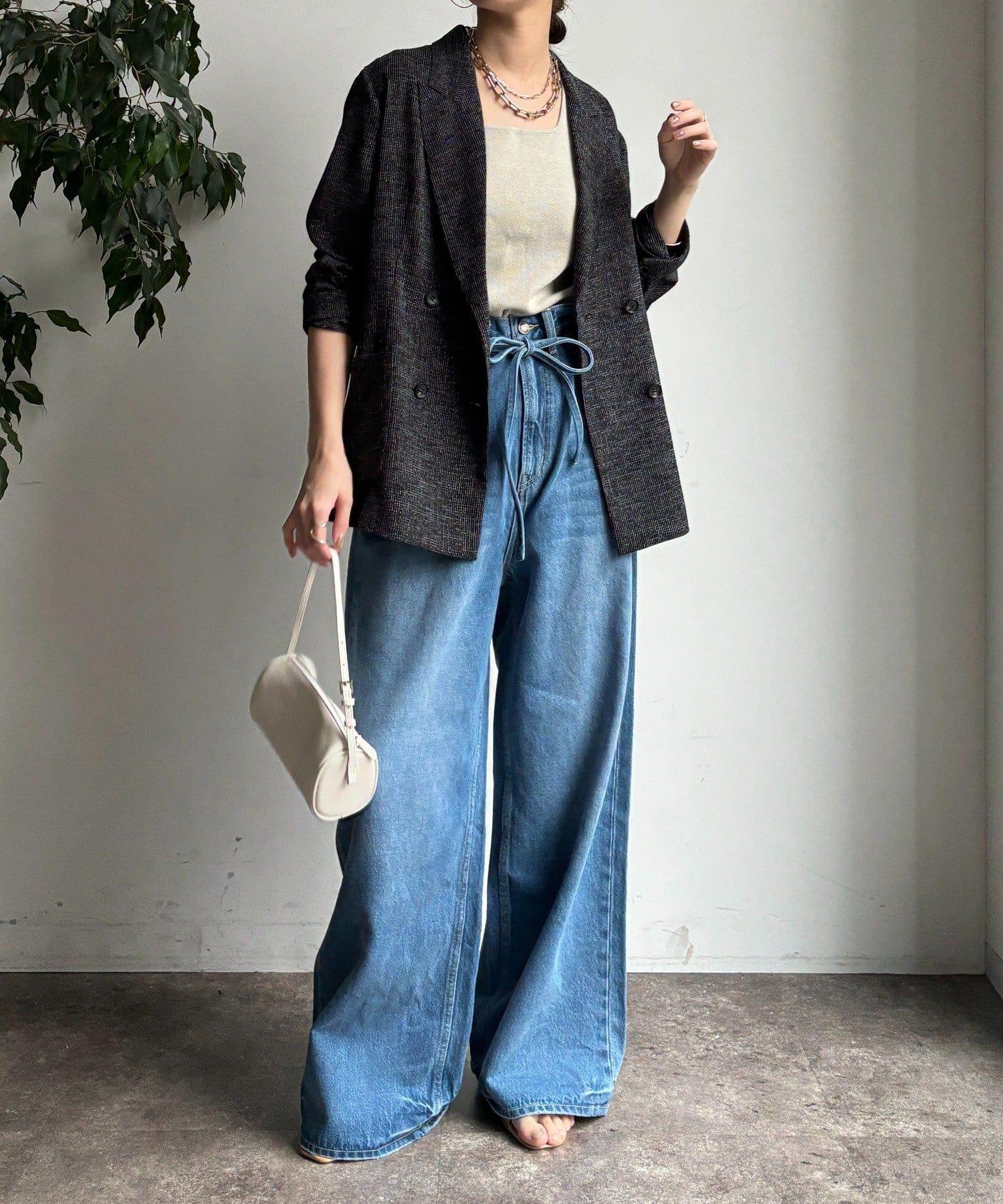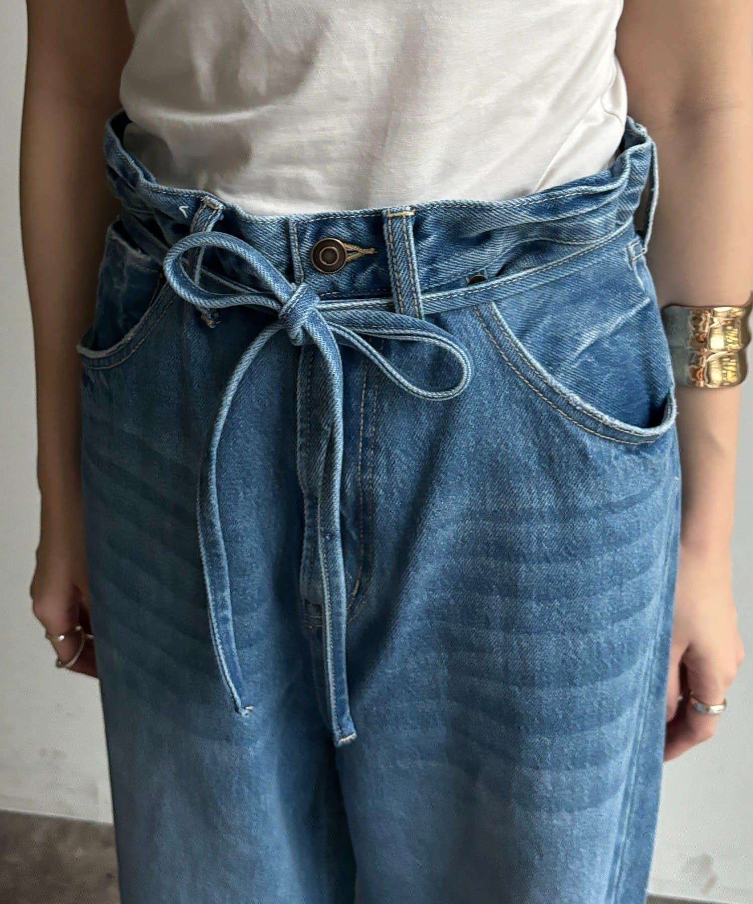 腰部的腰帶設計為簡潔的牛仔褲增添了微妙的亮點。