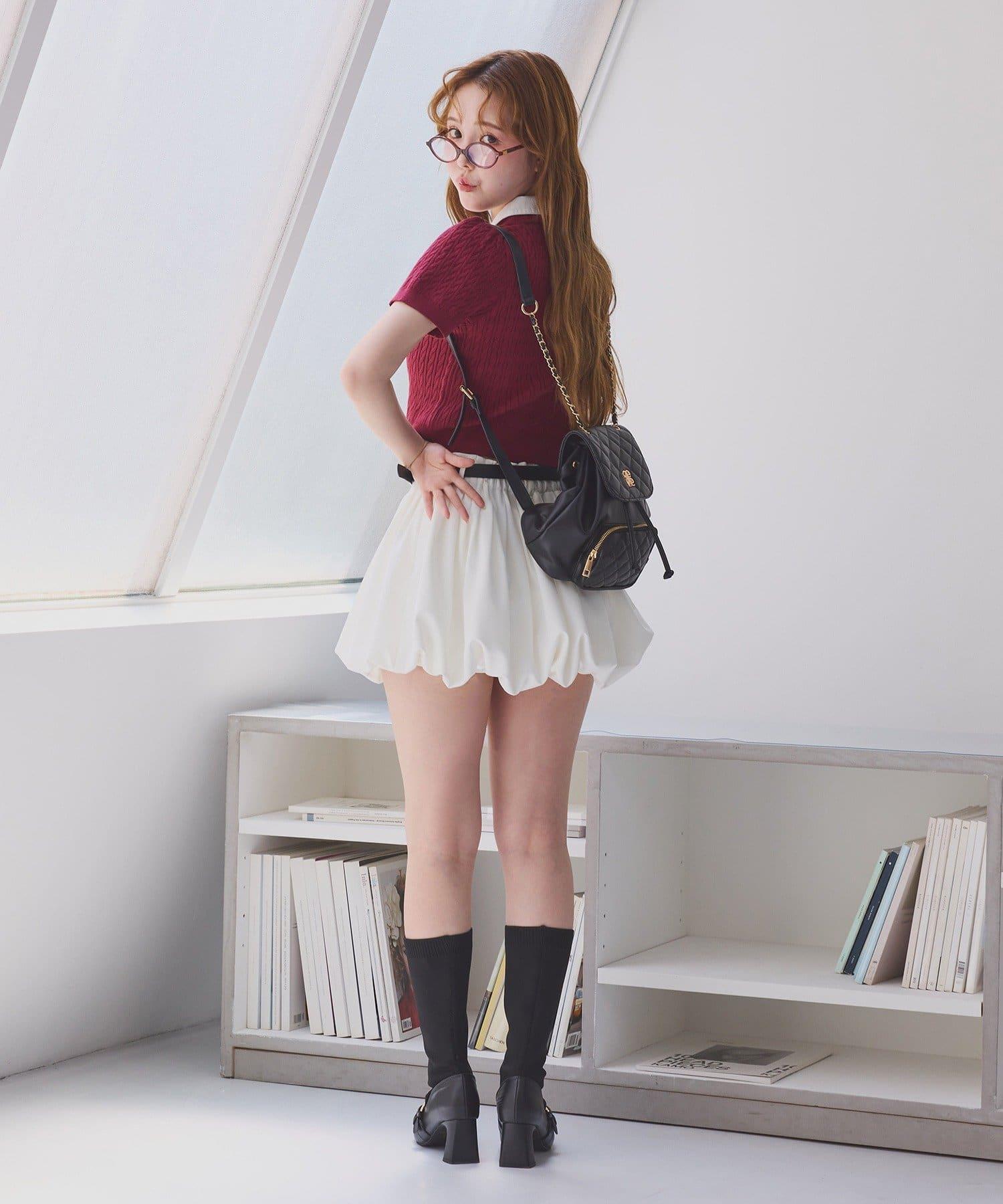 裙子採用柔和圓潤的氣球輪廓和褶皺設計,引人注目。