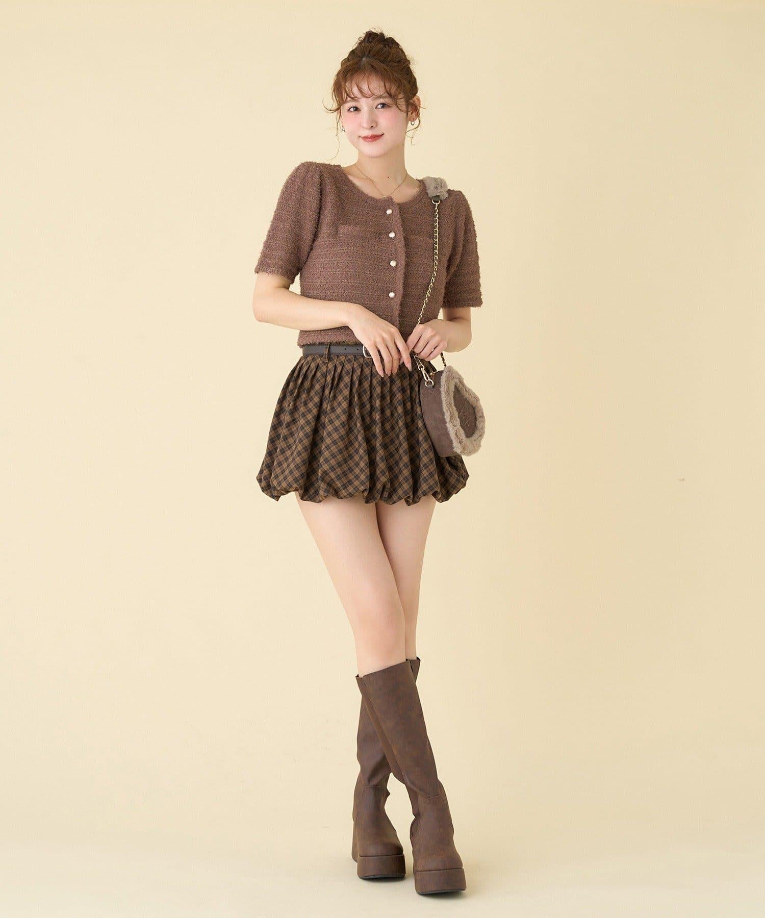 搭配小巧的上衣或短款針織衫,打造均衡的造型。